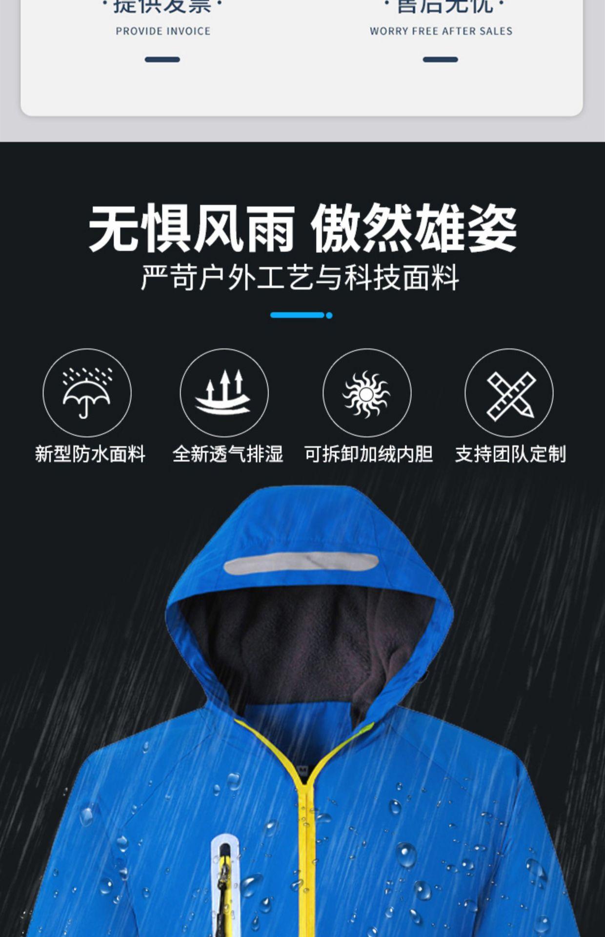 Logotipo de chaqueta ropa de trabajo estampado otoño e invierno impermeable más terciopelo tres en uno chaqueta desmontable ropa publicitaria
