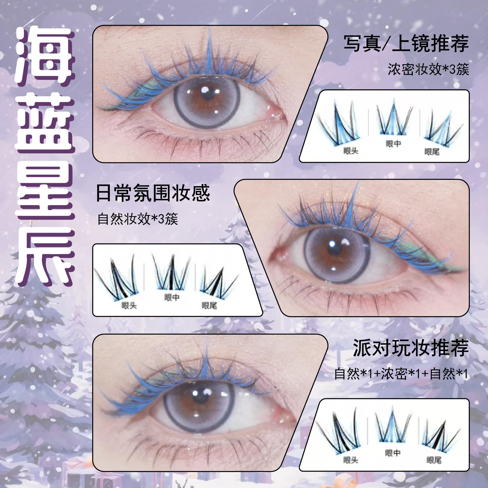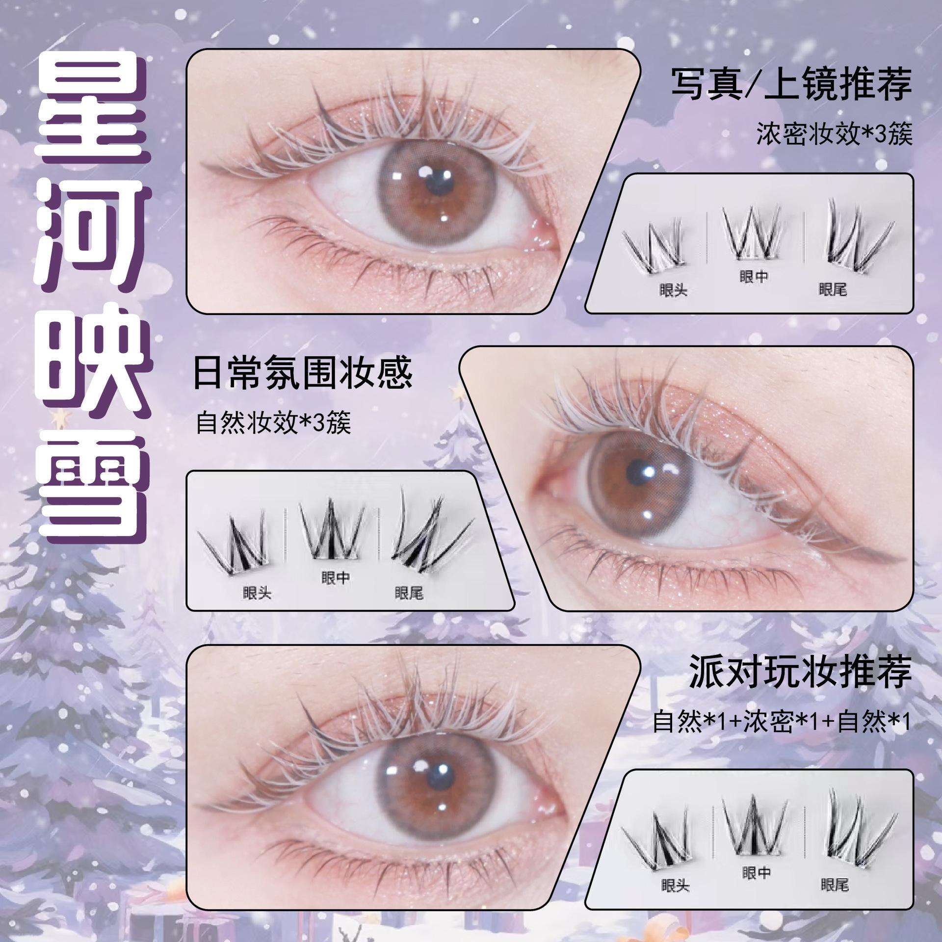 Pestañas postizas de dibujos animados con espejo para principiantes, serie estrella sin pegamento, de 6 filas, de un solo grupo, segmentadas y con forma de estrella.