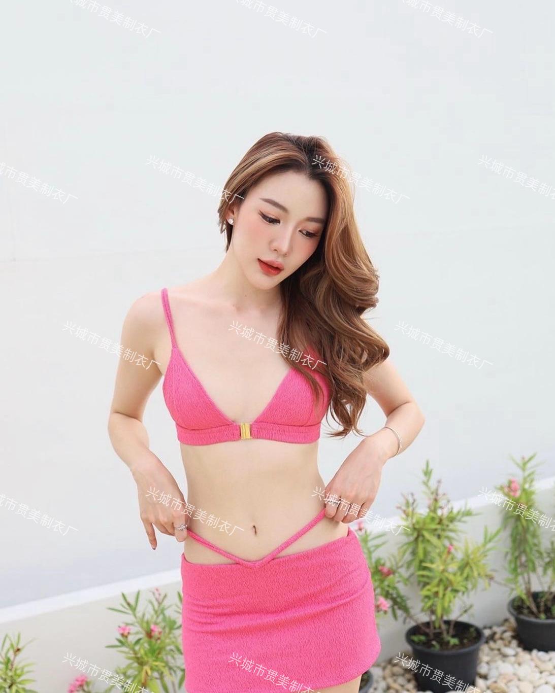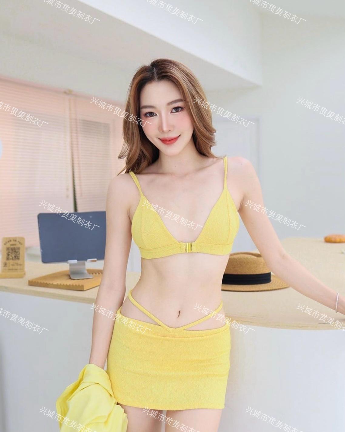 [8 colores] Nuevo bikini de tres piezas de color sólido, bikini sexy de playa para vacaciones en aguas termales, traje de baño dividido para mujer