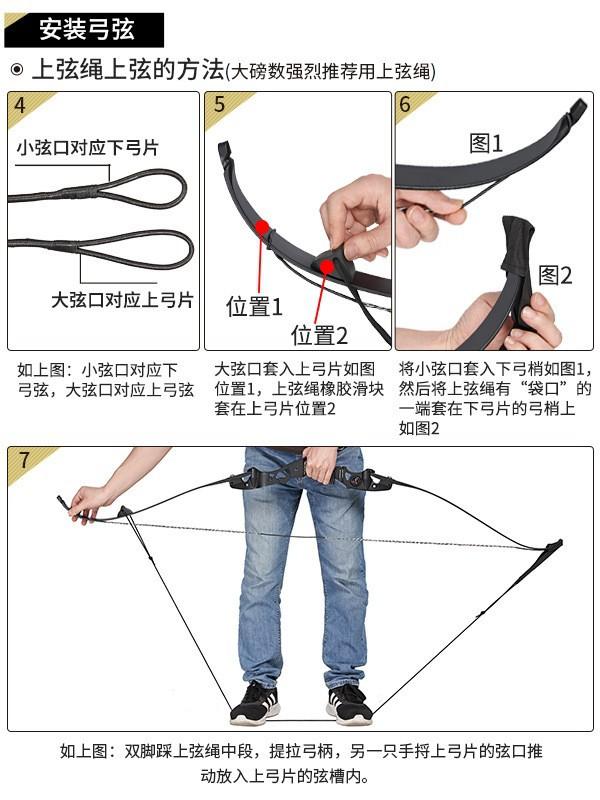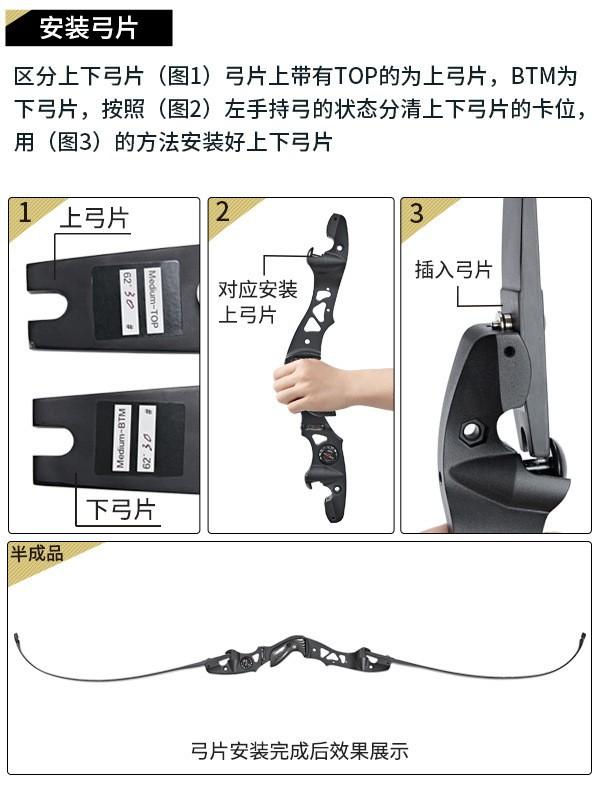 Lista de empaque: un arco desnudo Tianpo, un par de borlas amortiguadoras, una cuerda, un par de protectores de tres dedos, un par de protectores de brazo