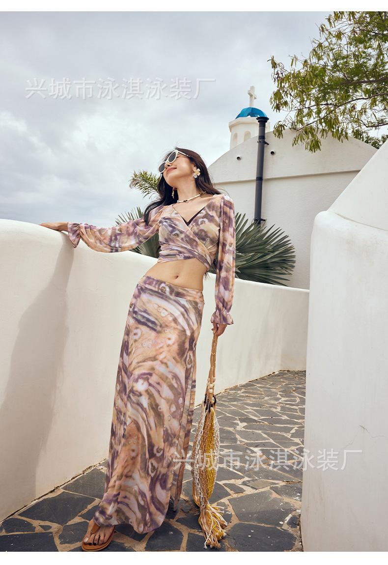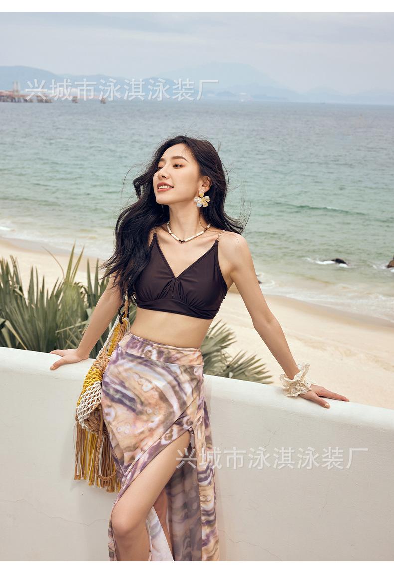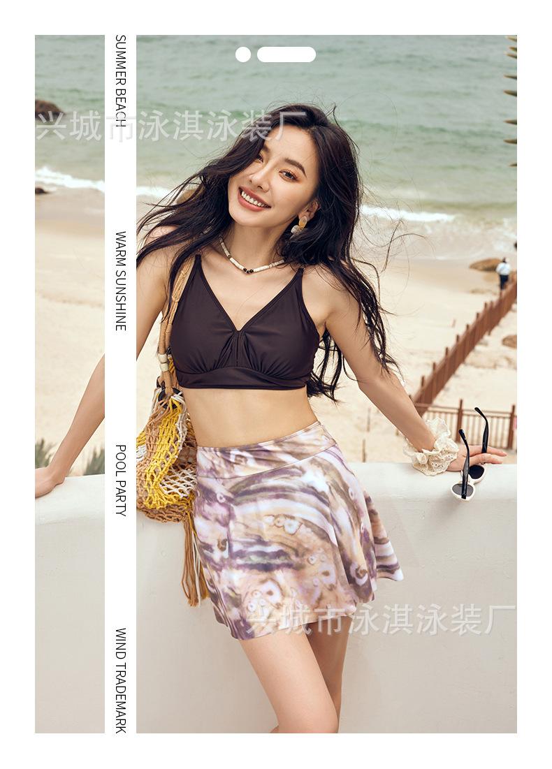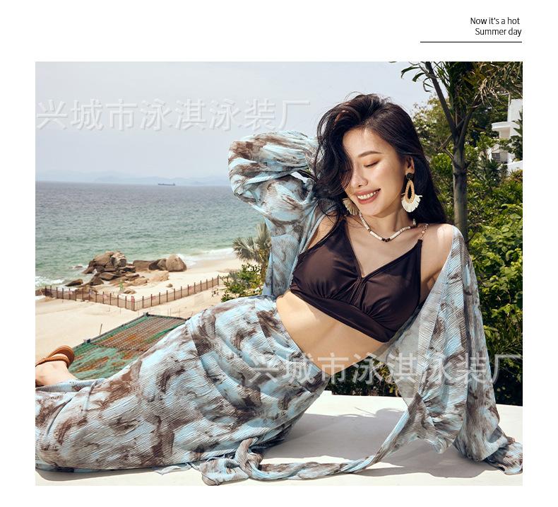 Nuevo Bikini Dividido de Cuatro Piezas para Mujer Talla Grande para Gorditas Vestido Largo Sexy Europeo y Americano Adelgazante Traje de Baño para Aguas Termales para Niñas Gorditas