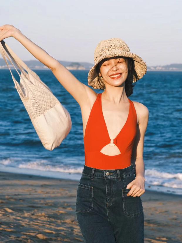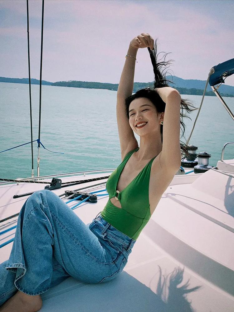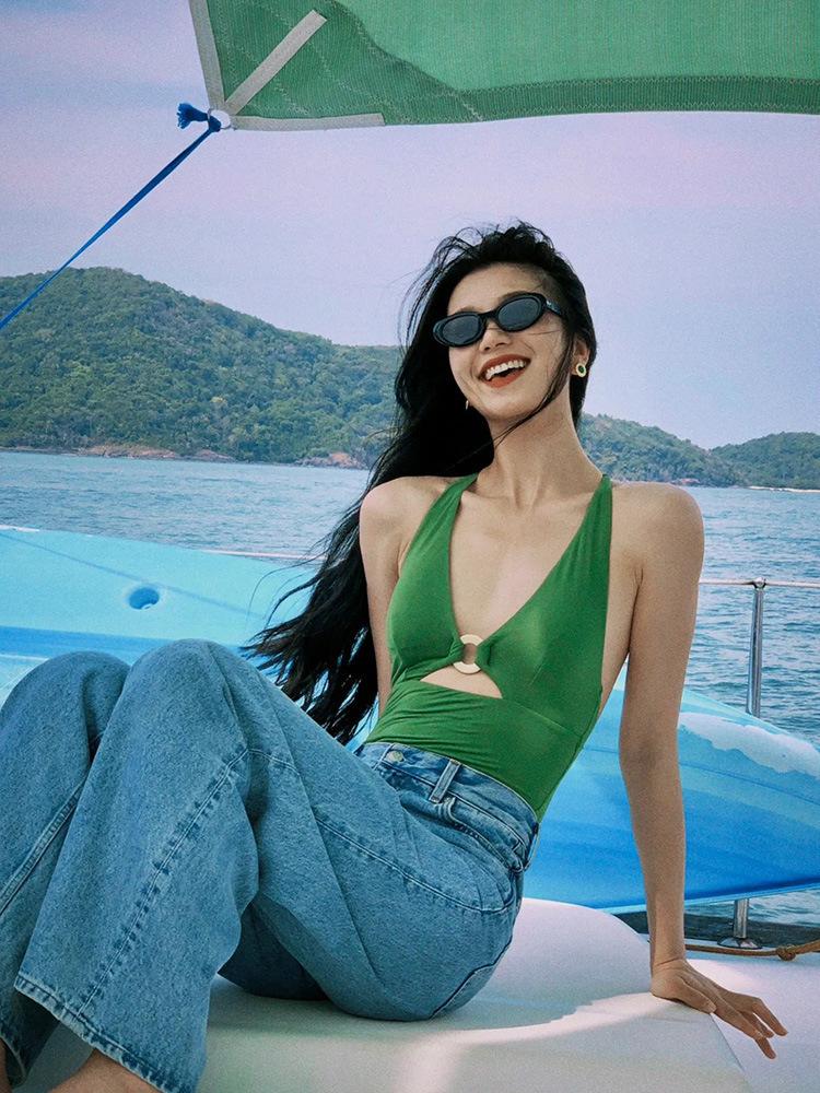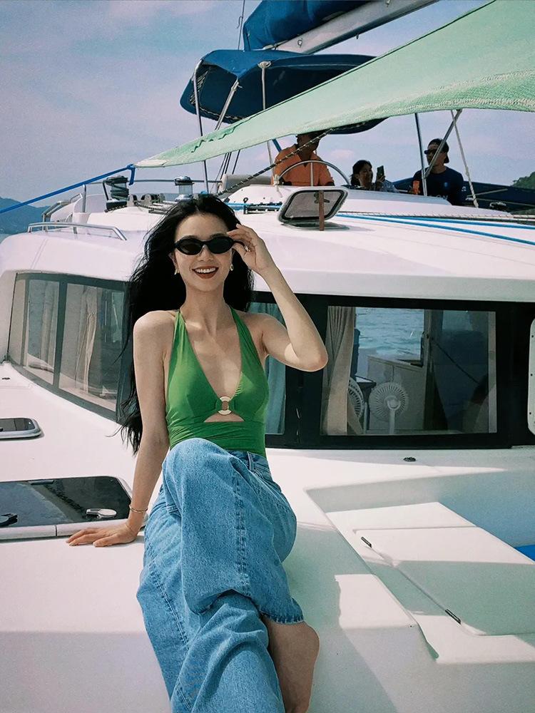 Traje de baño de nailon amoniaco plano de alta calidad para mujer Nuevo traje de baño de una pieza Hottie Sexy Traje de baño para aguas termales Bikini de celebridad de Internet