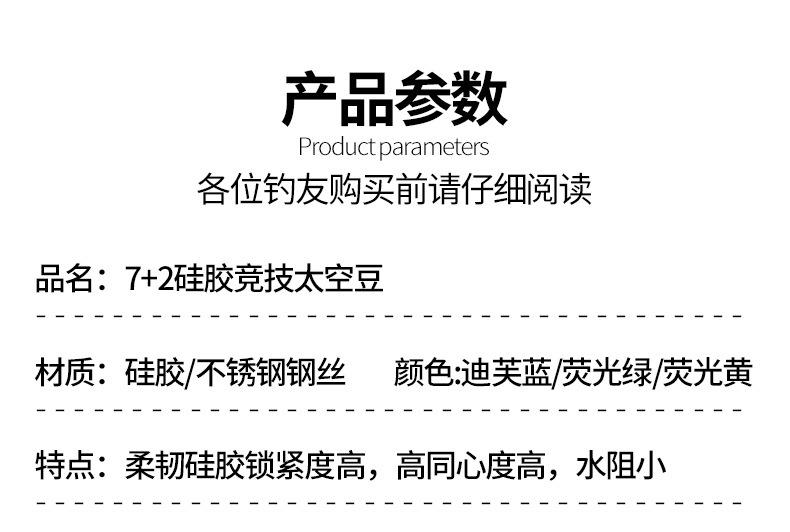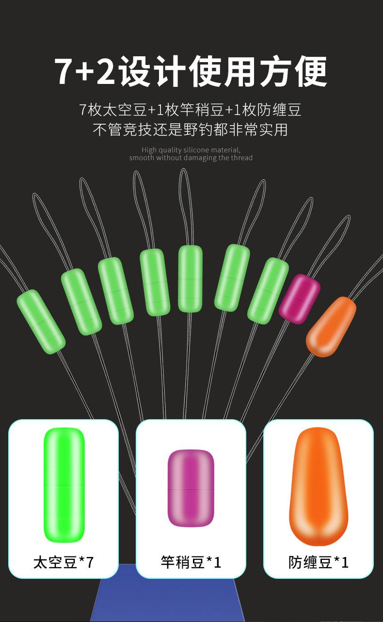 Super Ajustado Verde Fluorescente Silicona Frijol Espacial 7 2 Competitivo Granel Alta Calidad Equipo de Pesca Set de Línea de Pesca Accesorios Pequeños