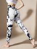 Pantalones de yoga tie-dye europeos y americanos para mujer, ajustados, de cintura alta, de secado rápido, con base deportiva color melocotón, para levantar la cadera, para correr y hacer ejercicio.