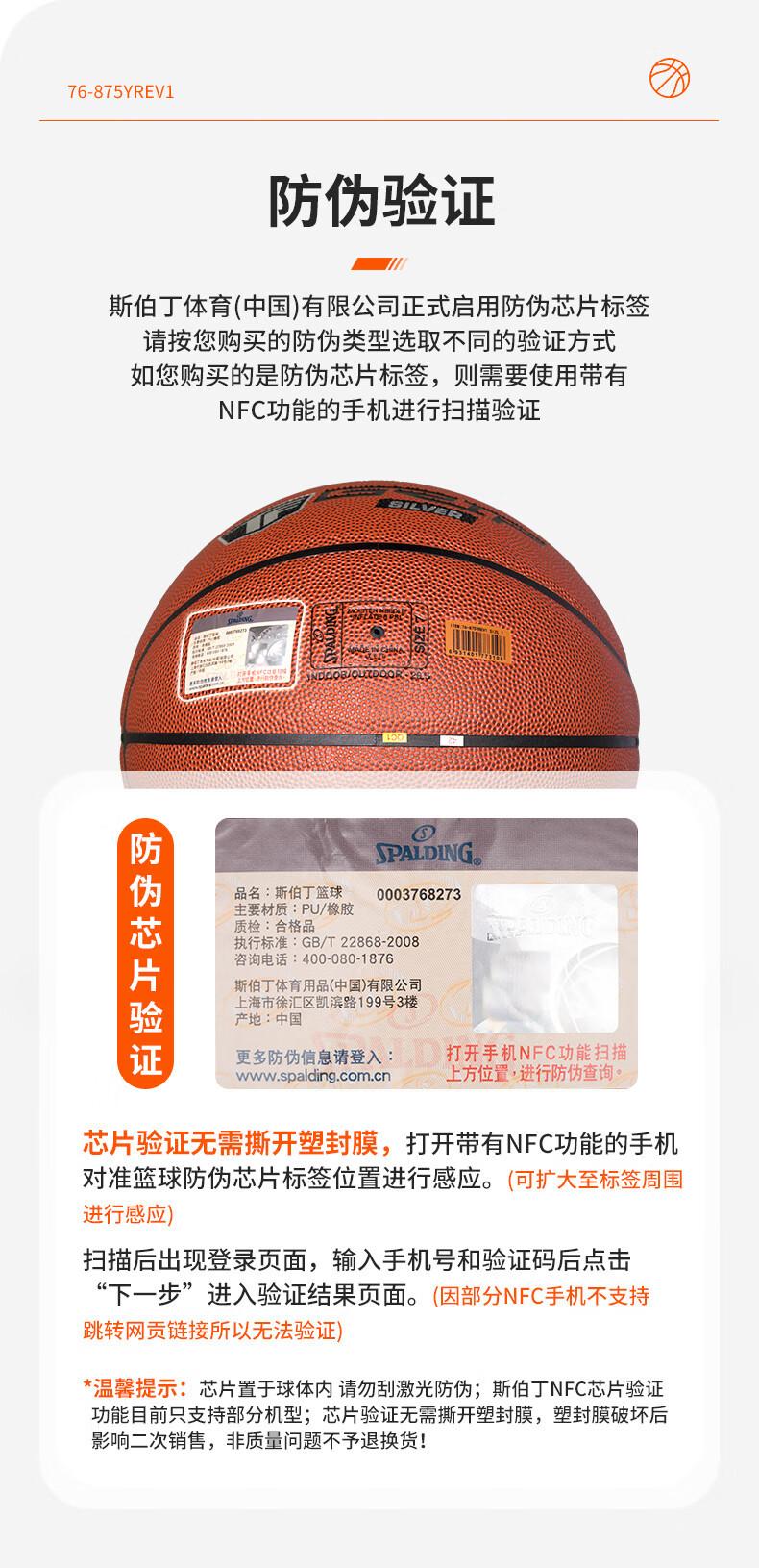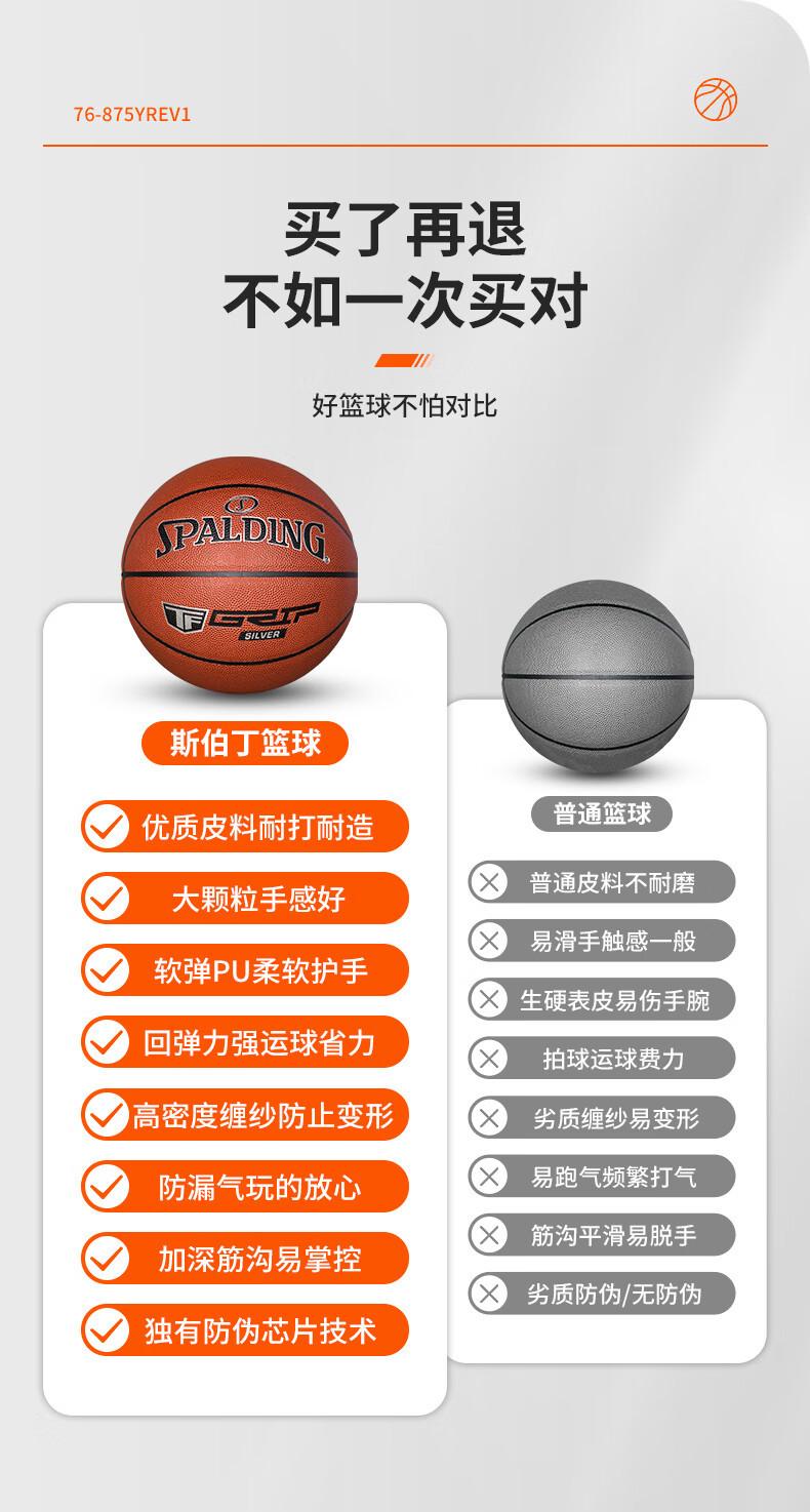 Baloncesto Spalding 76-875Yrev1 Balón de Juego de PU Spalding Popular No. 7 Baloncesto para Adultos