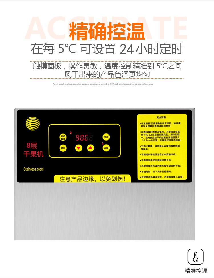 Deshidratador de Frutas de Acero Inoxidable de 8 Capas, Secador de Aire para Frutas, Deshidratador de Alimentos Pequeño, Snacks Caseros para Mascotas con Luz
