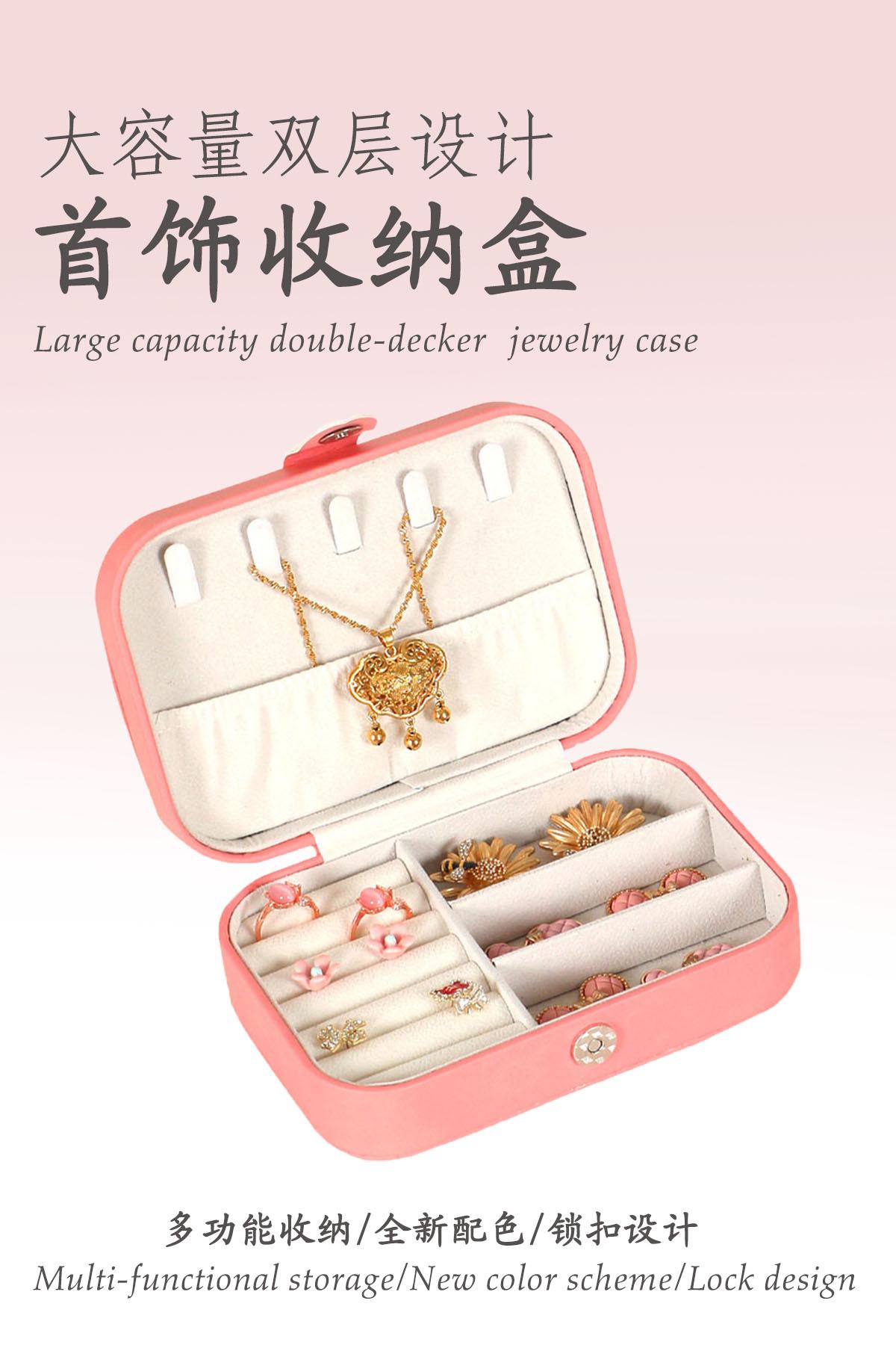 Caja de Almacenamiento de Joyas Doble Capa Cuero PU Caja de Joyas Pendientes Pendientes Collar Anillo Pulsera Caja de Viaje Multifuncional