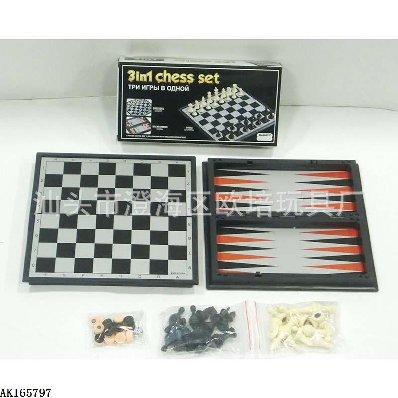 Juego de damas de backgammon magnético tres en uno, ajedrez plegable, ajedrez blanco y negro, juego de escritorio para niños, juguete