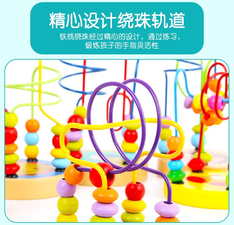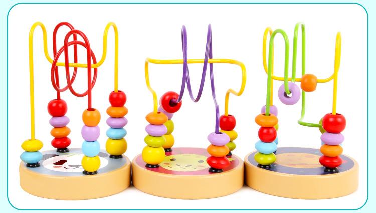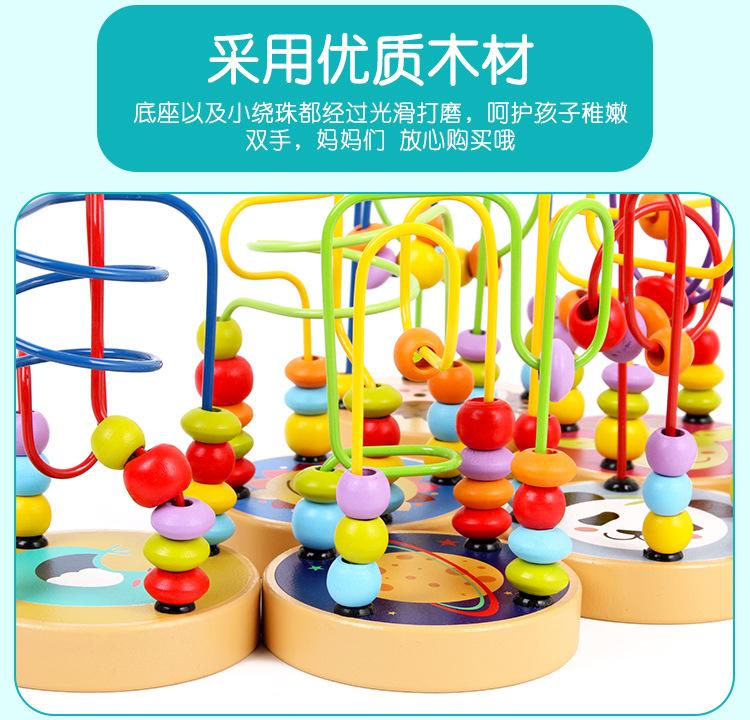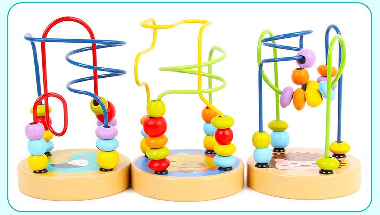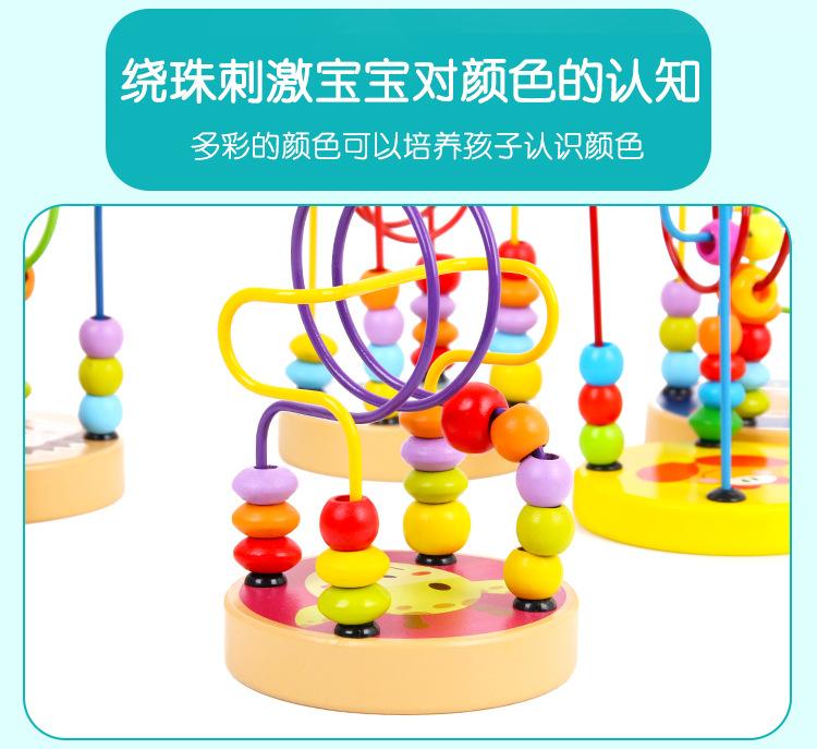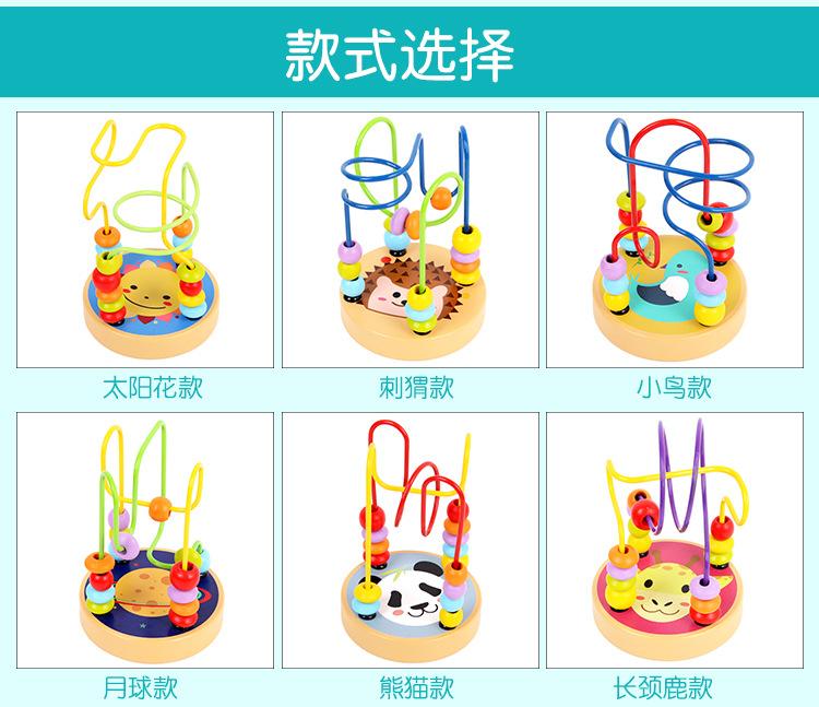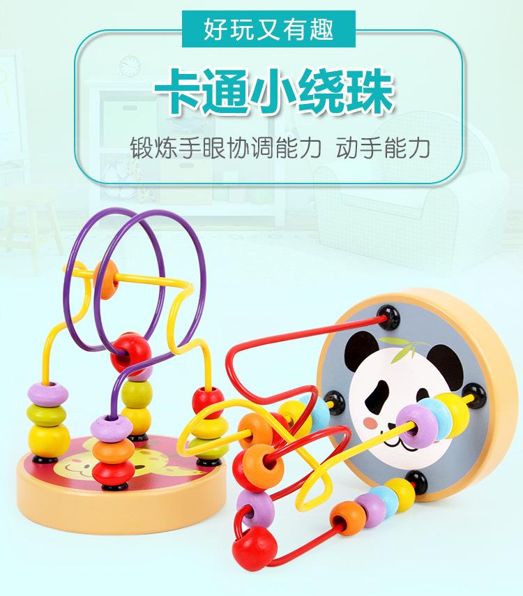 Cuentas pequeñas de madera con animales de dibujos animados para niños y niñas, educación temprana, bloques de construcción educativos, juguetes para ejercitar la coordinación mano-ojo del bebé