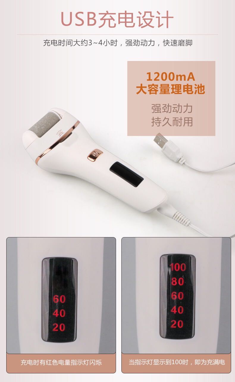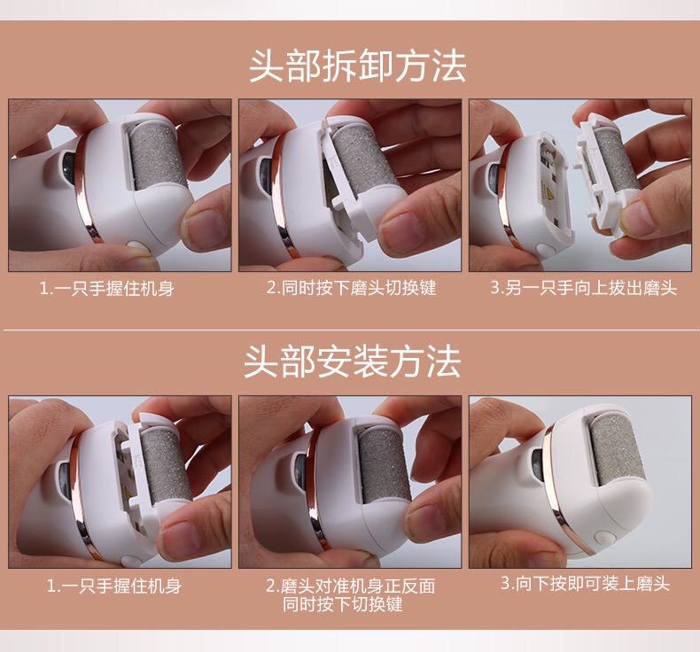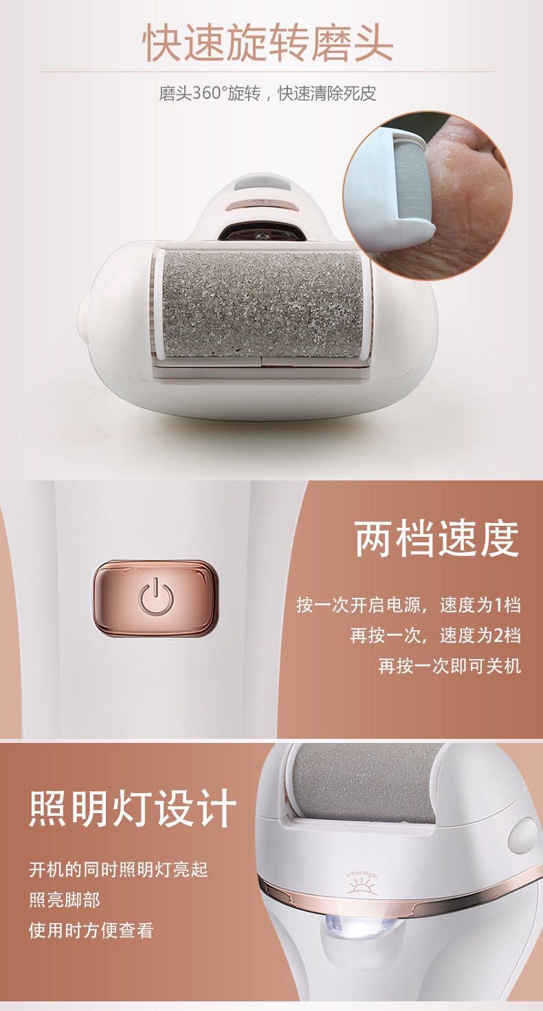 3. Potente, equipado con dos cabezales de pulido, grueso y fino, que pueden eliminar eficazmente la piel muerta y los callos.