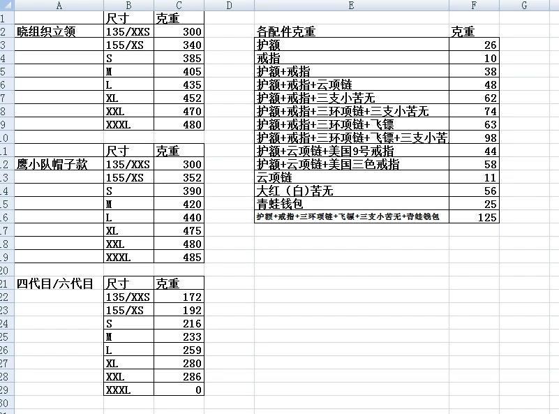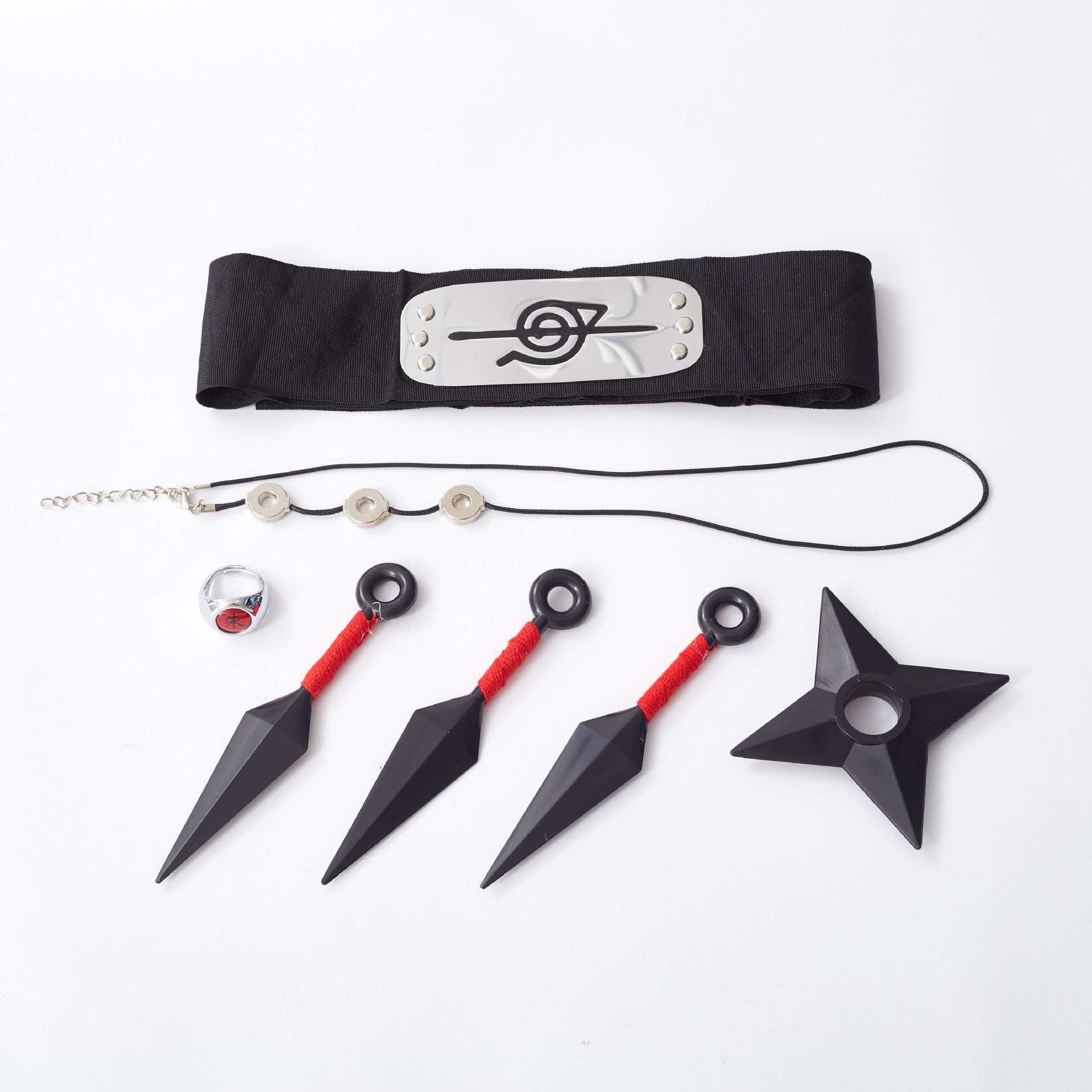 Fourth generation eye + konoha forehead protector + fourth generation big red kunai + fourth generation eye mask + three ring necklace + three flying thor small kunai + darts