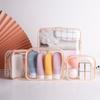 Bolsa de lavado impermeable de PVC para exteriores, bolsa de almacenamiento de viaje con separación húmeda y seca, bolsa de cosméticos de gran capacidad, transparente, impermeable, rosa