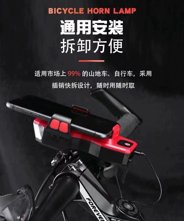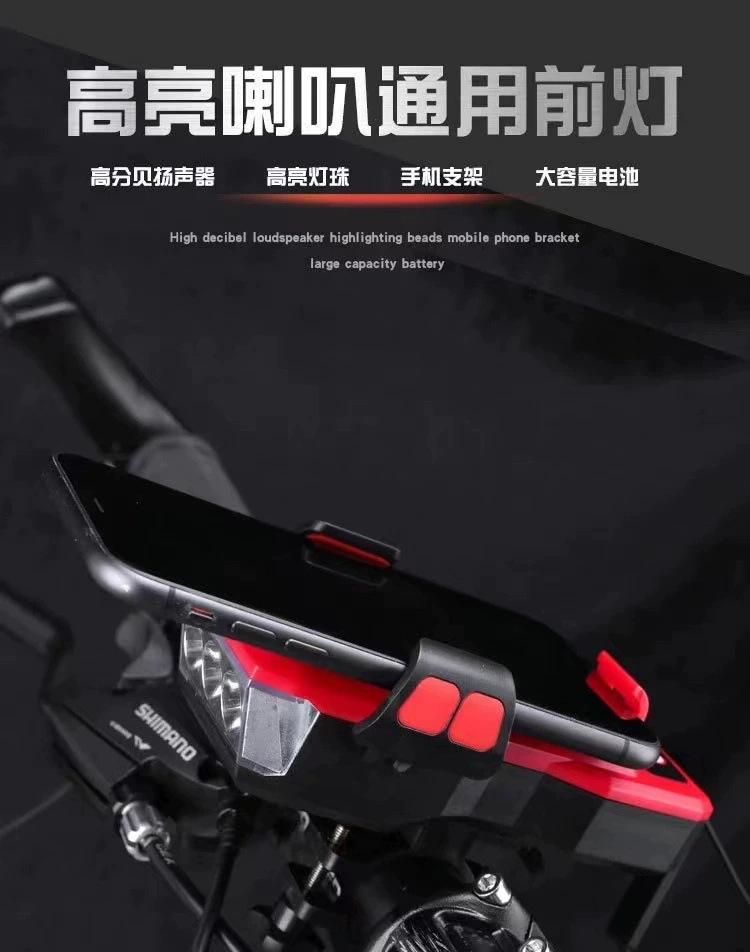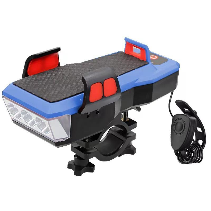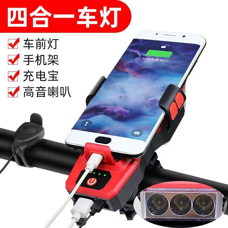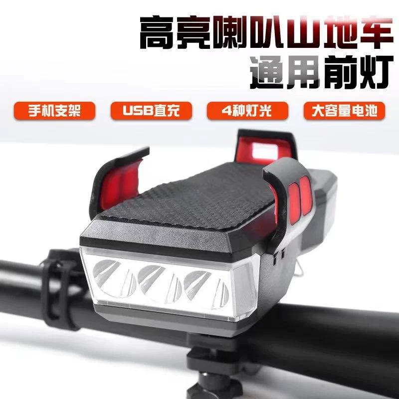 Luces de bicicleta, luces de ciclismo con bocina, luz potente, soporte para teléfono móvil, carga, luces de bicicleta de montaña cuatro en uno, carga, tesoro