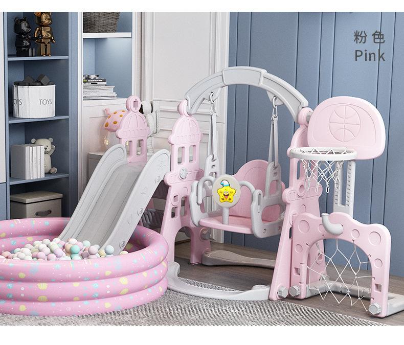 Compra Tobogán para niños, Columpio, Combinación de juguete cuatro en uno, Pequeño patio de juegos para bebés para el hogar en interiores y jardín de infancia al por mayor en Joom.pro