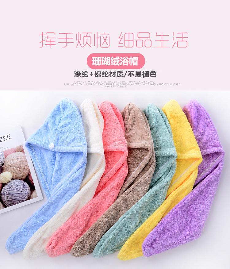 Venta al por mayor de fábrica Gorro de ducha de terciopelo coral de alta densidad Toalla absorbente Set para estudiantes Turbante Gorro grueso para secar el cabello