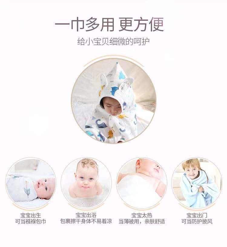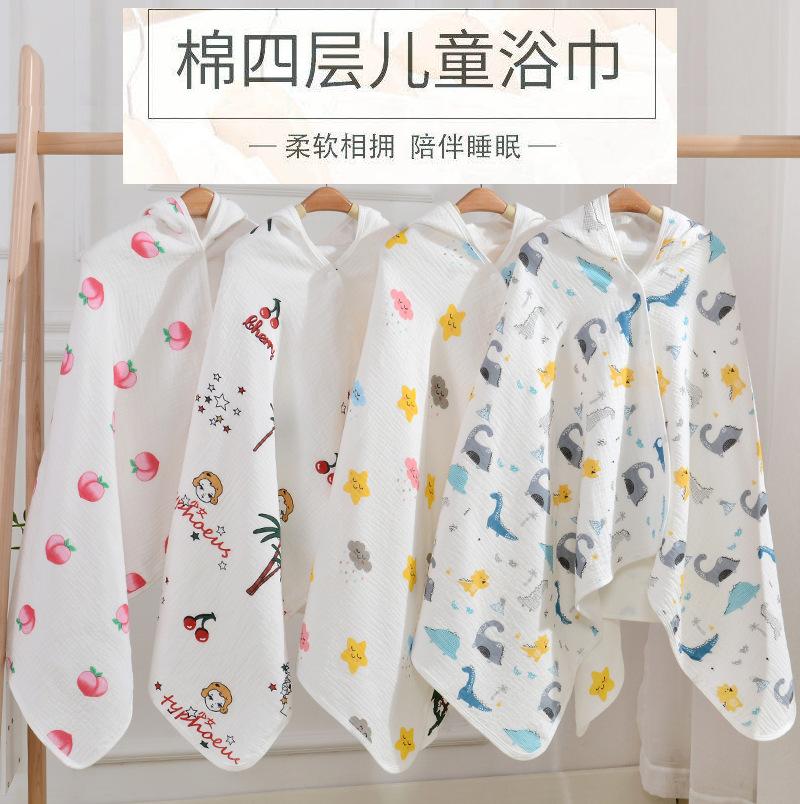 Toalla de baño de gasa de cuatro capas capa de algodón de azúcar con capucha para niños albornoz suave de dibujos animados para bebés toalla de baño