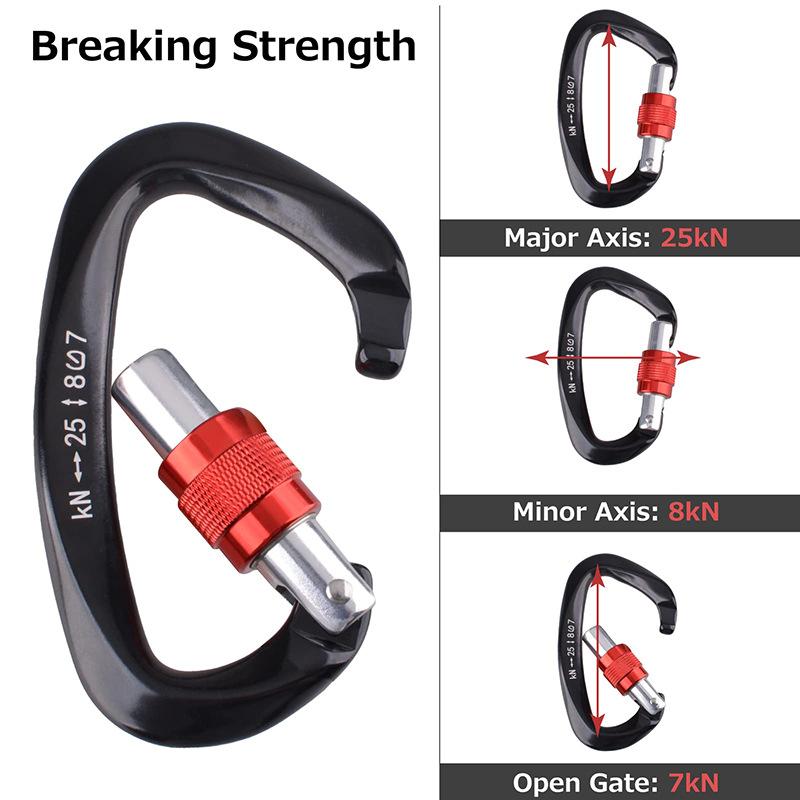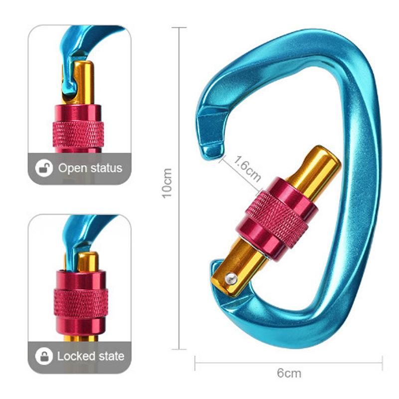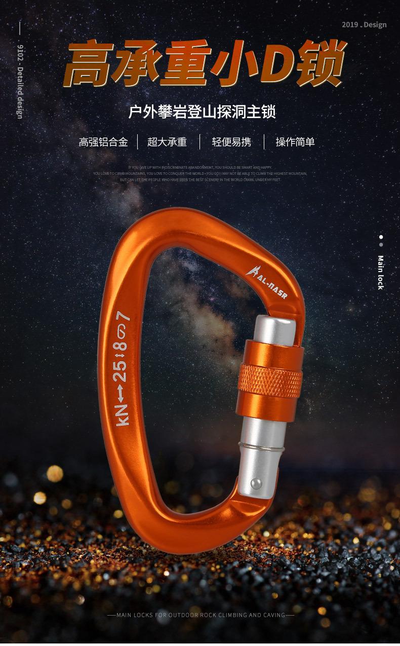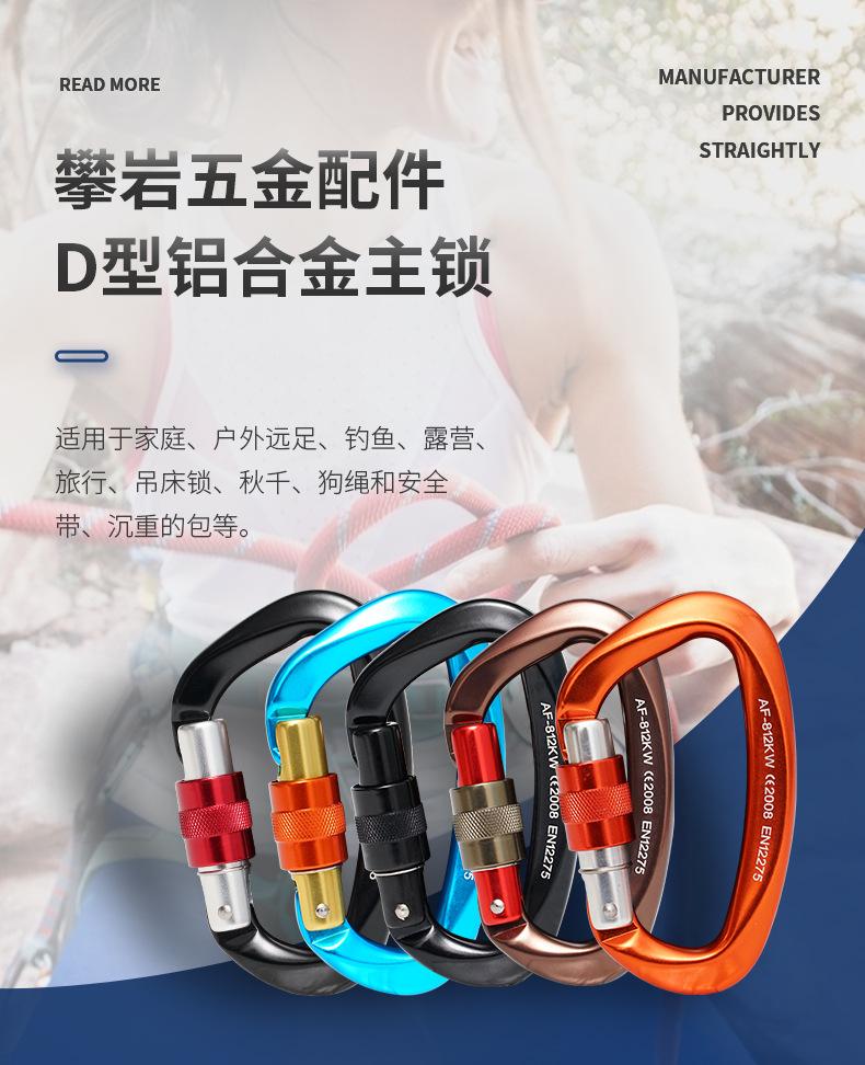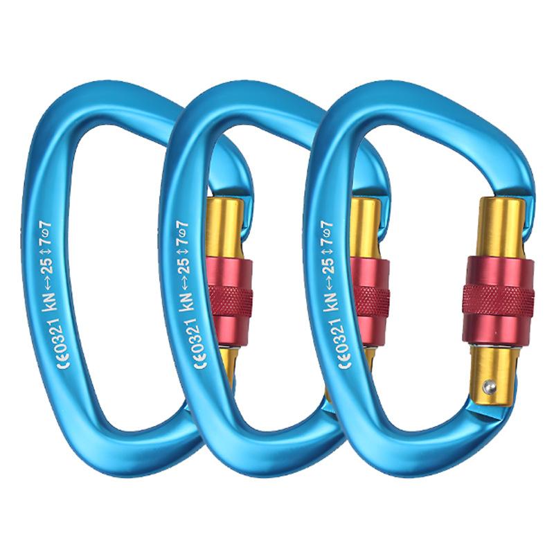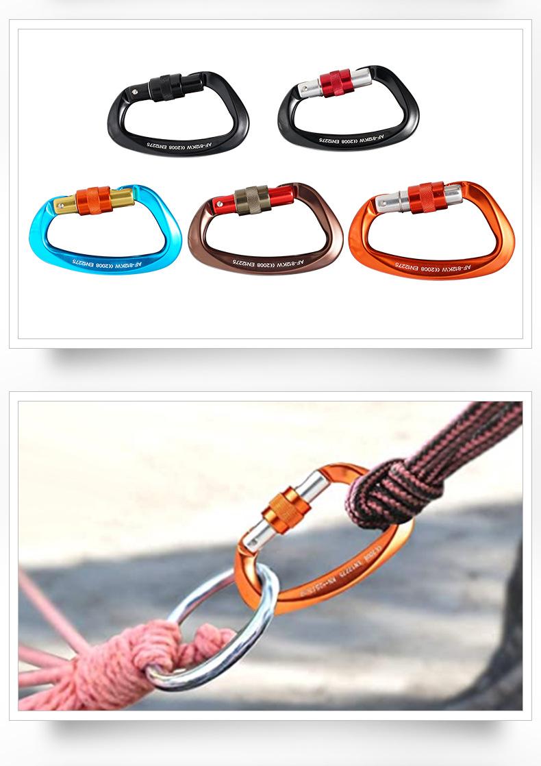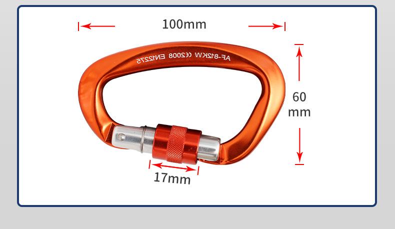Hebilla de alpinismo de aleación de aluminio de 25 kN transfronteriza, bloqueo principal de escalada al aire libre, gancho rápido de alta calidad con cerradura, hebilla en forma de D 8