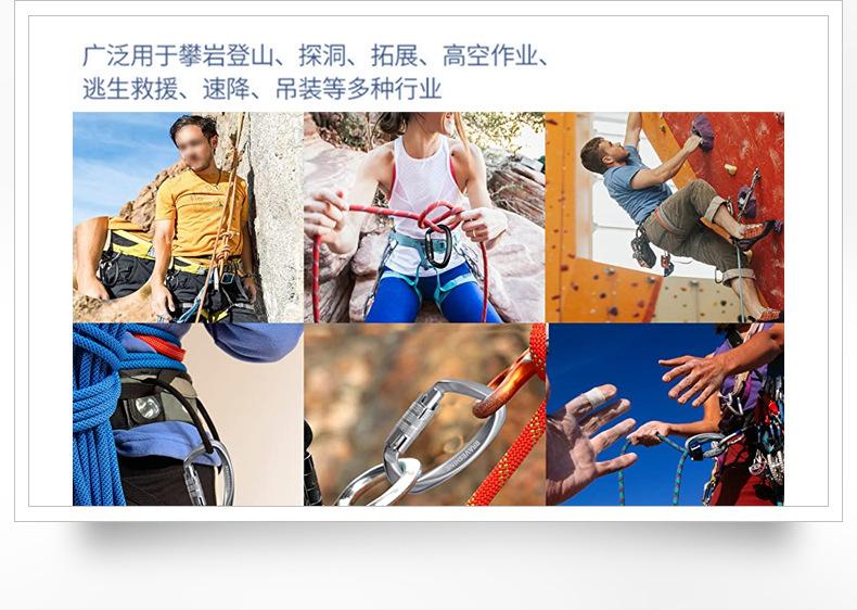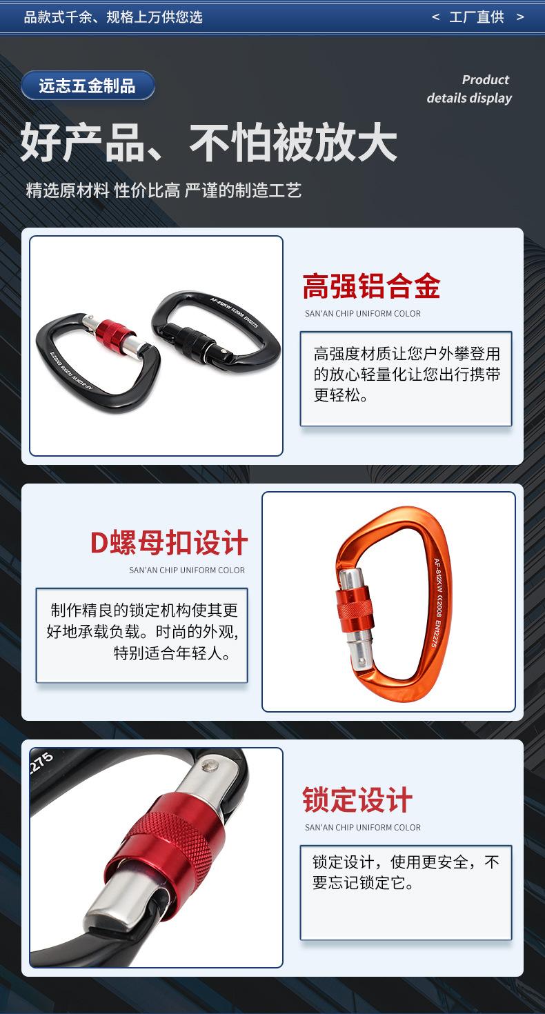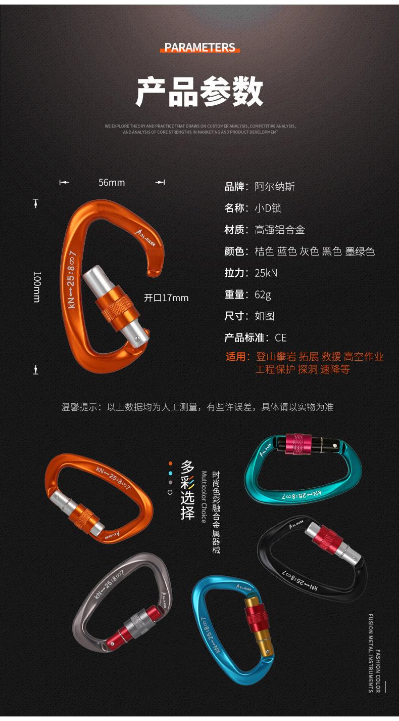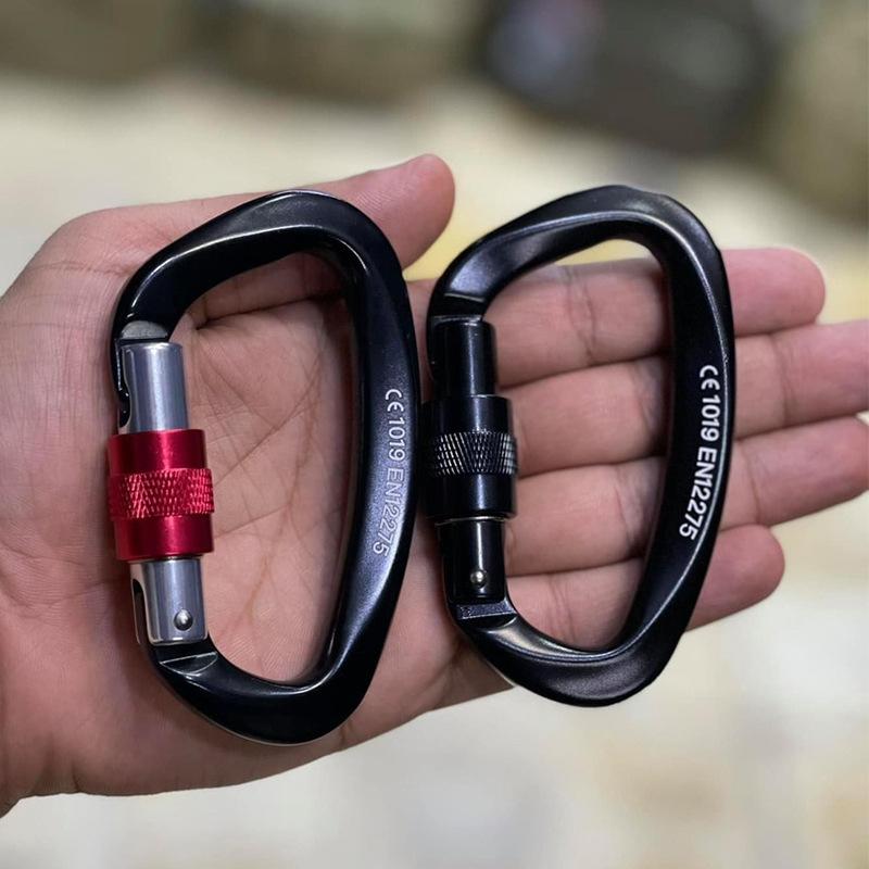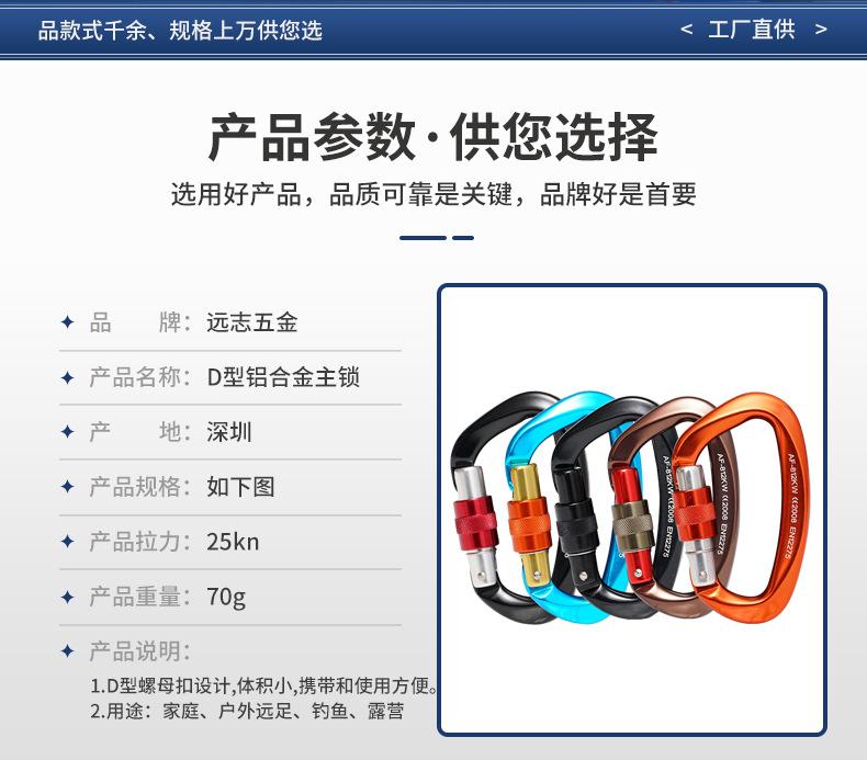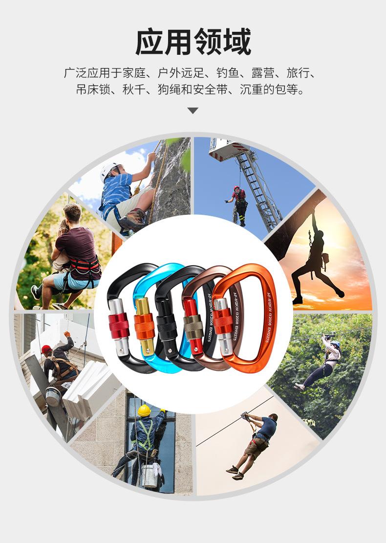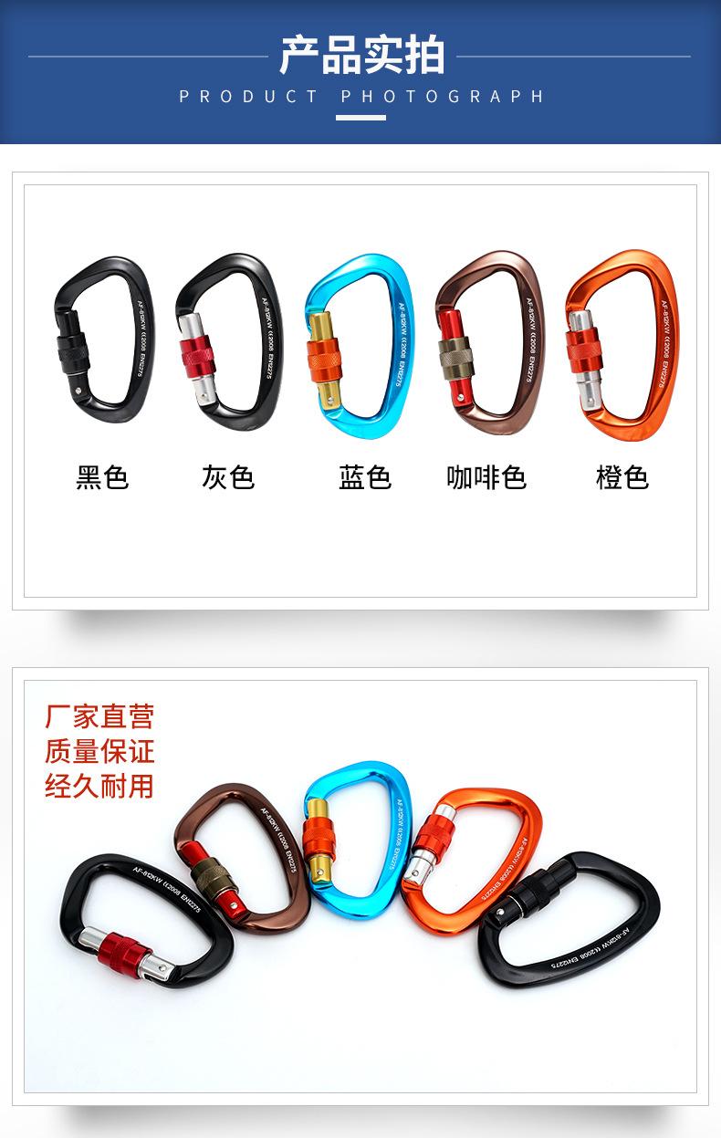 Hebilla de alpinismo de aleación de aluminio de 25 kN transfronteriza, bloqueo principal de escalada al aire libre, gancho rápido de alta calidad con cerradura, hebilla en forma de D 8