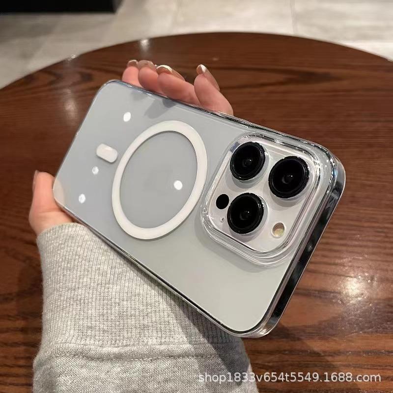Aplicable a Apple 15pro/Funda magnética MagSafe para teléfono iPhone13/12 PC de alta transparencia orificio fino funda magnética para teléfono 11