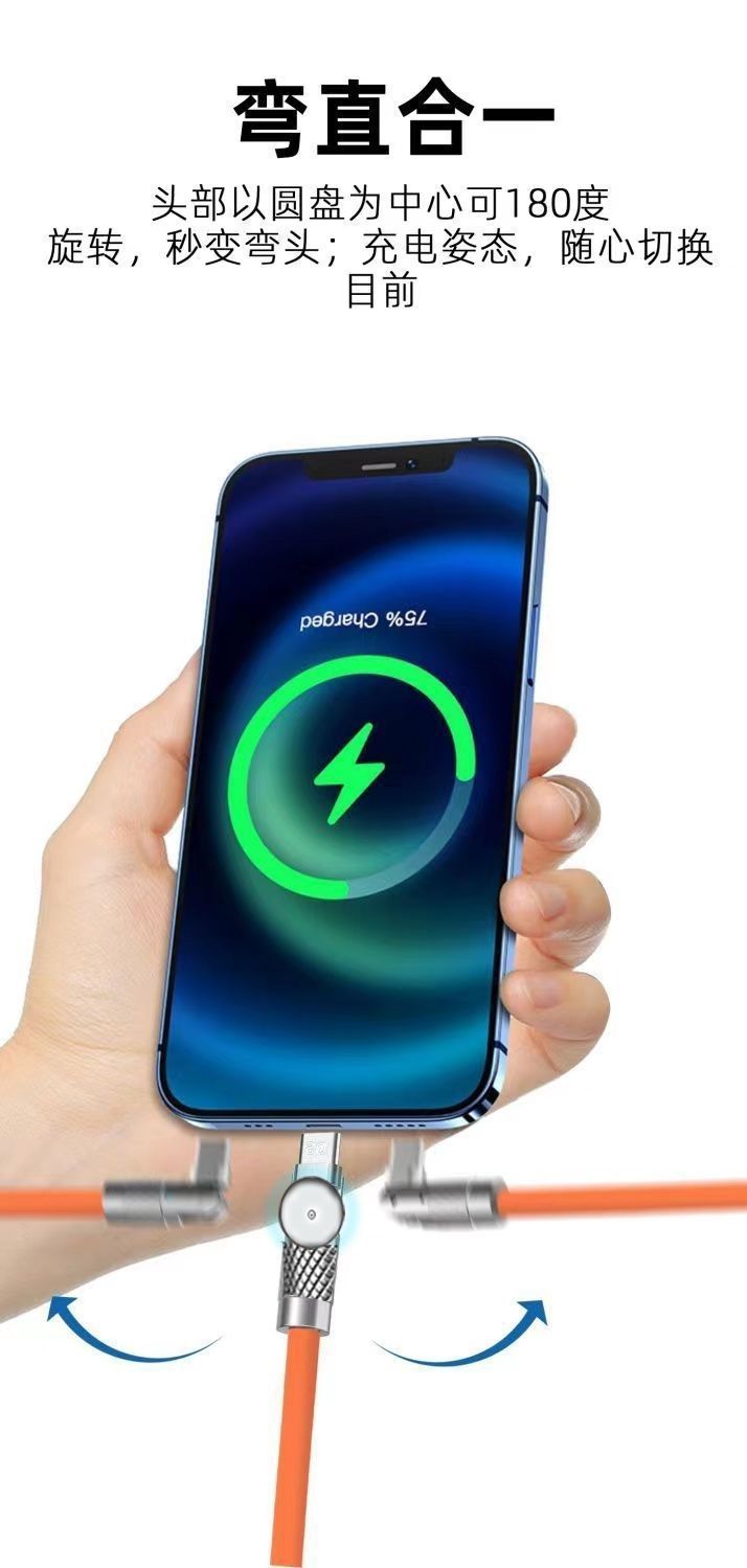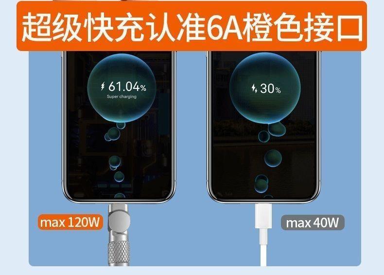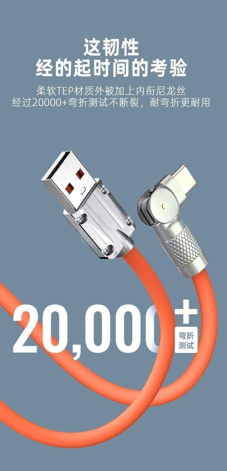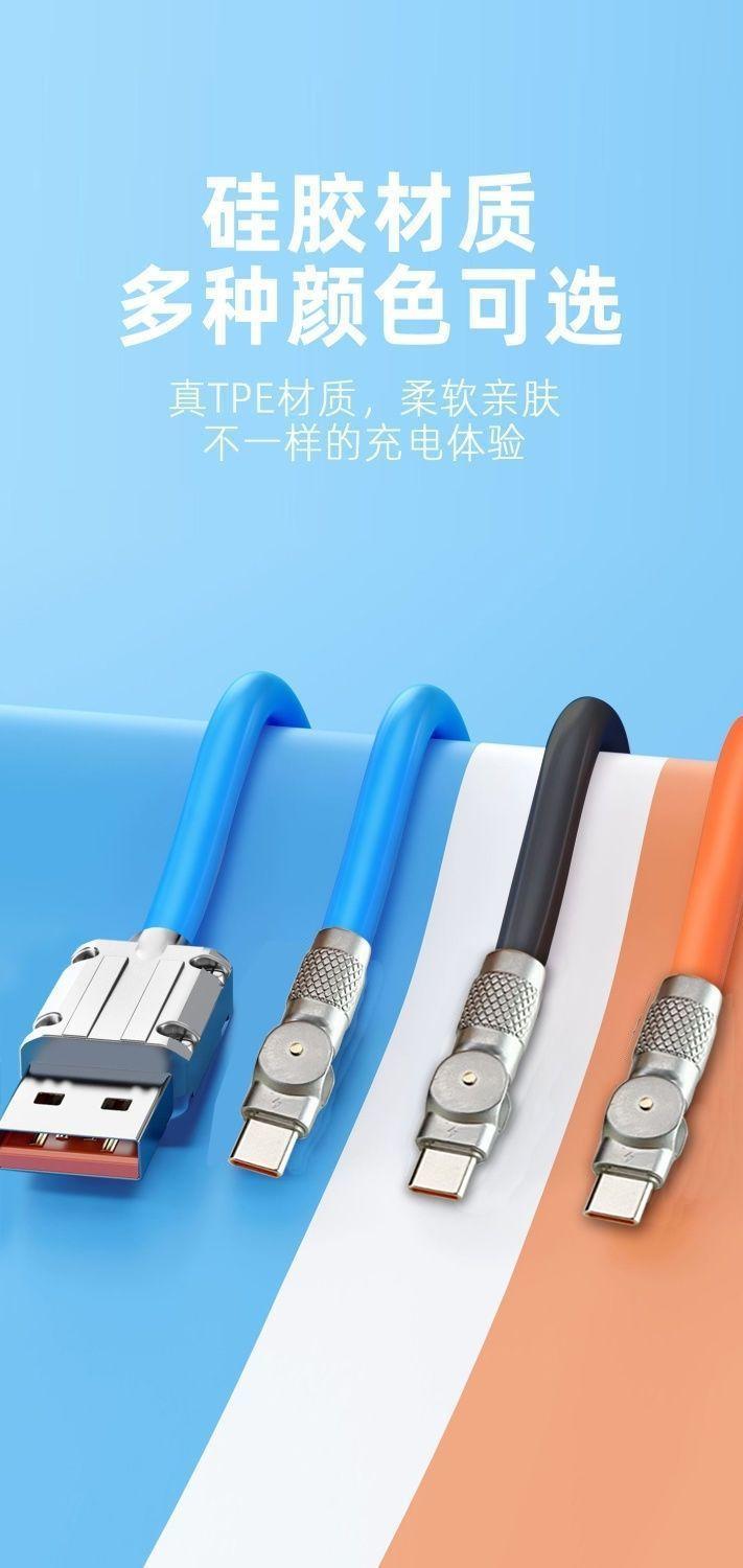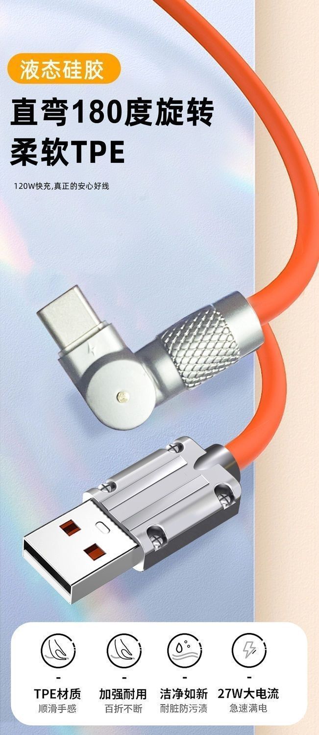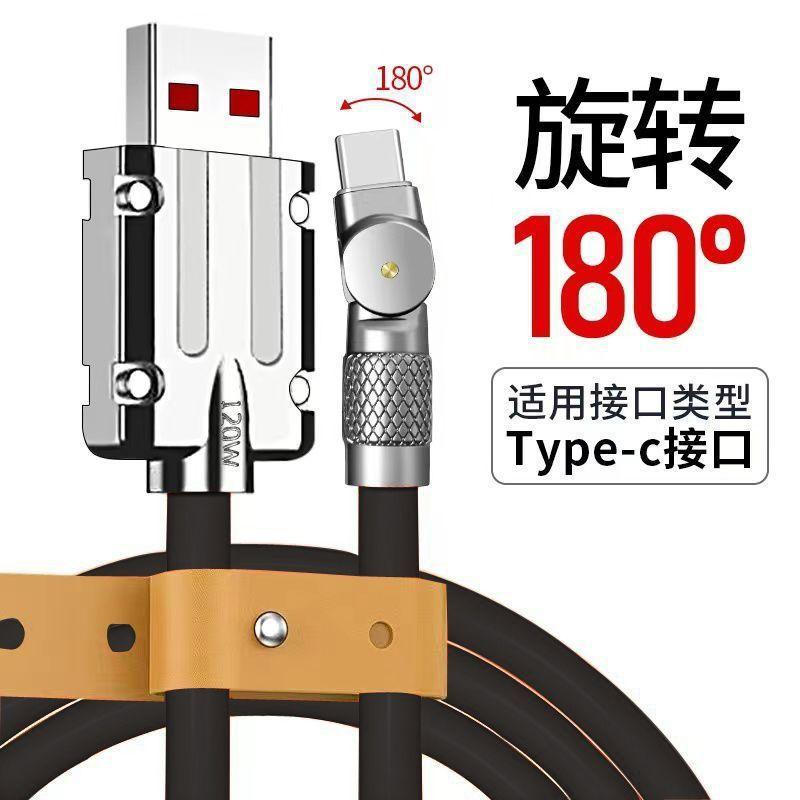 Compra Codo de 180 grados aleación de zinc línea de máquina giratoria 120W para teléfono móvil Android Huawei línea de datos de carga súper rápida al por mayor en Joom.pro