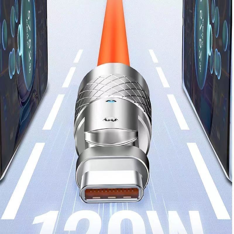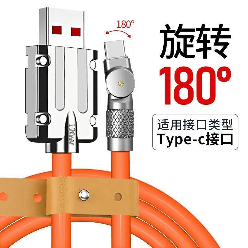 Codo de 180 grados aleación de zinc línea de máquina giratoria 120W para teléfono móvil Android Huawei línea de datos de carga súper rápida
