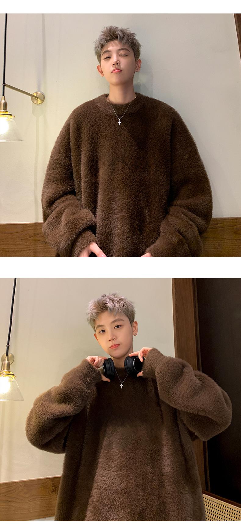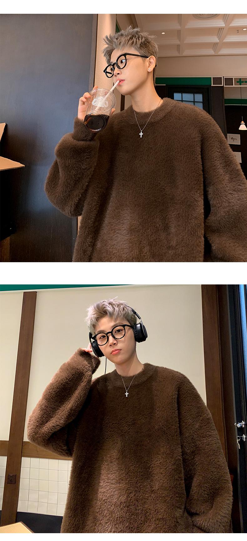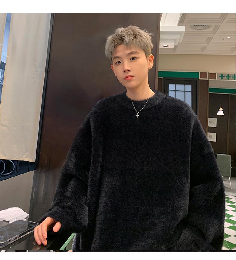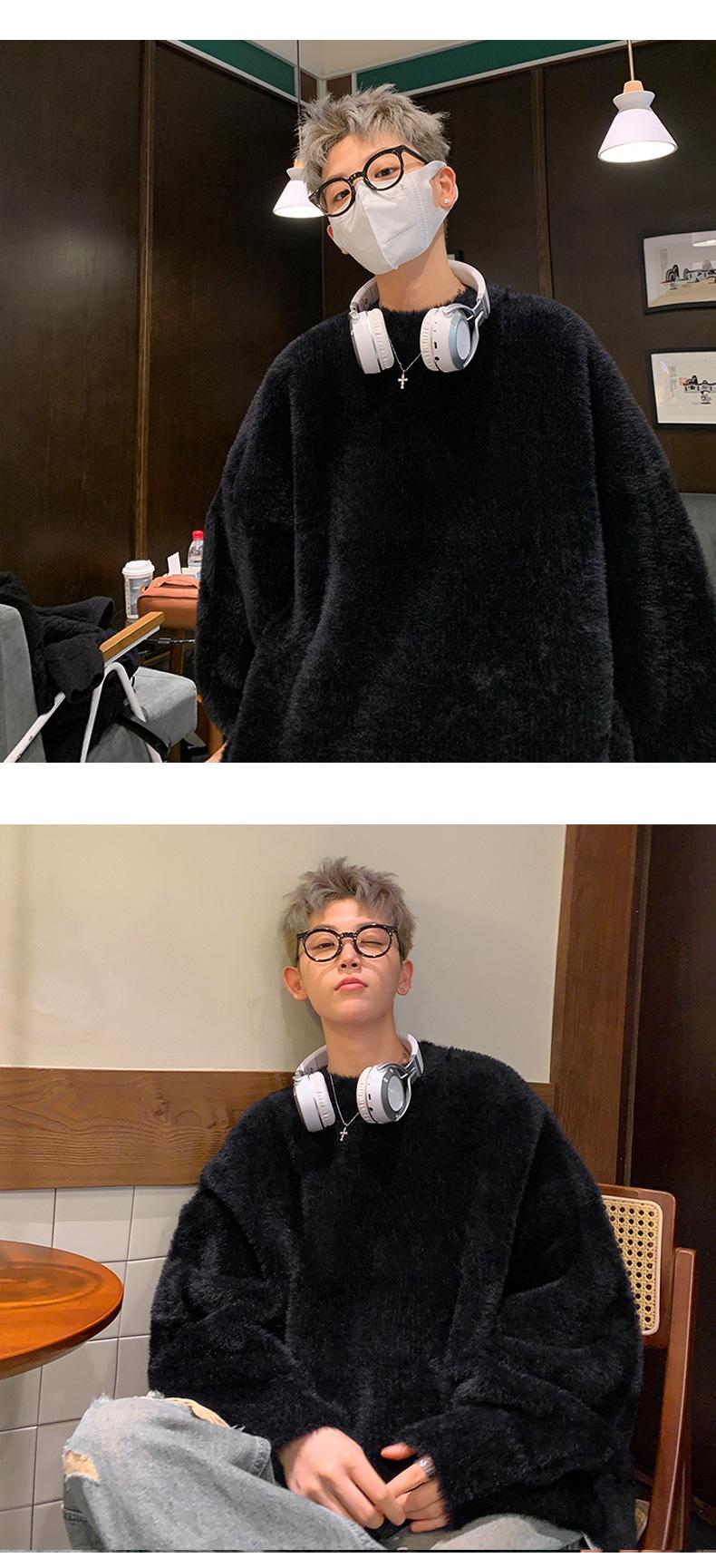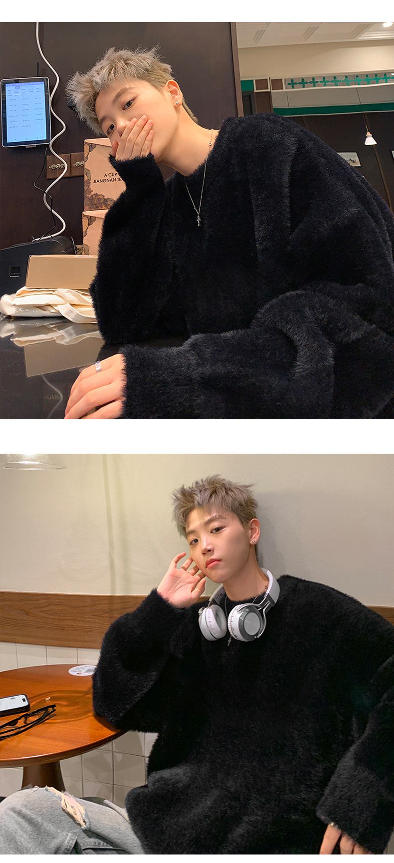 Cleanfit Suéter Haima de Lana Perezoso de Alta Gama para Hombre Otoño e Invierno Suéter de Punto Negro con Abrigo Peludo