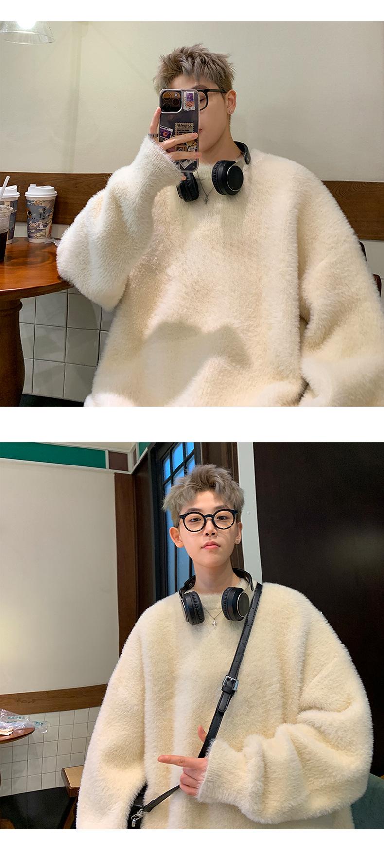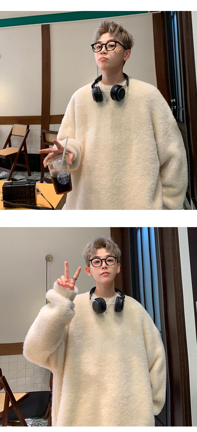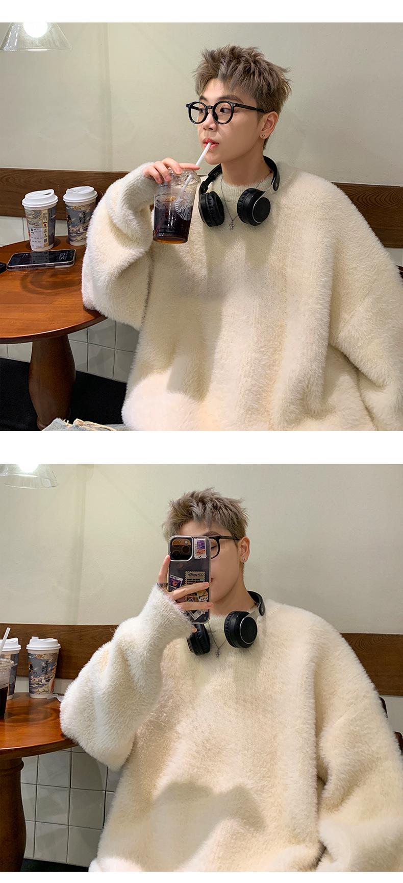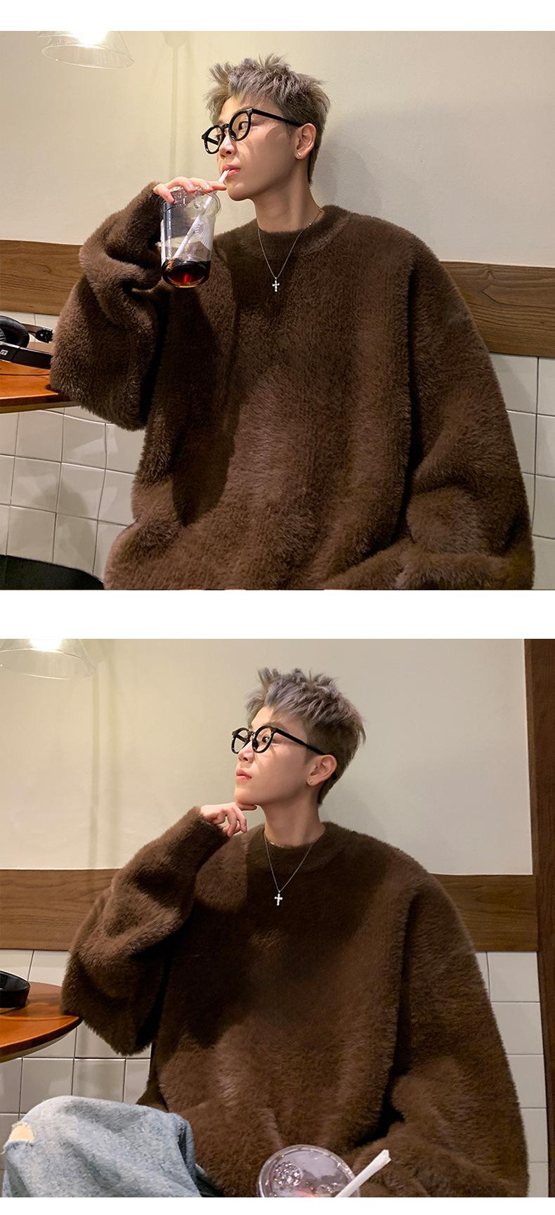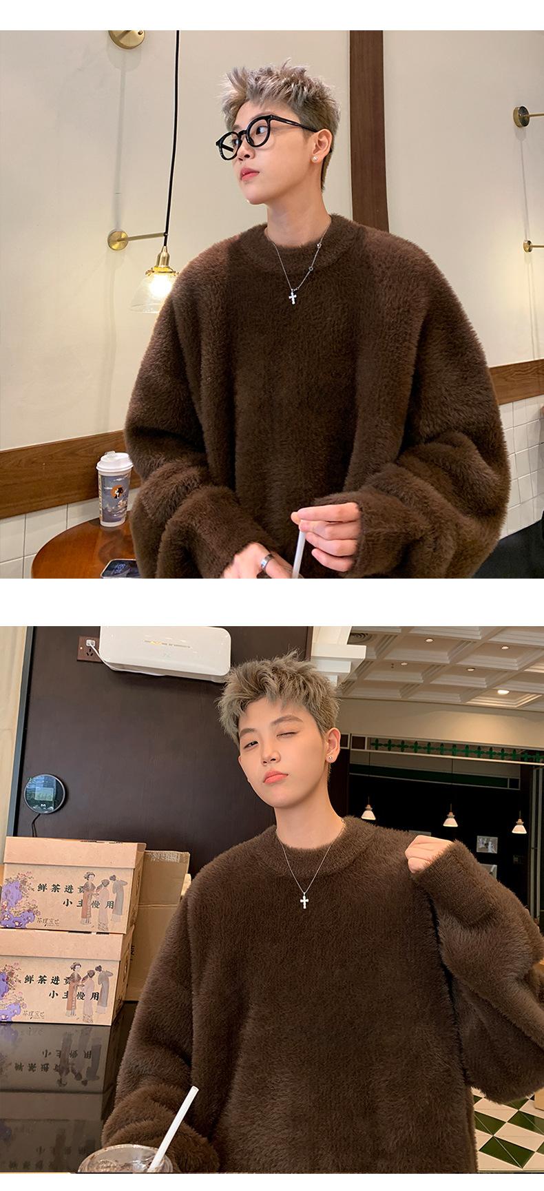 Cleanfit Suéter Haima de Lana Perezoso de Alta Gama para Hombre Otoño e Invierno Suéter de Punto Negro con Abrigo Peludo