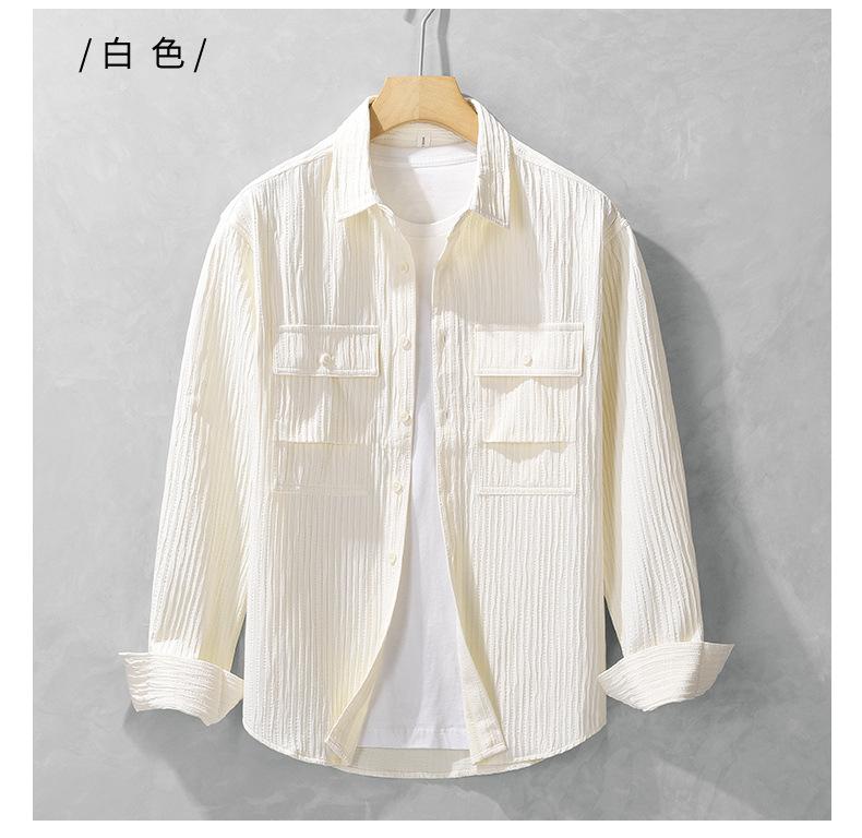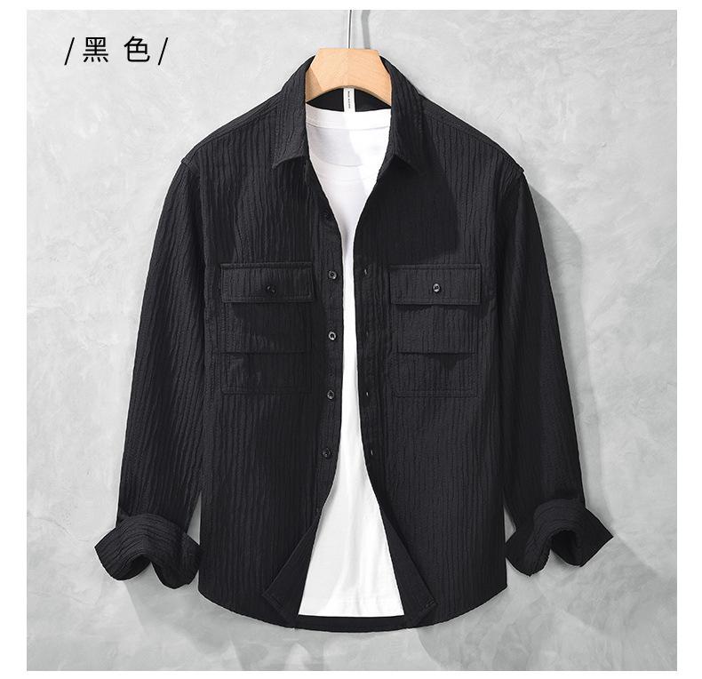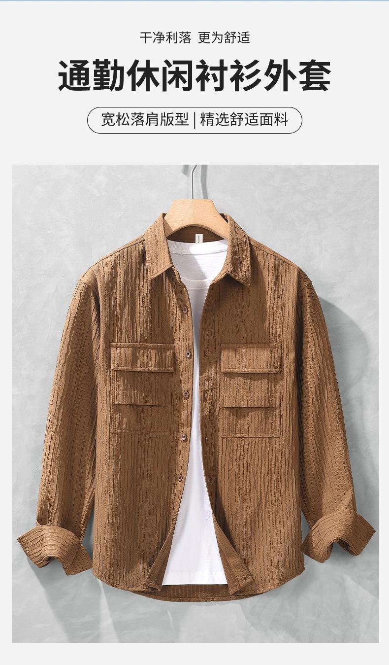 Camisa de poliéster de manga larga para hombre, nueva camisa de doble uso para primavera y otoño, tendencia simple, informal, holgada, venta directa de fábrica