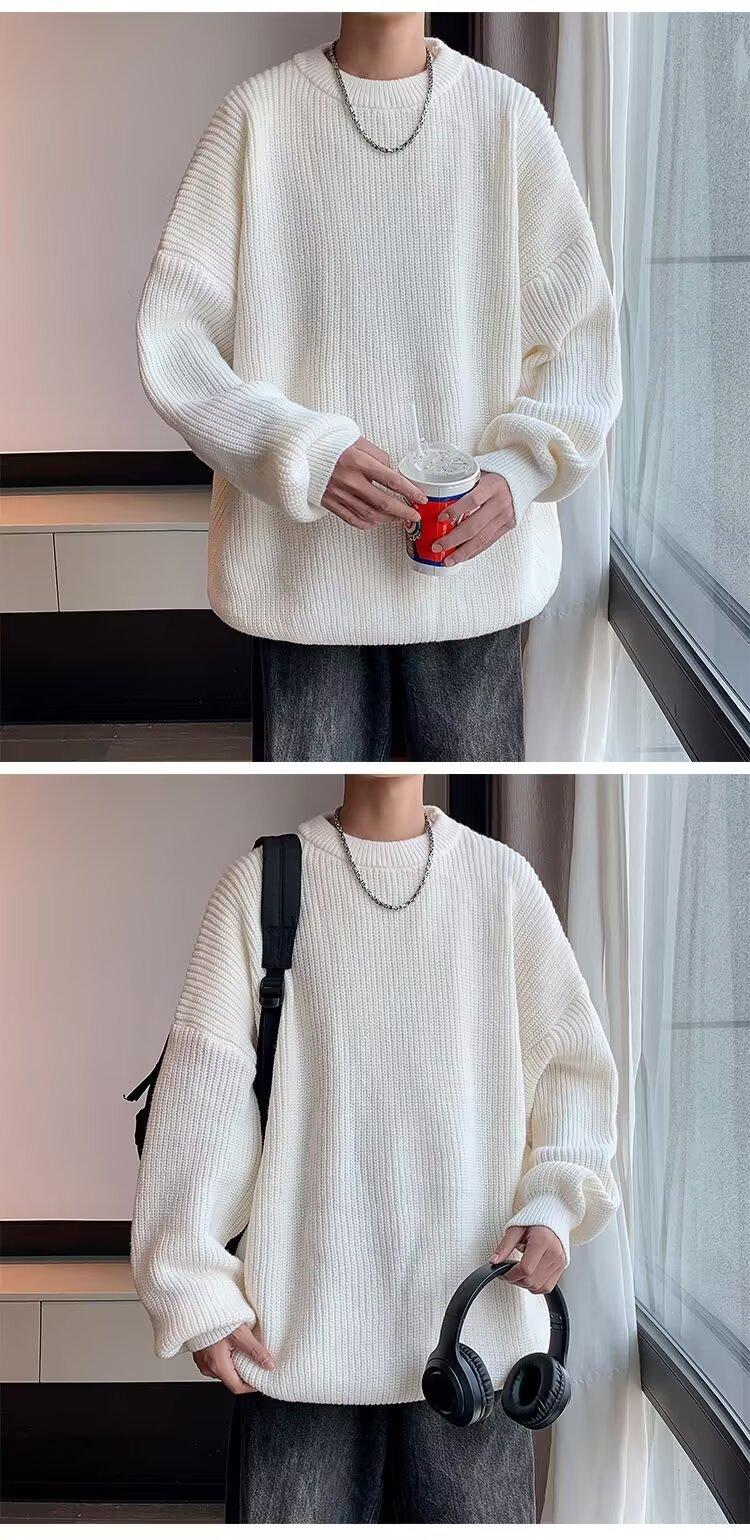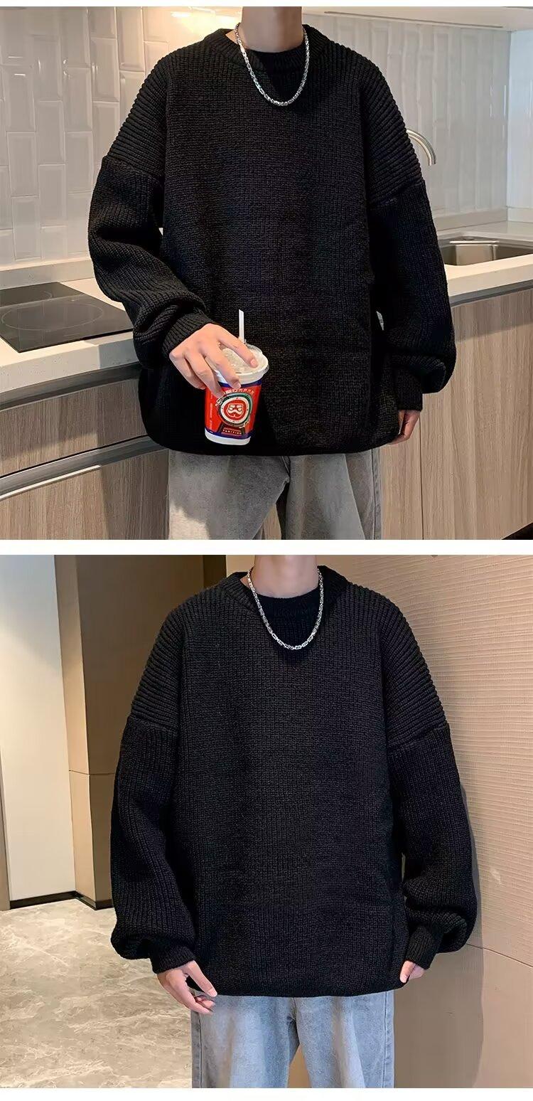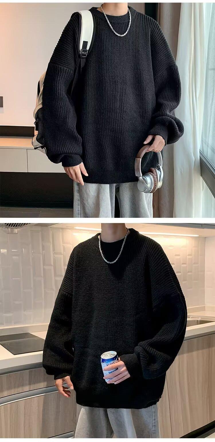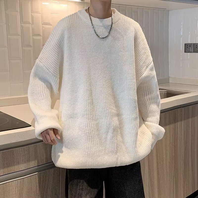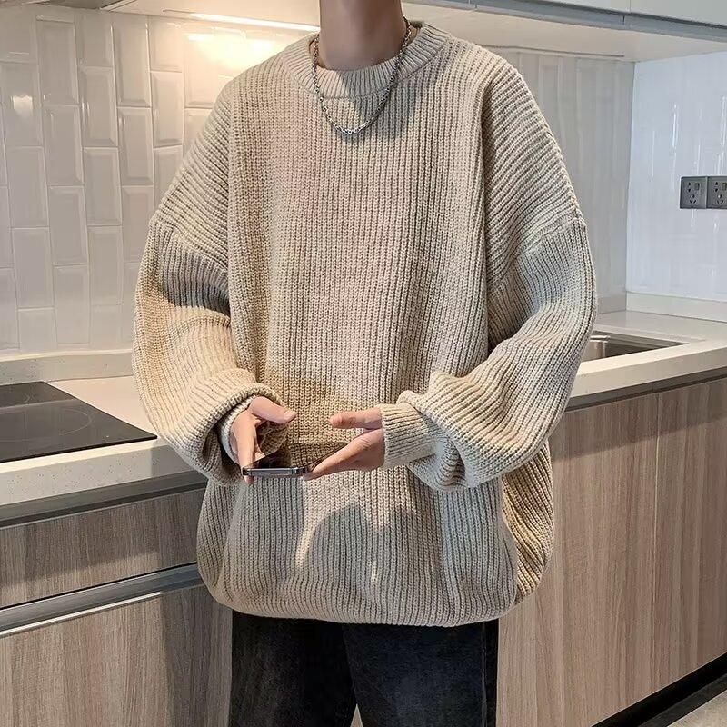 Suéter de Invierno para Hombre Oversize Holgado Estilo Perezoso Tejido para Parejas Jersey Cuello Redondo Color Sólido Suéter Base