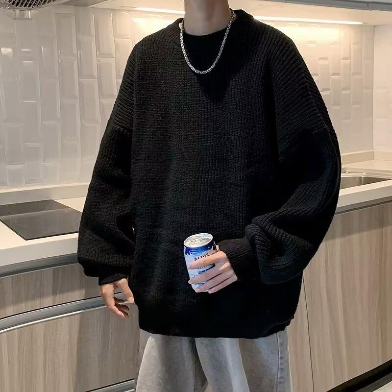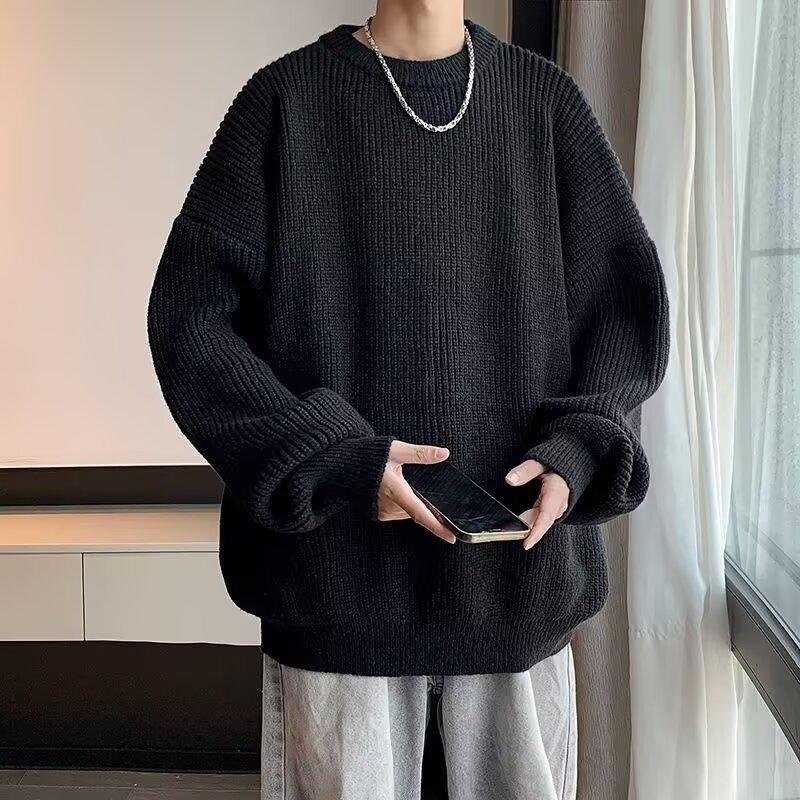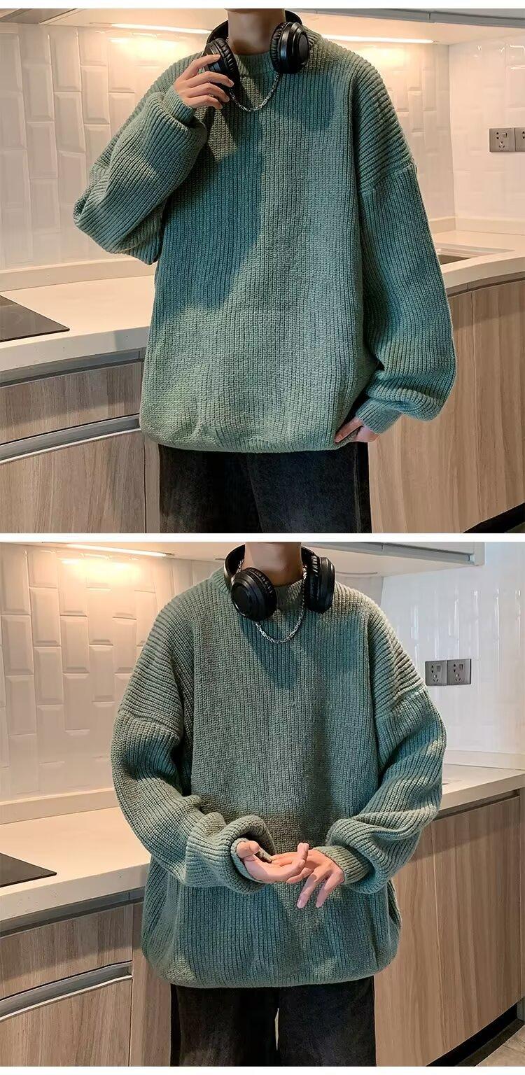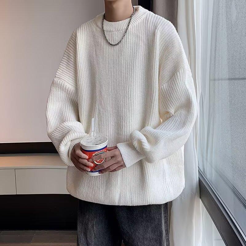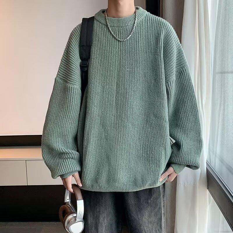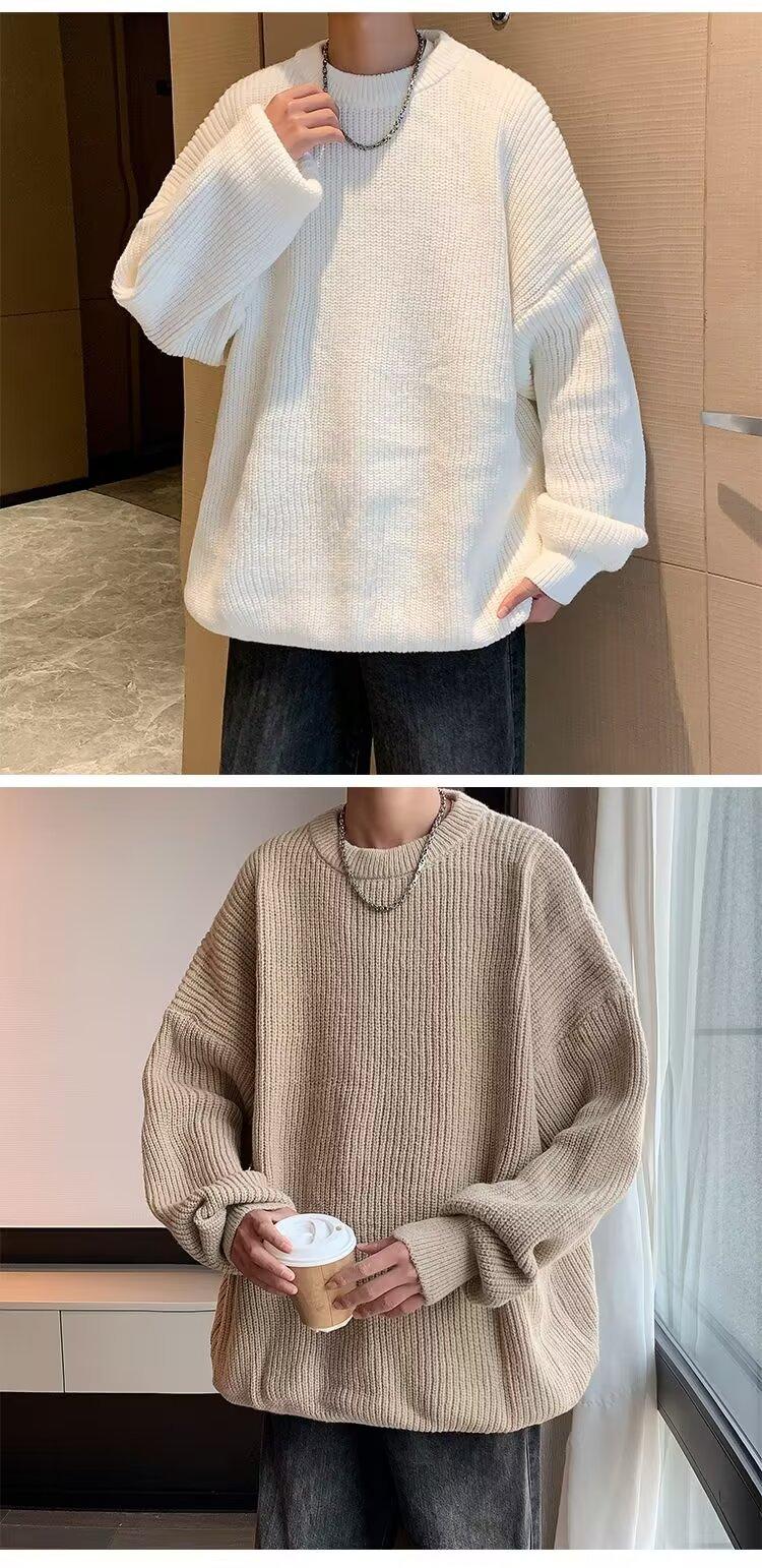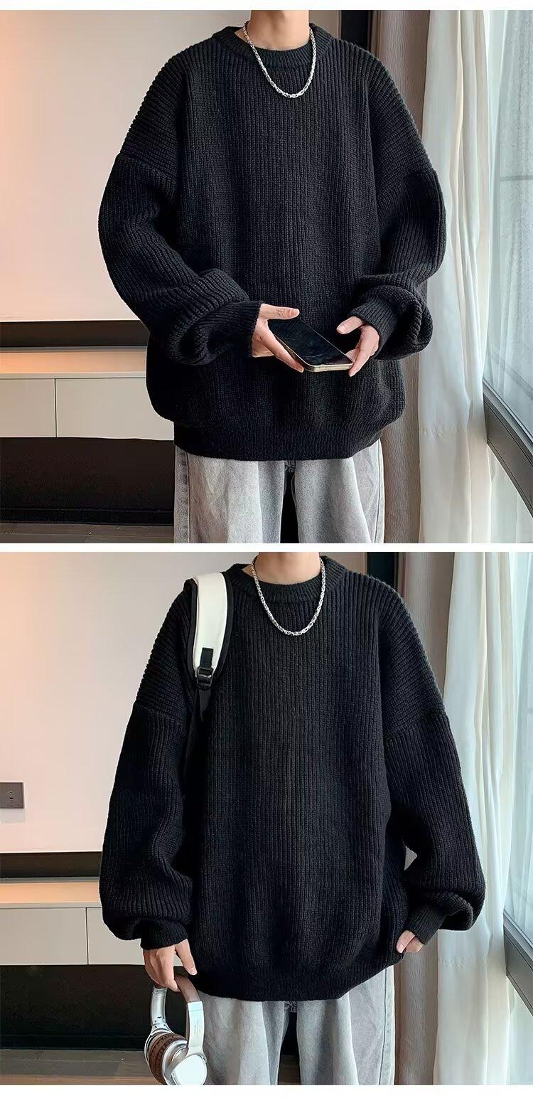 Suéter de Invierno para Hombre Oversize Holgado Estilo Perezoso Tejido para Parejas Jersey Cuello Redondo Color Sólido Suéter Base