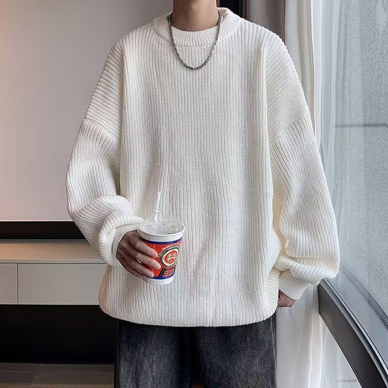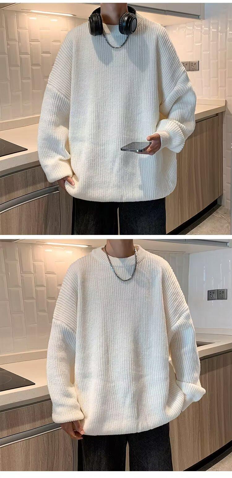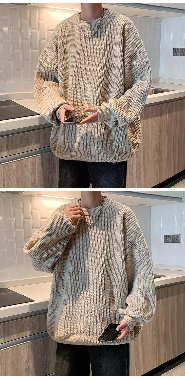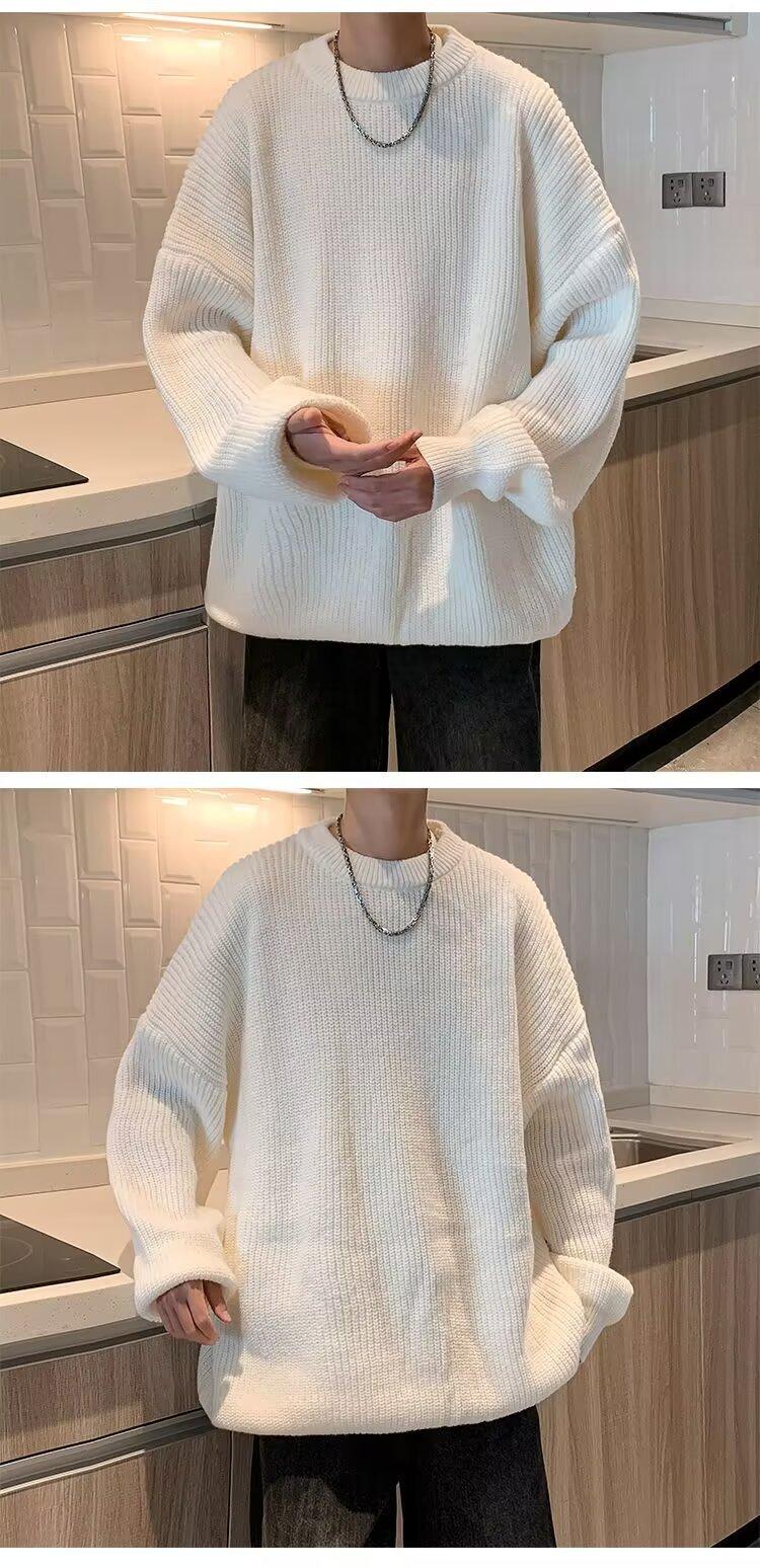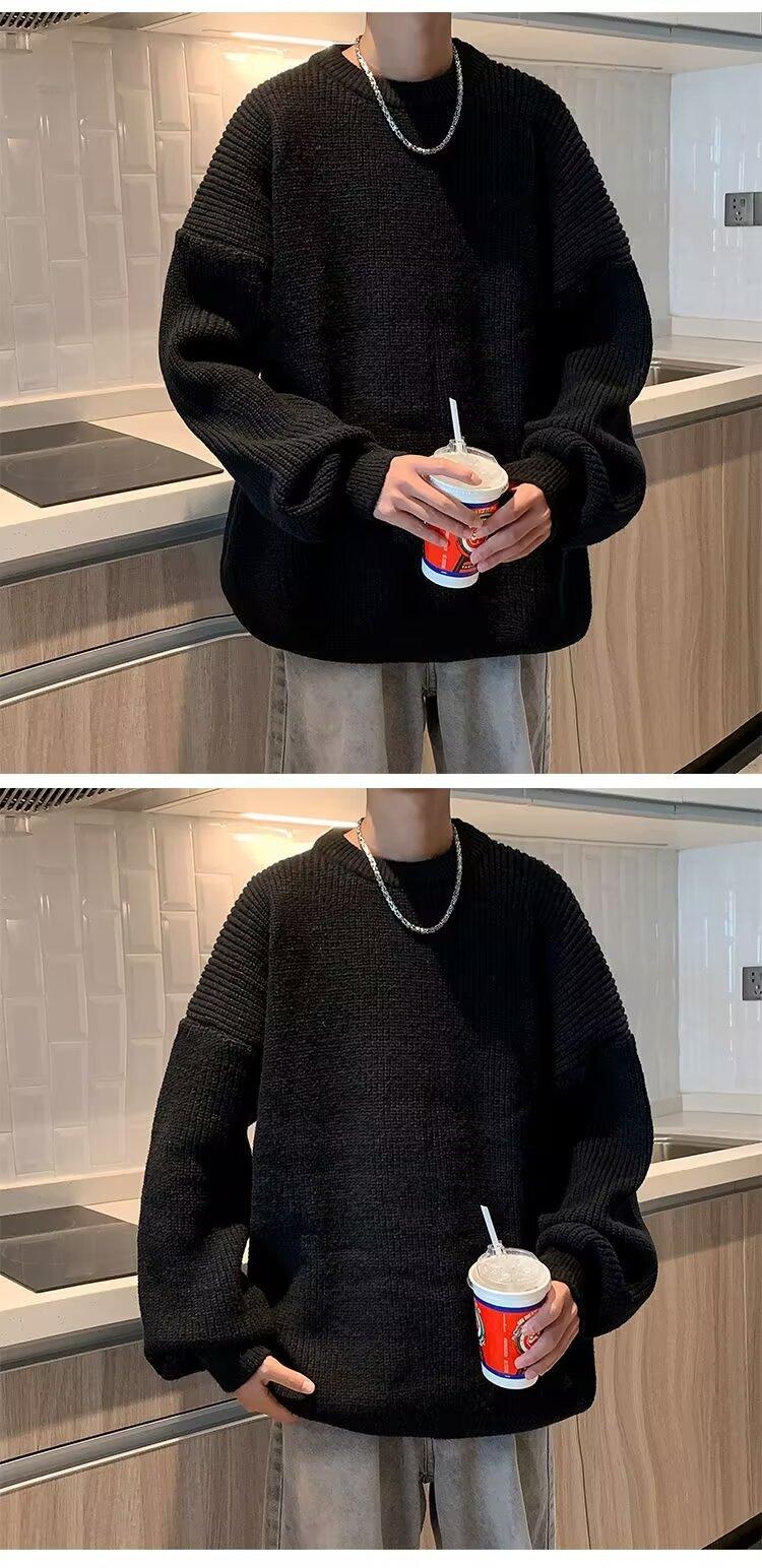 Suéter de Invierno para Hombre Oversize Holgado Estilo Perezoso Tejido para Parejas Jersey Cuello Redondo Color Sólido Suéter Base