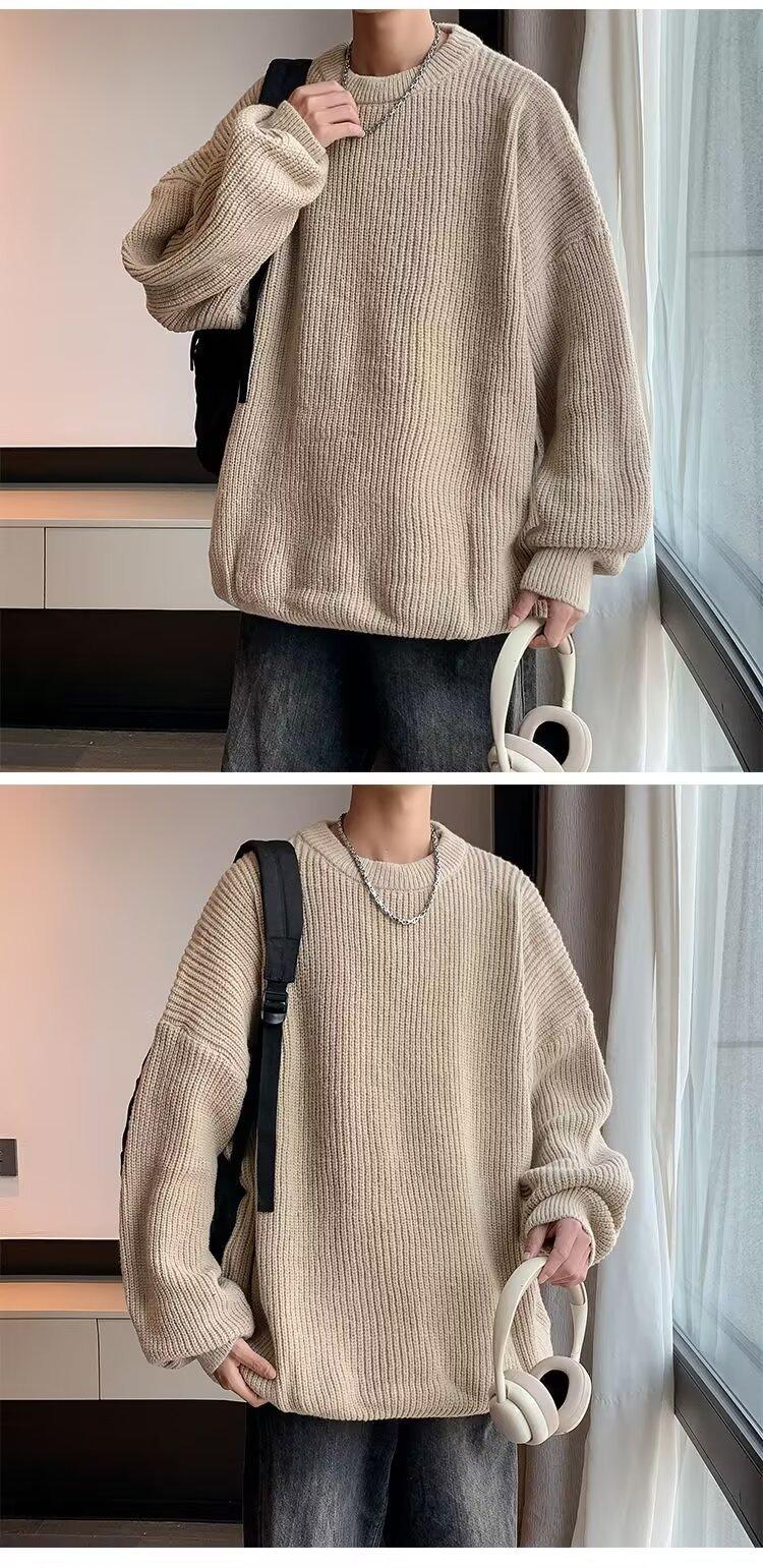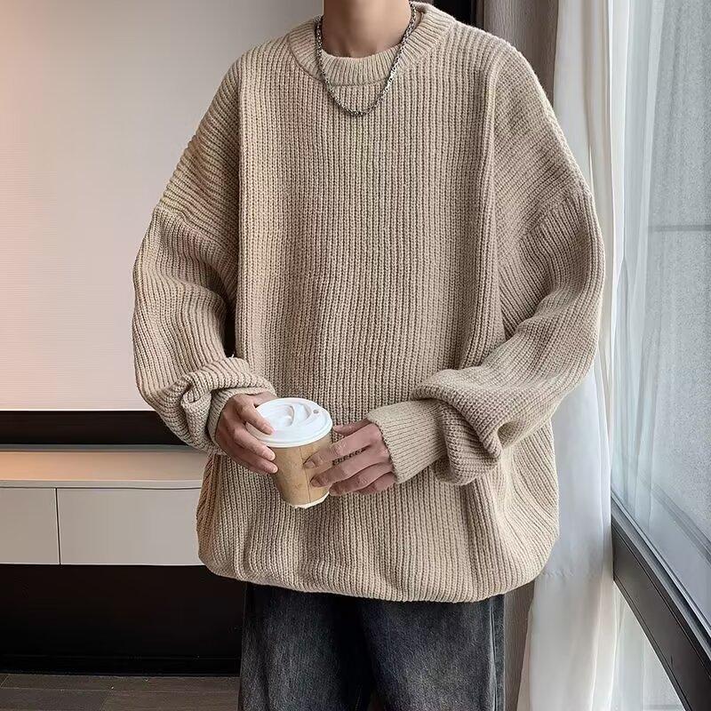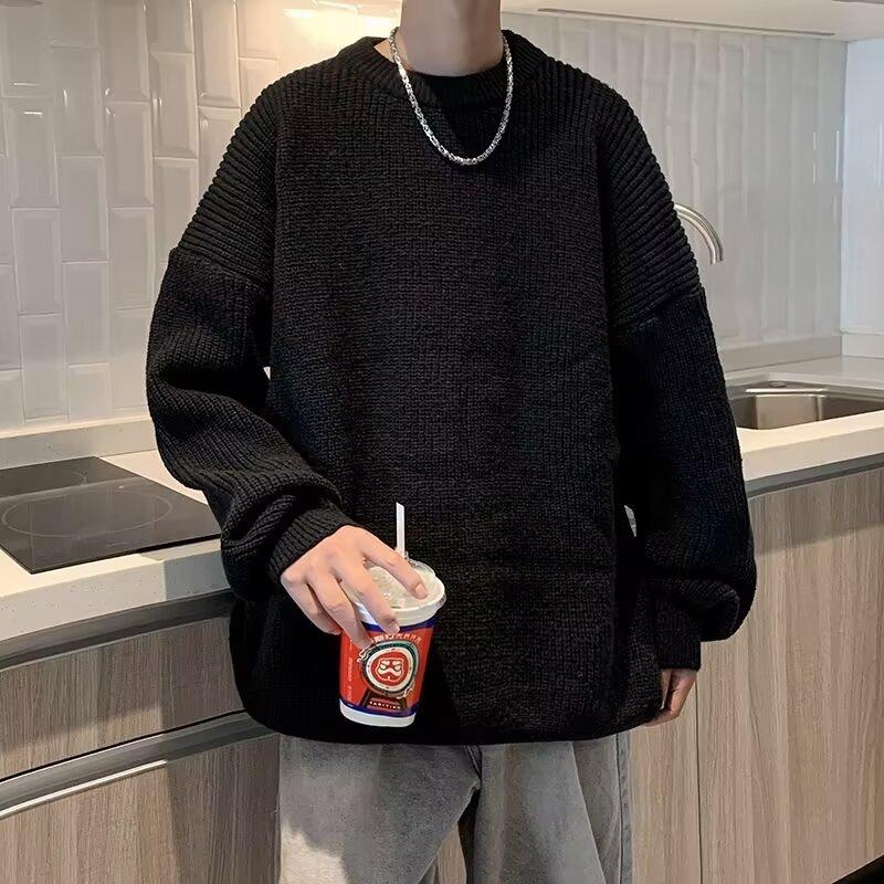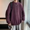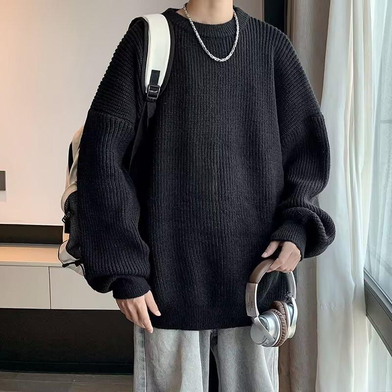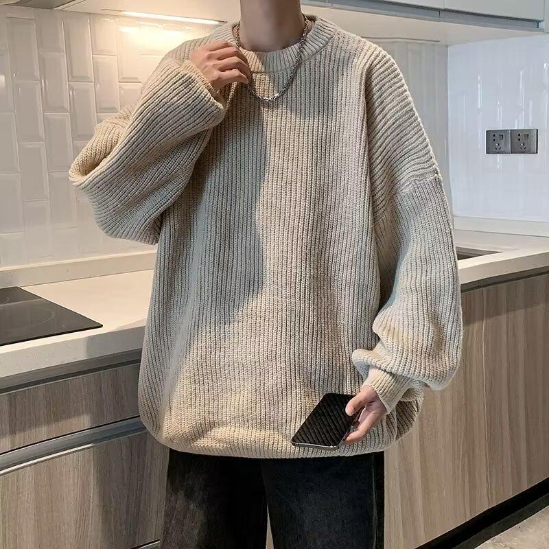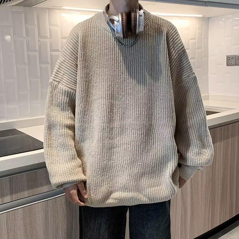 Suéter de Invierno para Hombre Oversize Holgado Estilo Perezoso Tejido para Parejas Jersey Cuello Redondo Color Sólido Suéter Base
