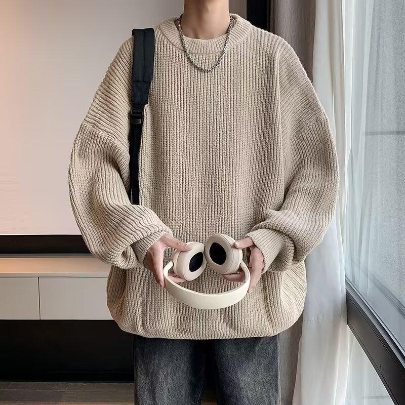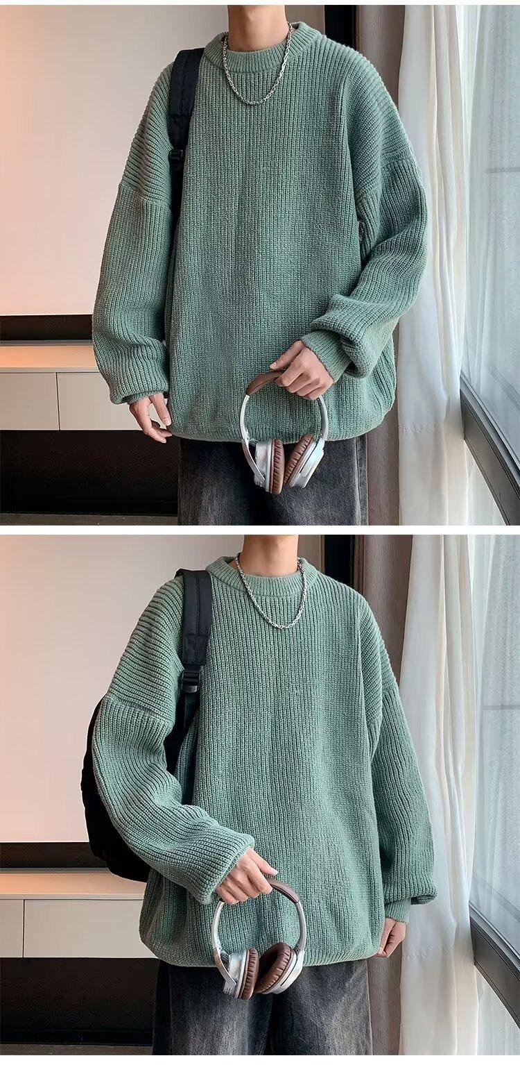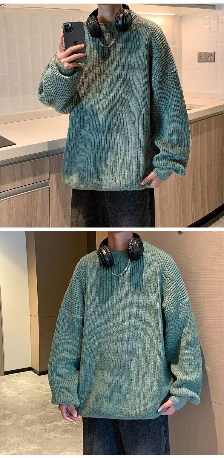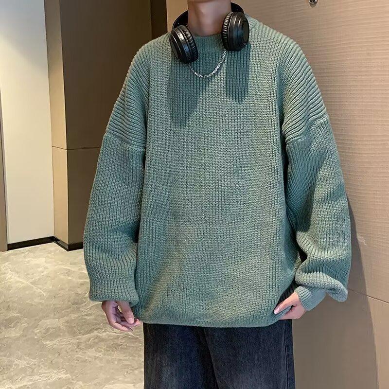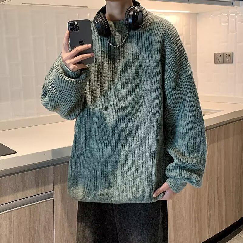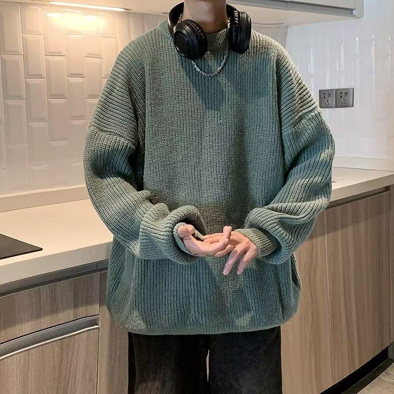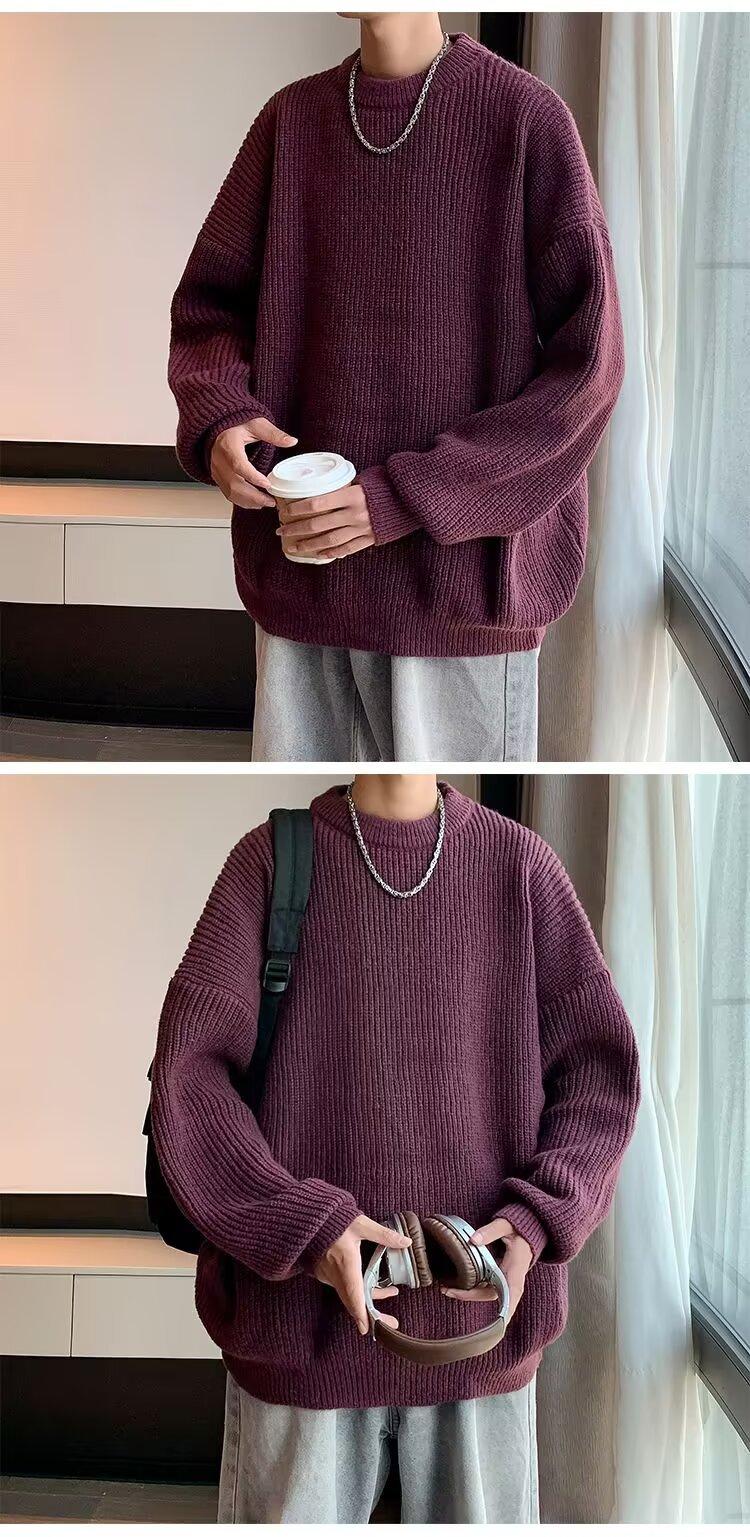 Suéter de Invierno para Hombre Oversize Holgado Estilo Perezoso Tejido para Parejas Jersey Cuello Redondo Color Sólido Suéter Base