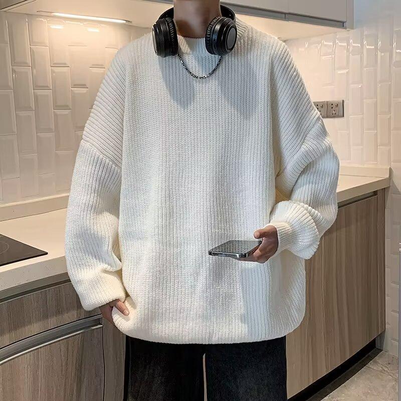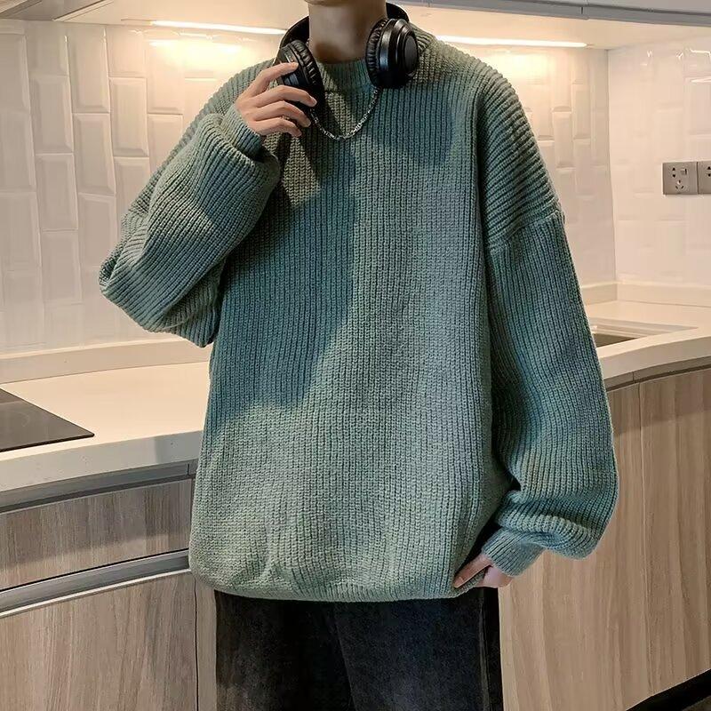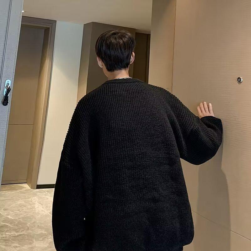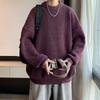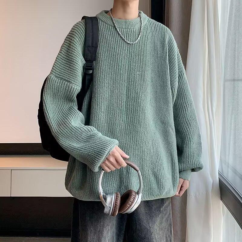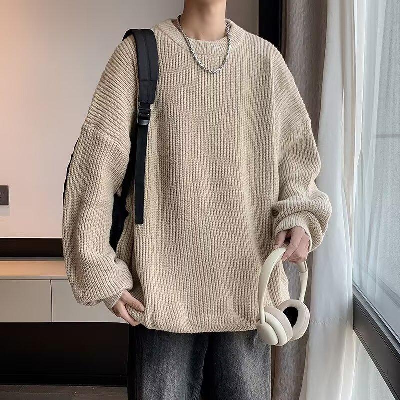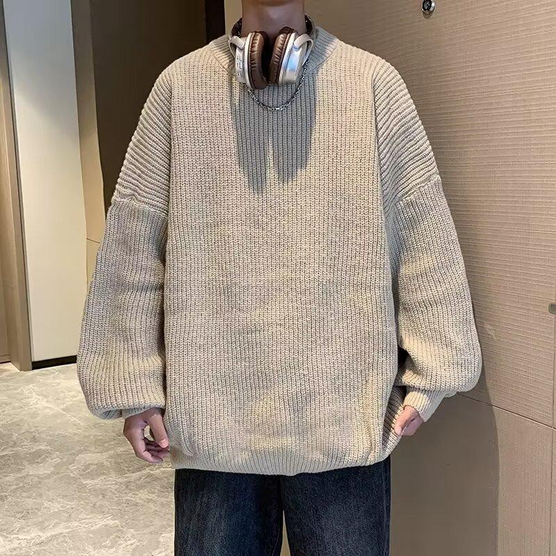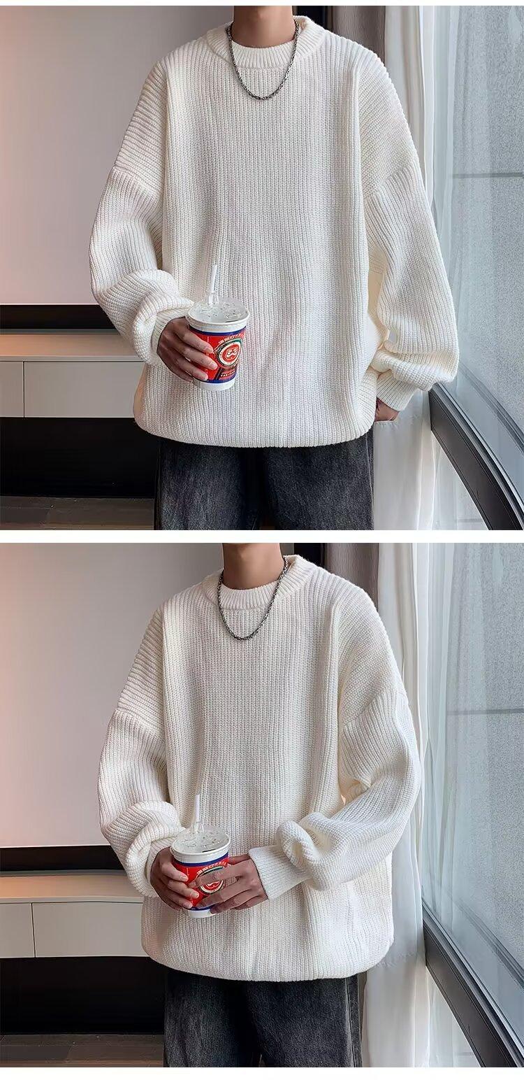 Suéter de Invierno para Hombre Oversize Holgado Estilo Perezoso Tejido para Parejas Jersey Cuello Redondo Color Sólido Suéter Base