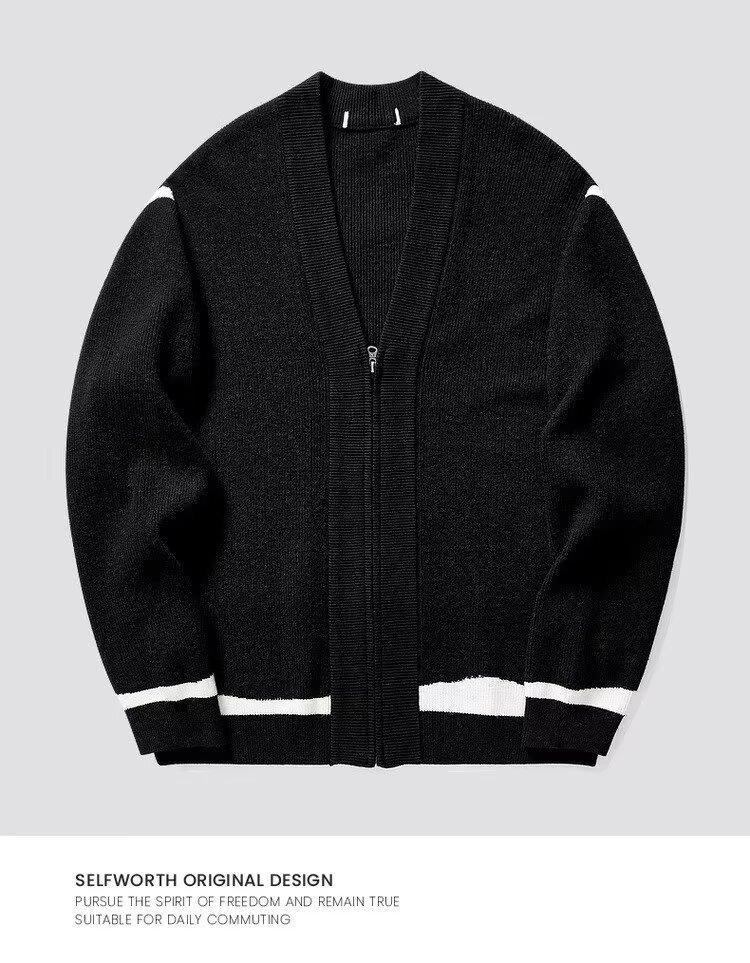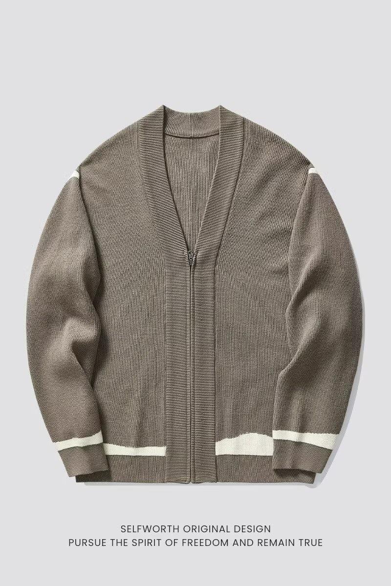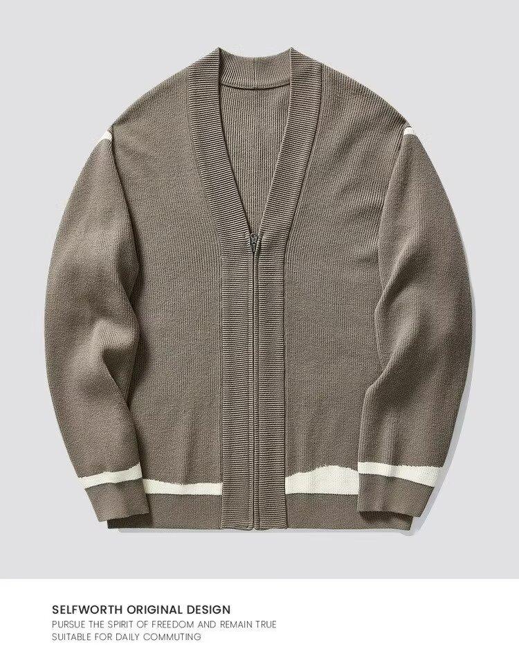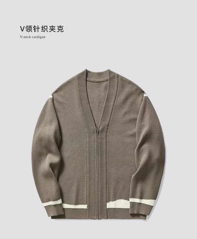Chaqueta tipo cárdigan con cuello en V estilo coreano ligero y maduro para hombre, moda de otoño e invierno, nueva chaqueta tipo suéter informal de corte entallado.