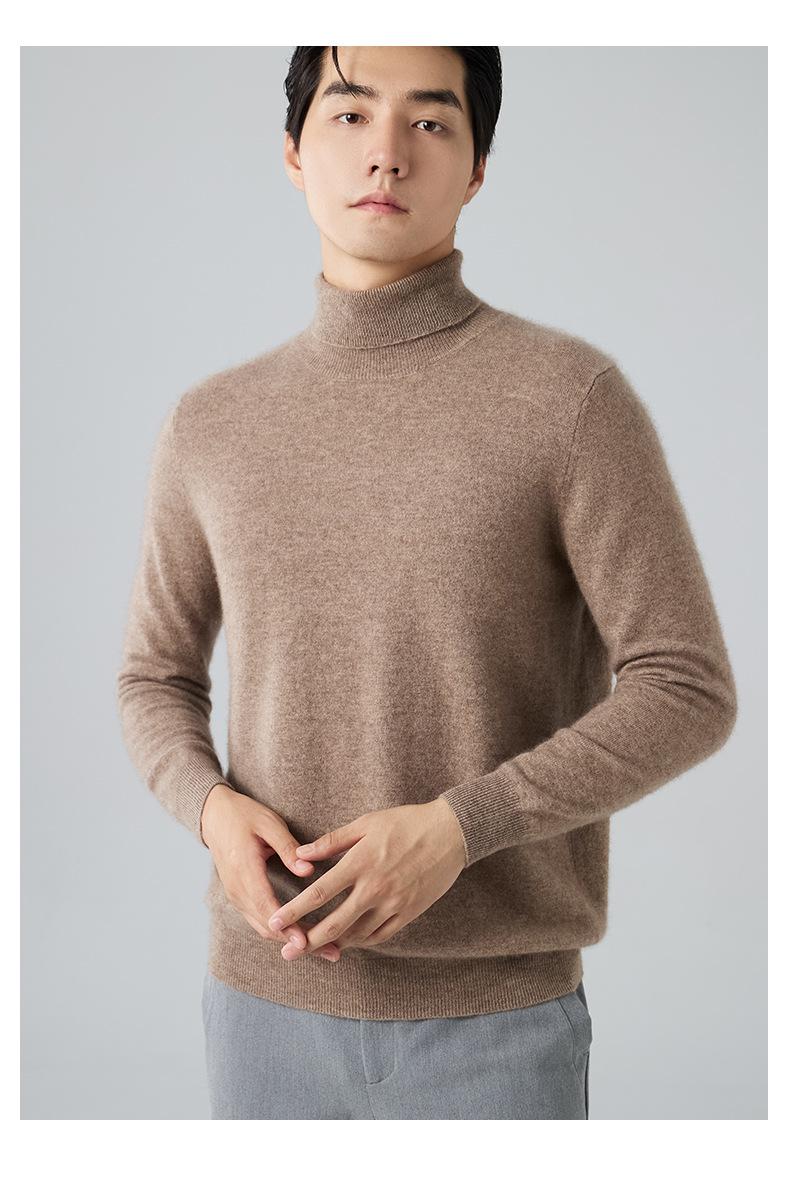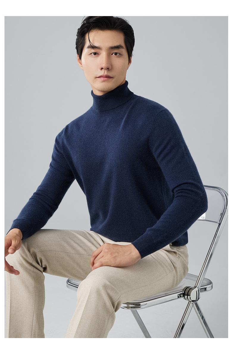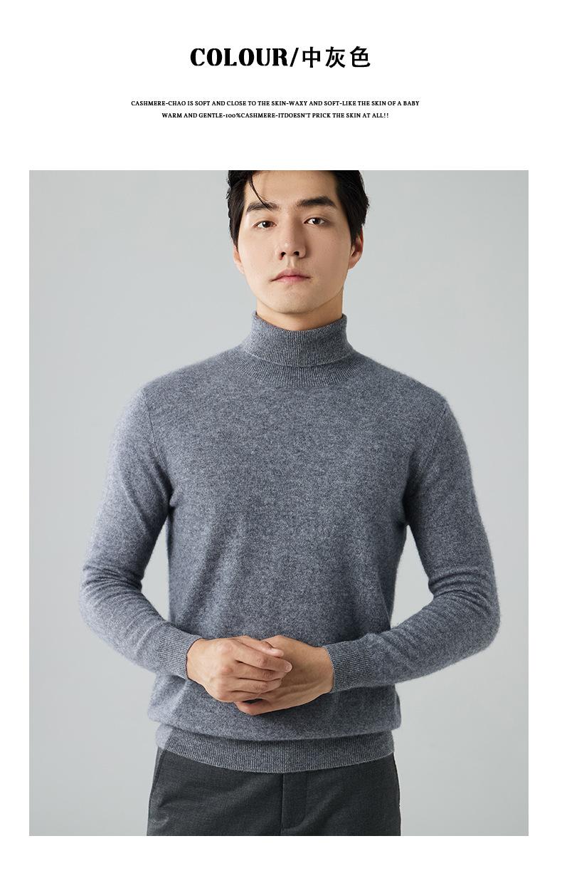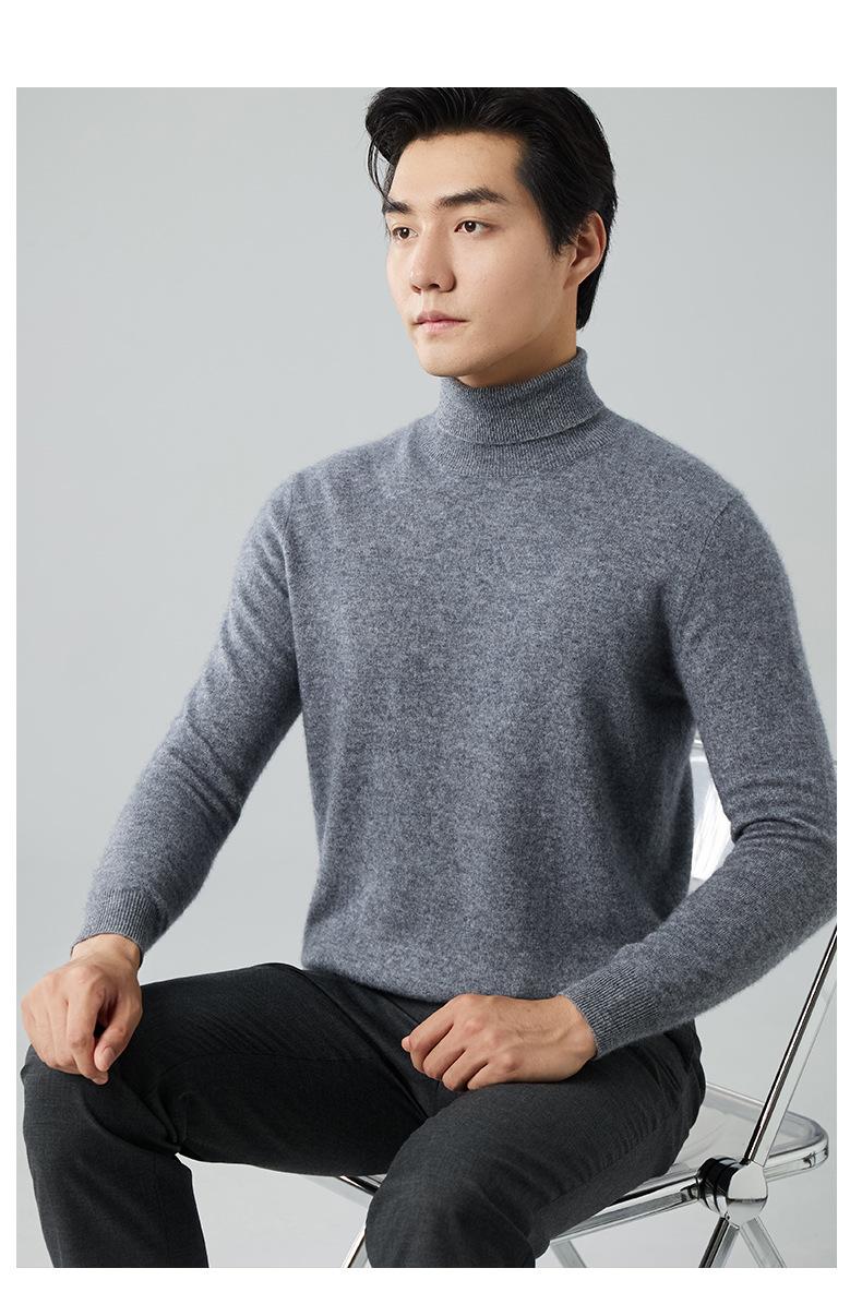 Suéter de cachemira para hombre, cuello alto, invierno, sencillo, suelto, color sólido, manga larga, tejido de punto, talla grande, jersey para hombre