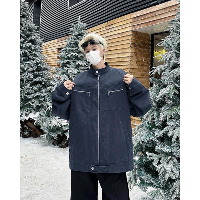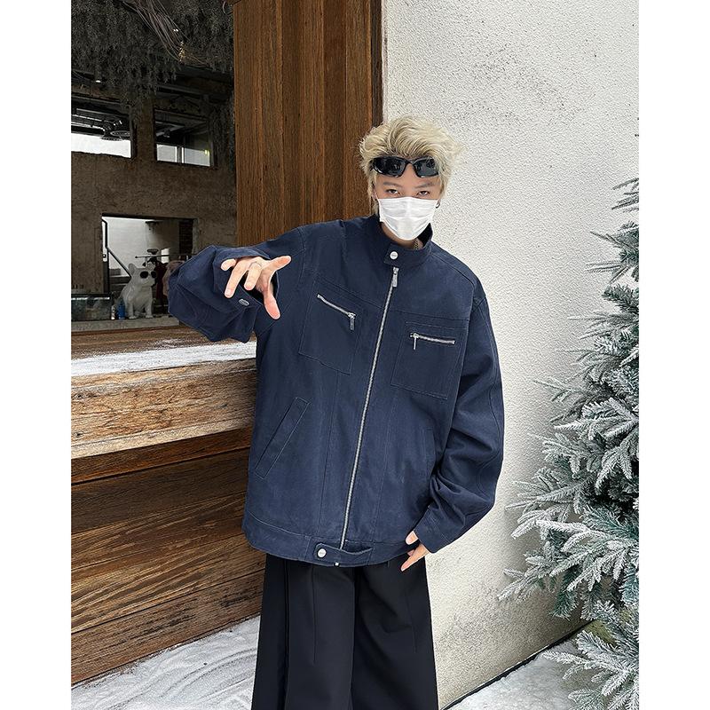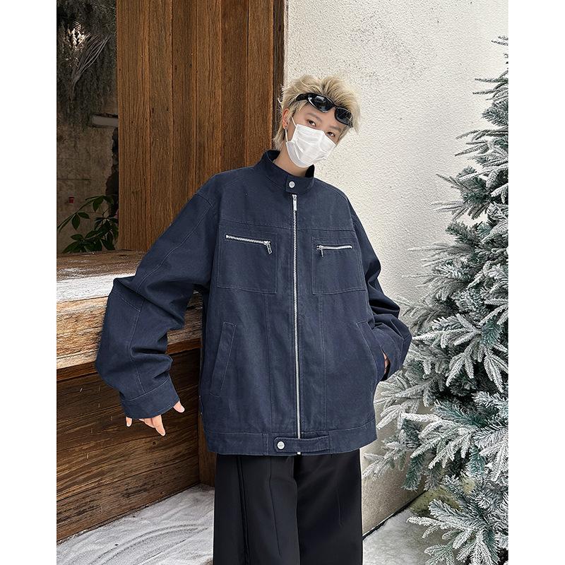 2024 Nuevo Estilo Cuello Vertical Análisis Ropa de Trabajo Chaqueta de Mezclilla para Hombre Otoño e Invierno Nuevo Estilo Americano Retro Lavado Chaqueta Top