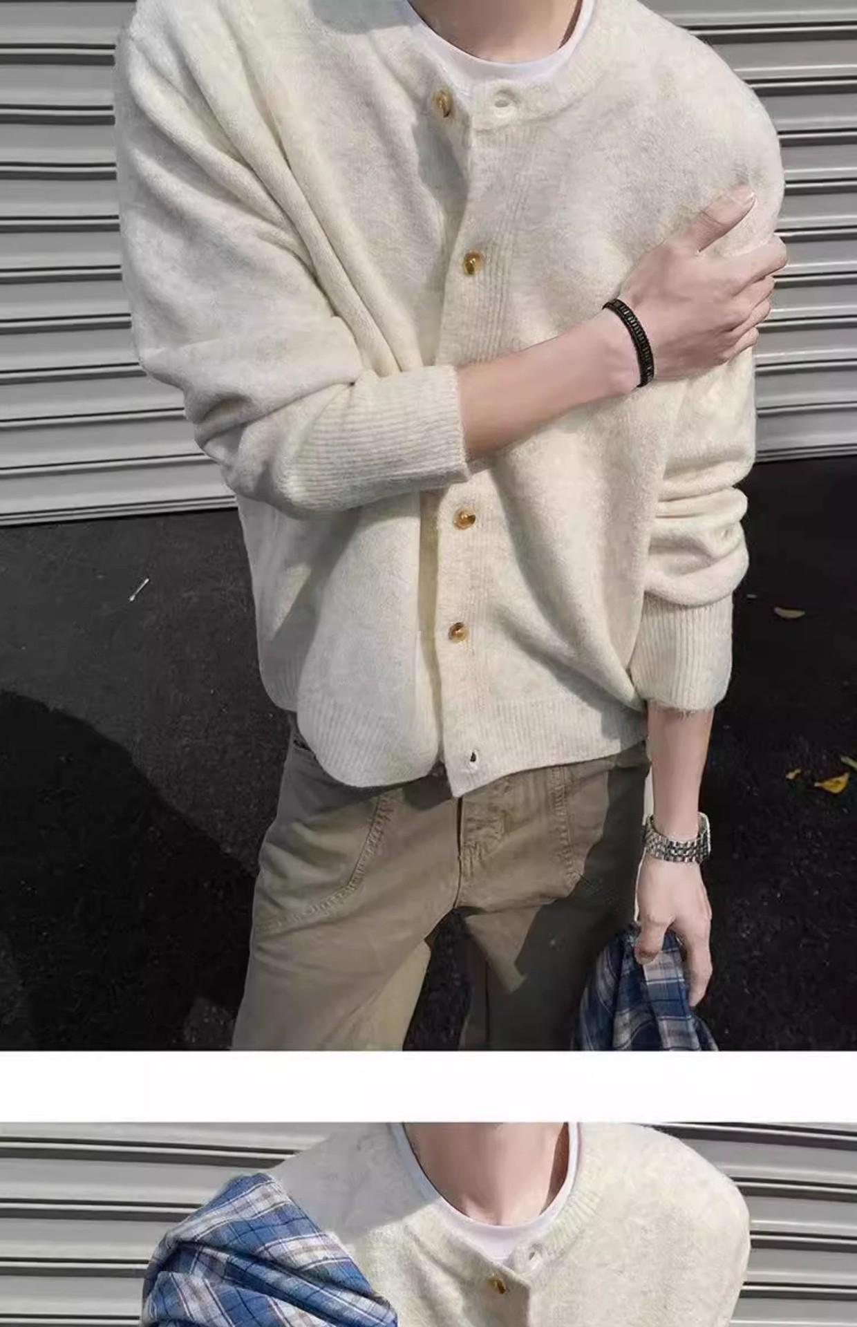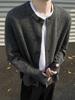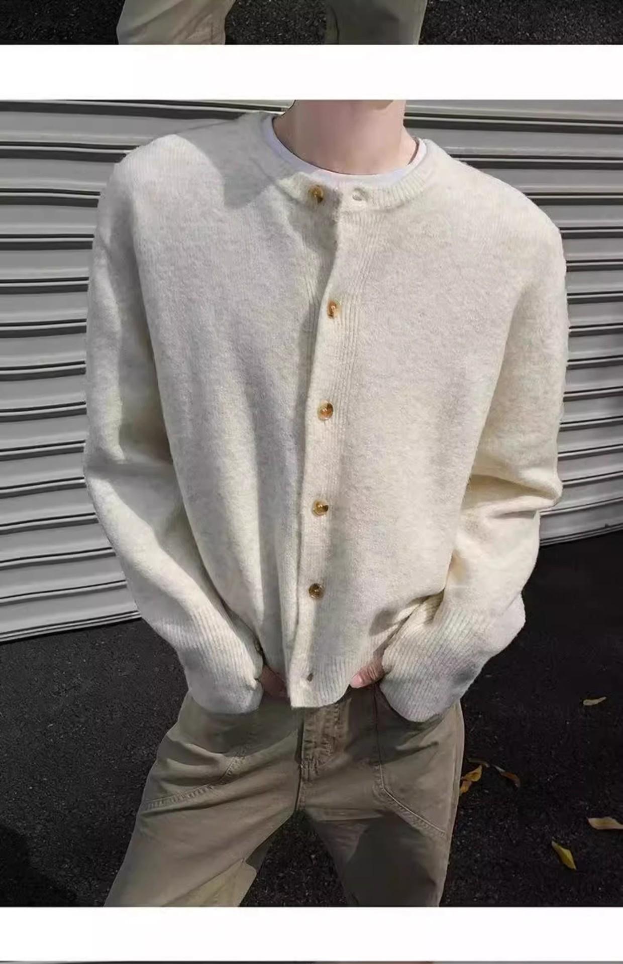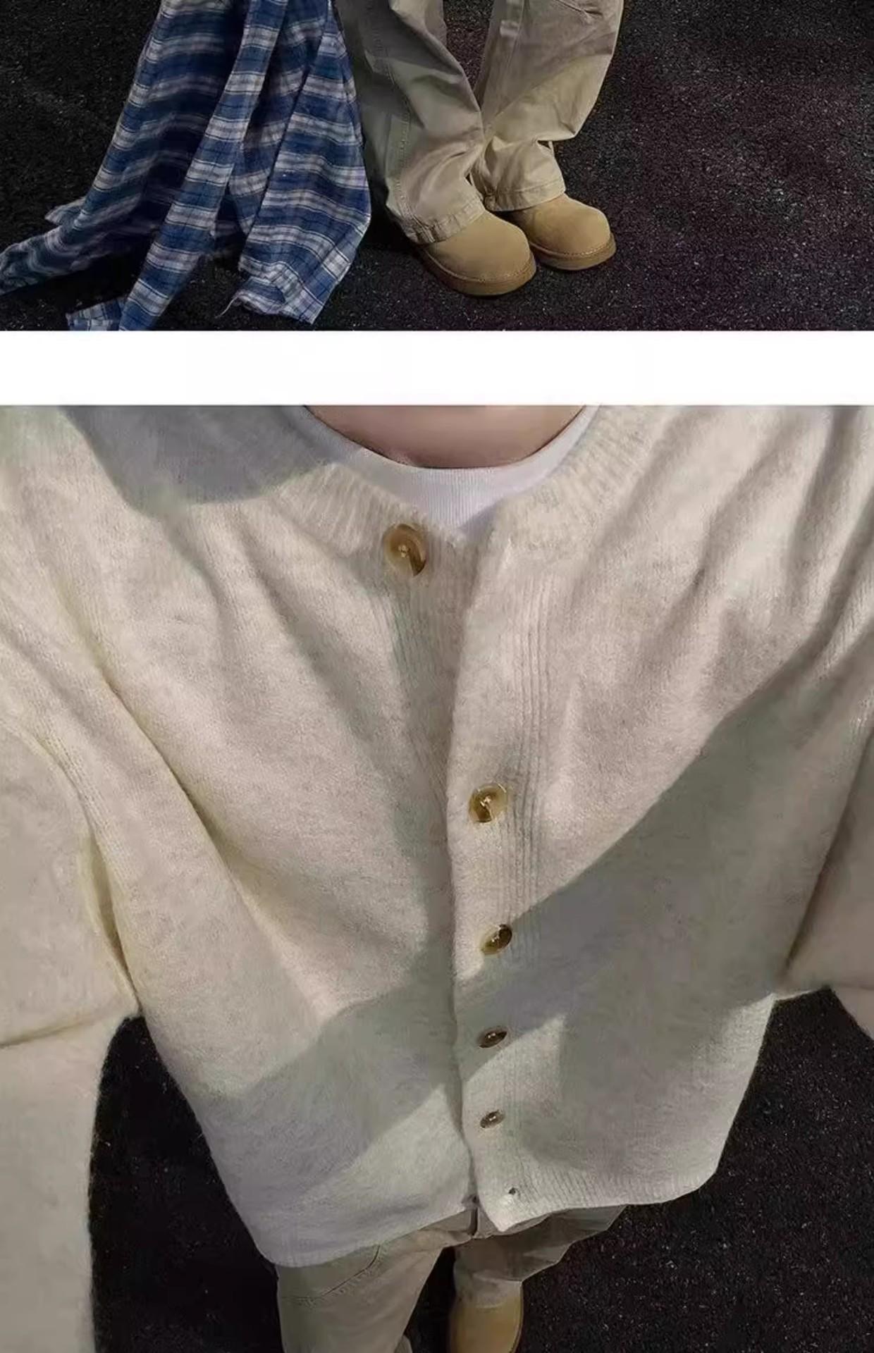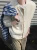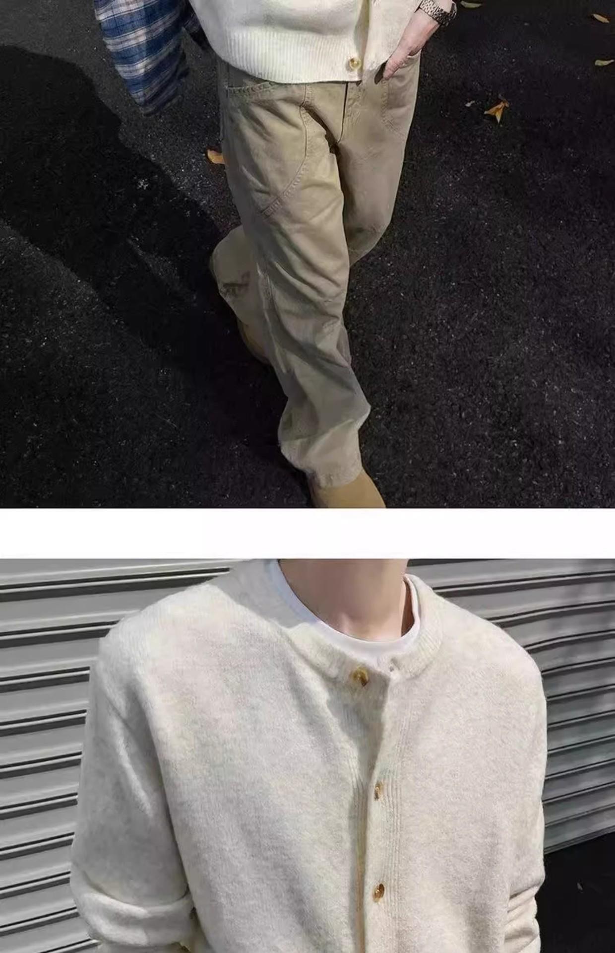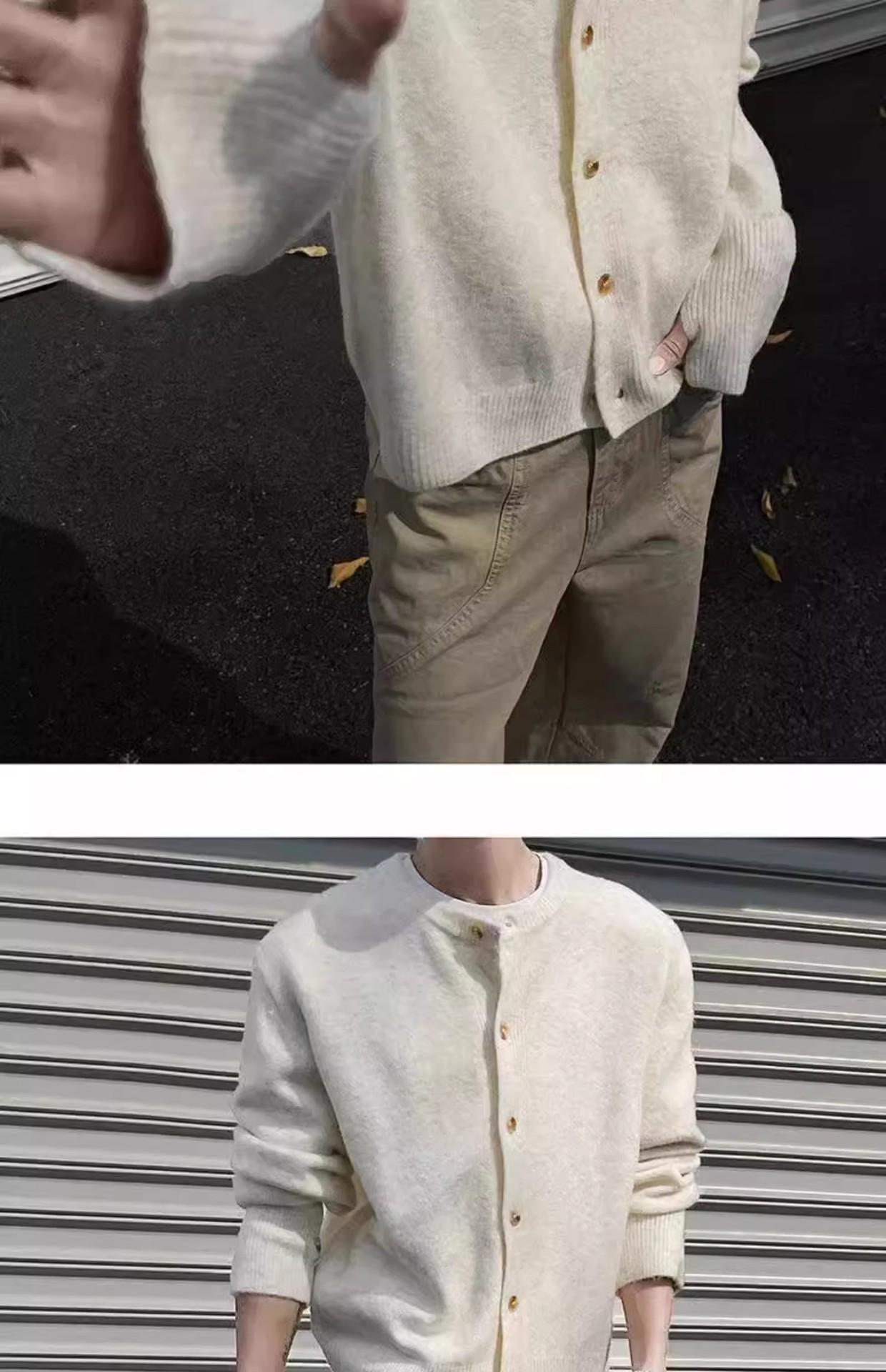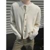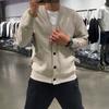 Cleanfit cárdigan de punto color blanco crema con doble botonadura para hombre otoño e invierno estilo americano estilo holgazán avanzado chaqueta de suéter pesado