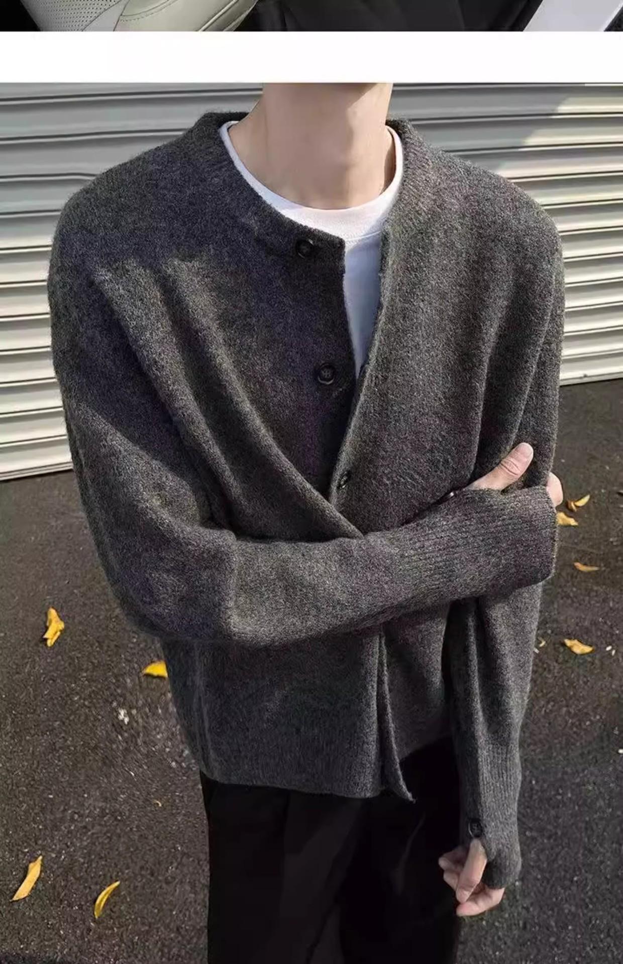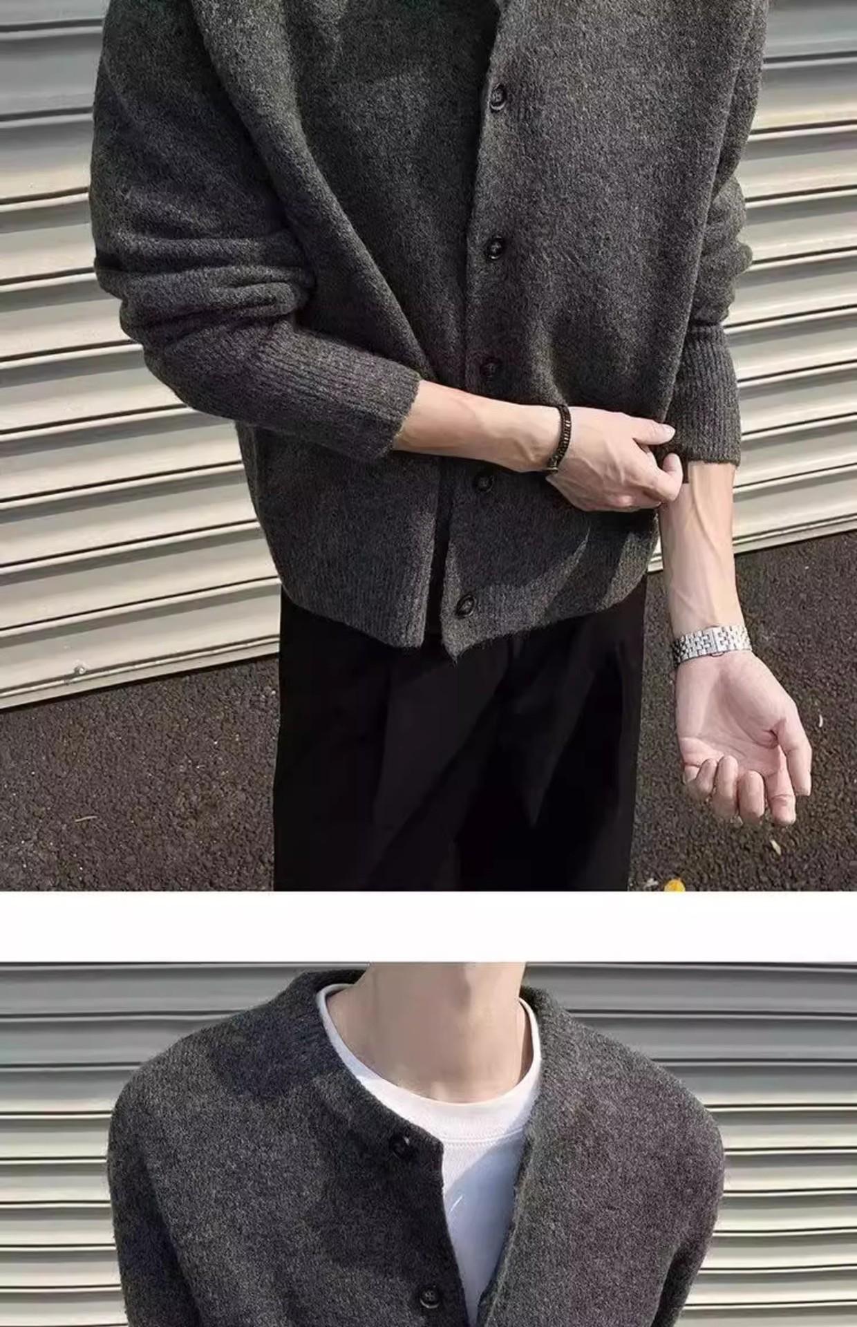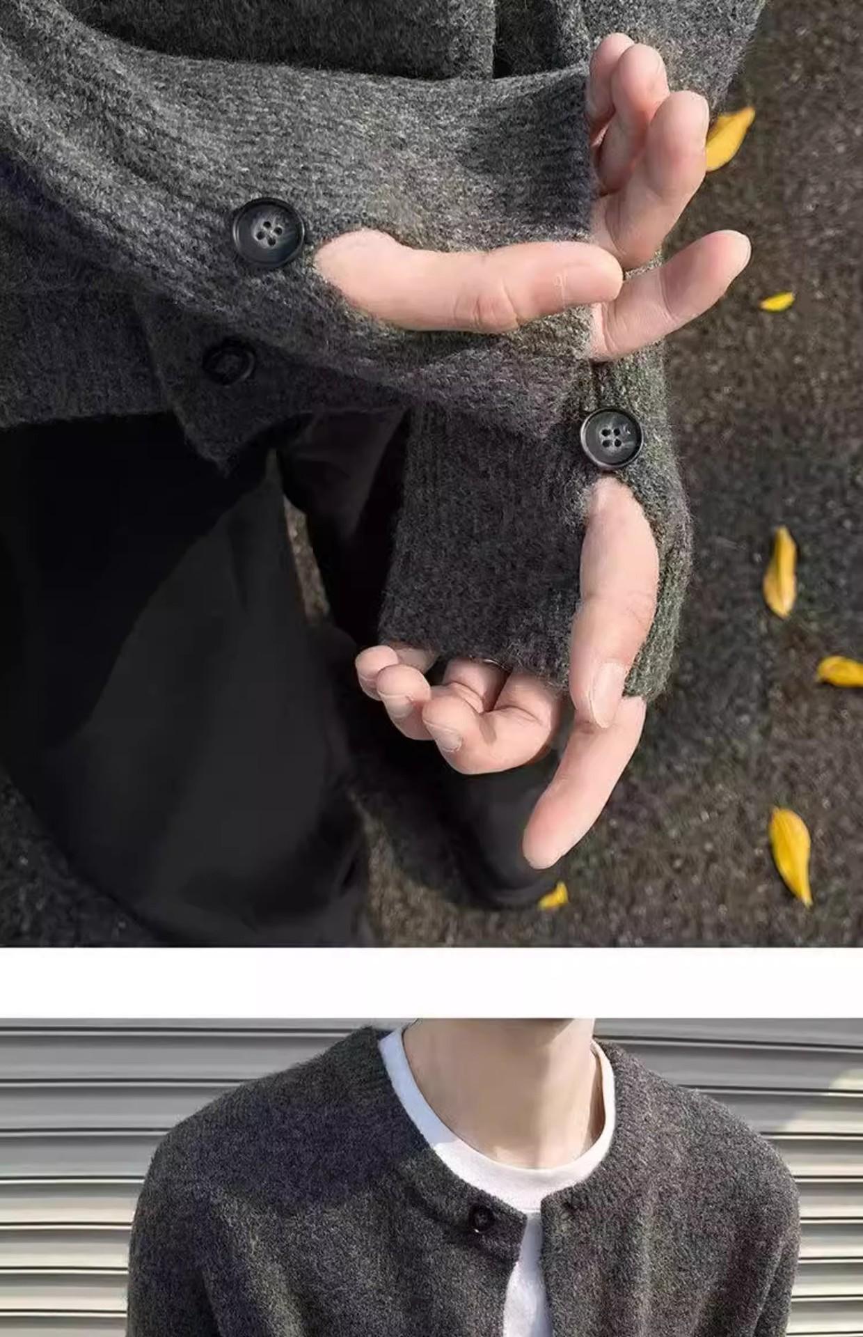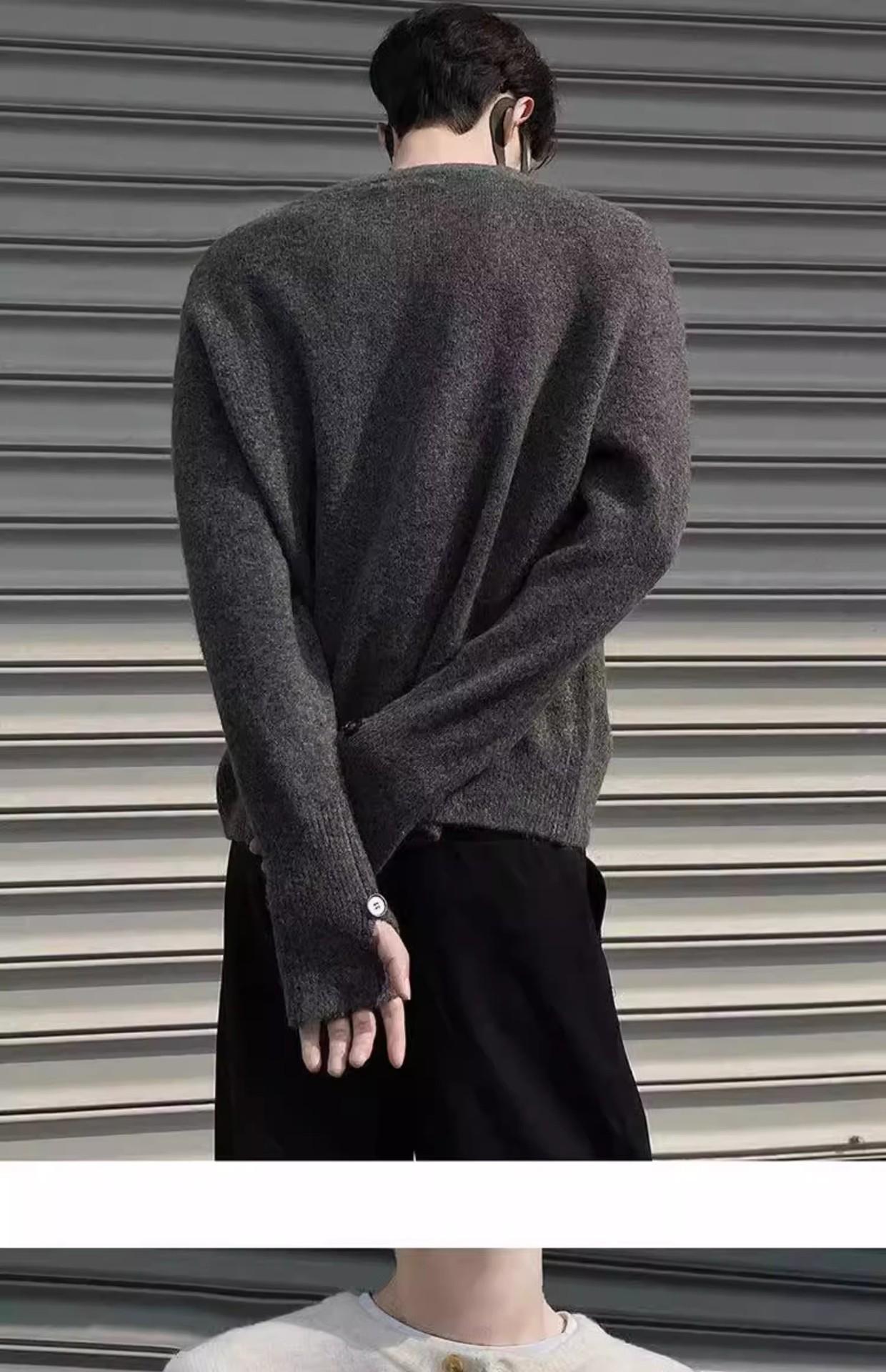 Cleanfit cárdigan de punto color blanco crema con doble botonadura para hombre otoño e invierno estilo americano estilo holgazán avanzado chaqueta de suéter pesado