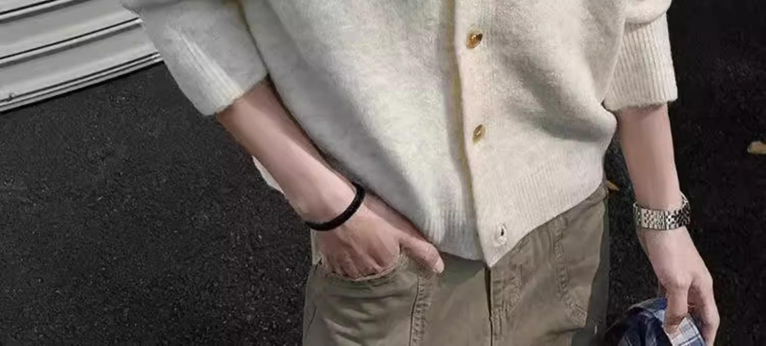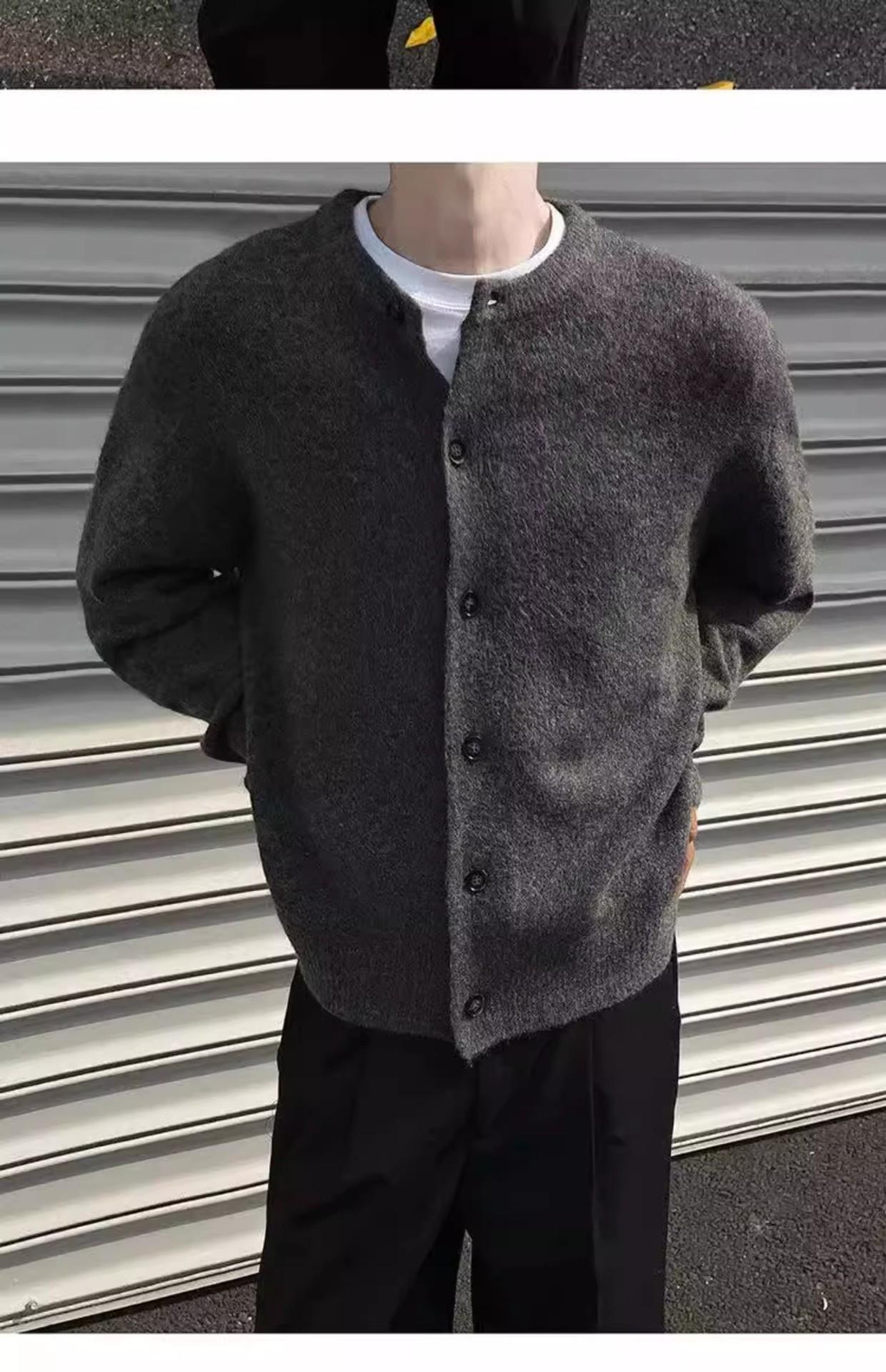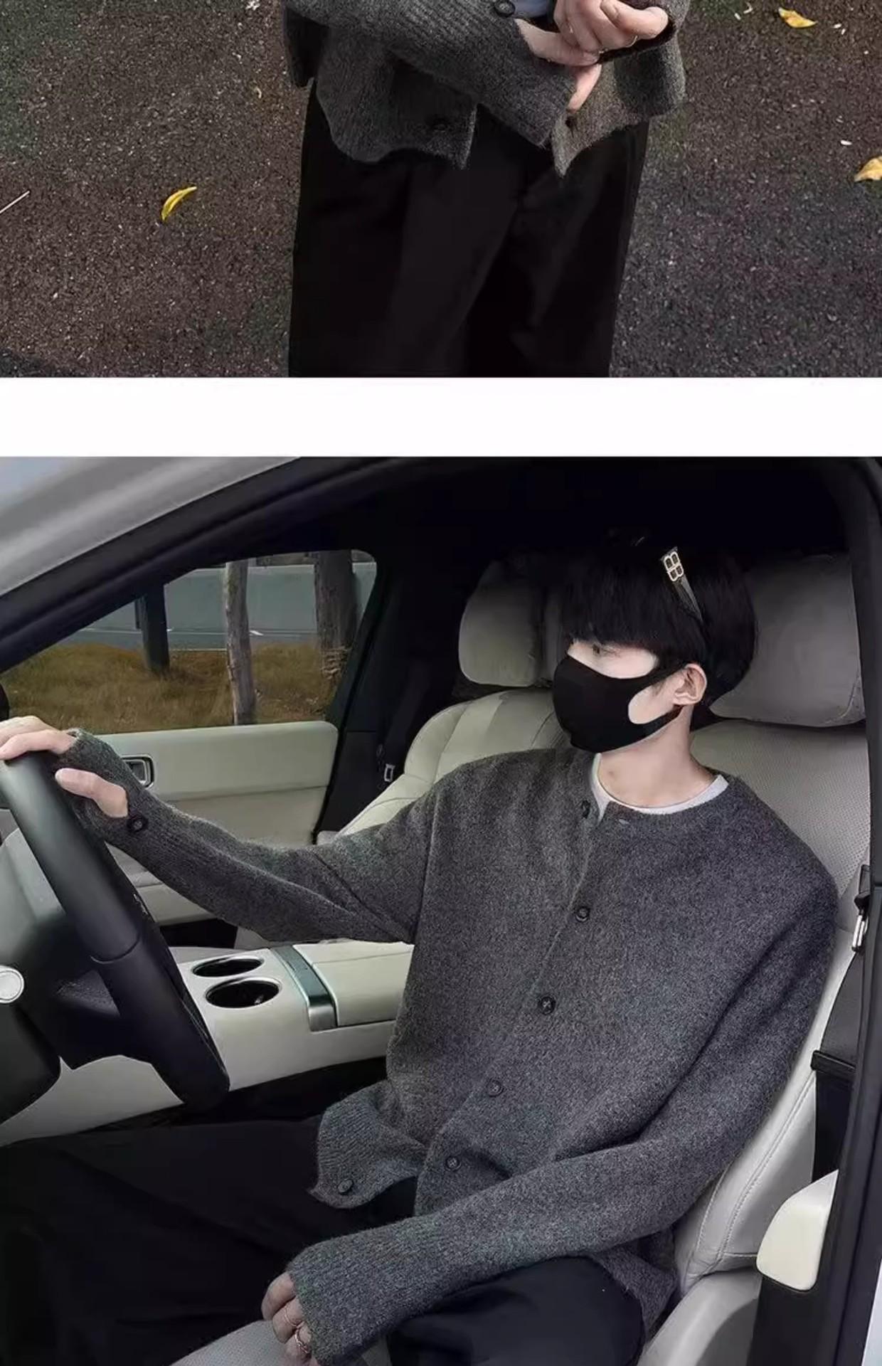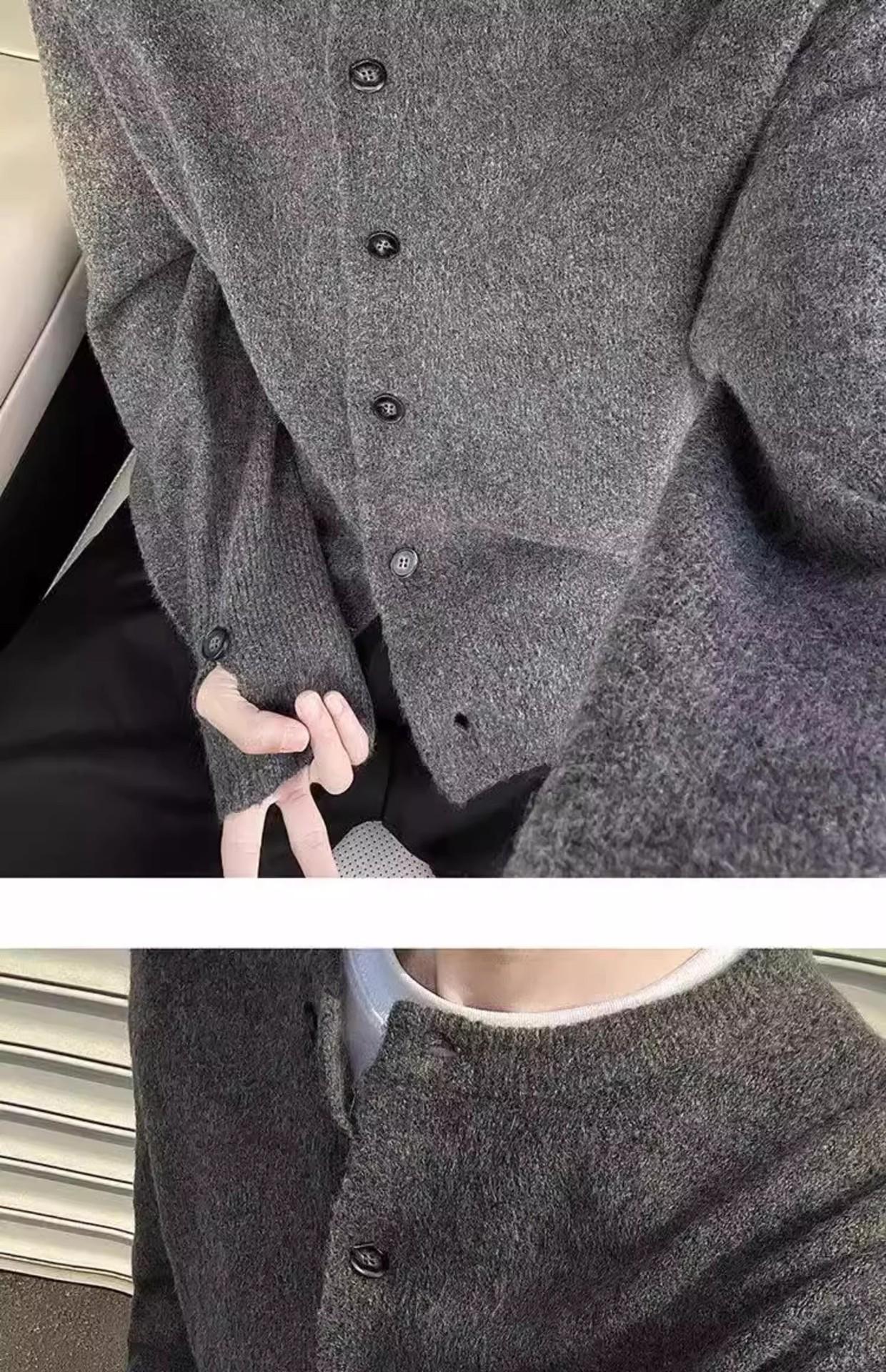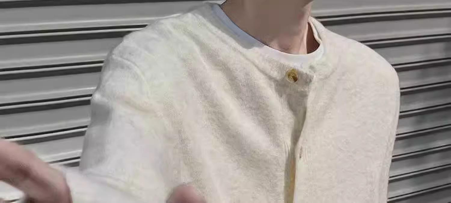 Cleanfit cárdigan de punto color blanco crema con doble botonadura para hombre otoño e invierno estilo americano estilo holgazán avanzado chaqueta de suéter pesado