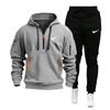 Sudadera con capucha para hombre, nueva moda de otoño e invierno, traje informal para hombre, marca de moda, cremallera, multibolsillos, traje de terciopelo.