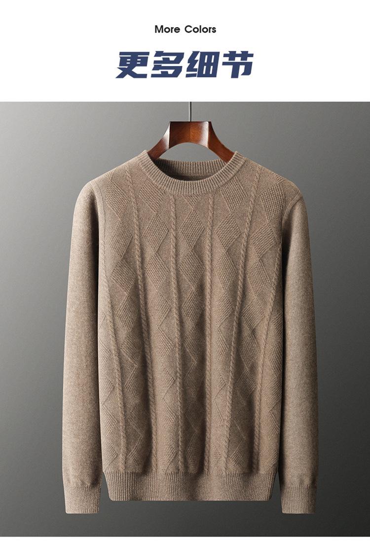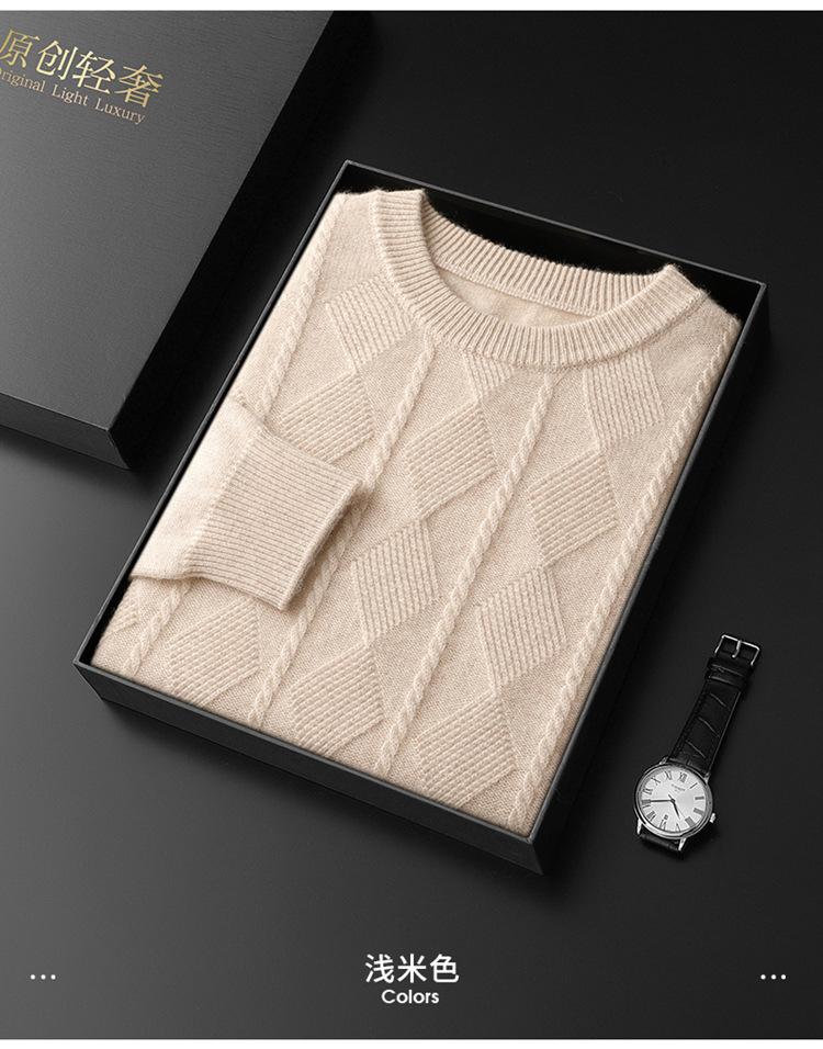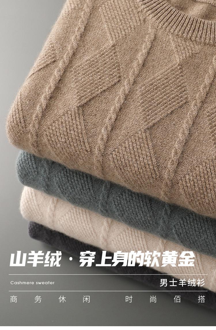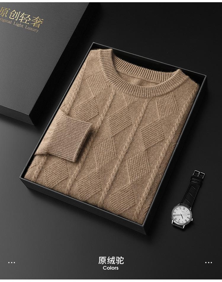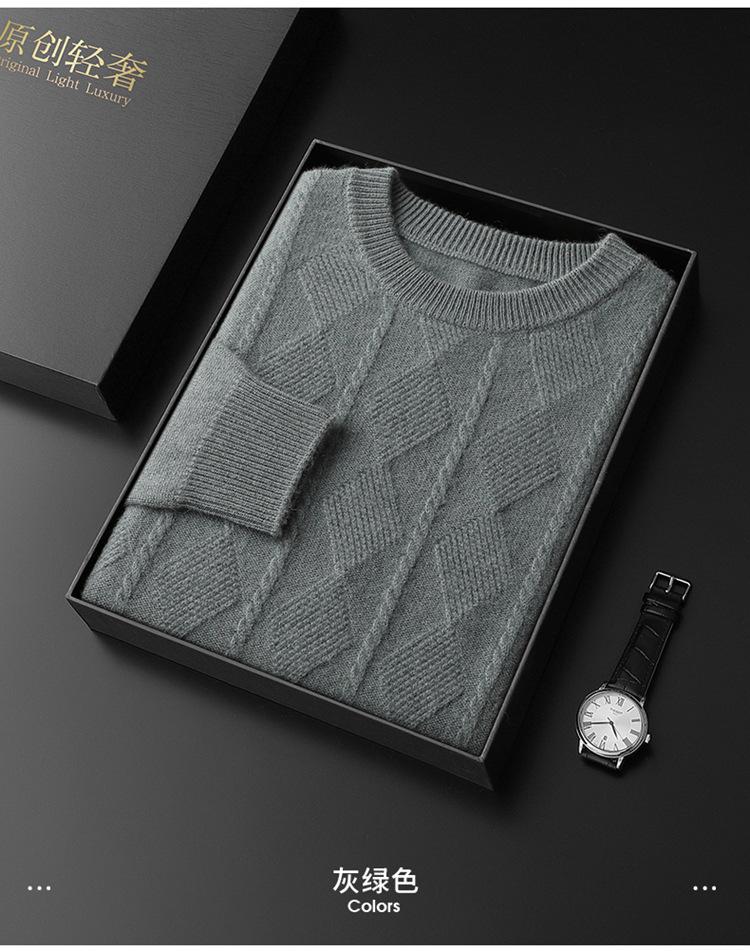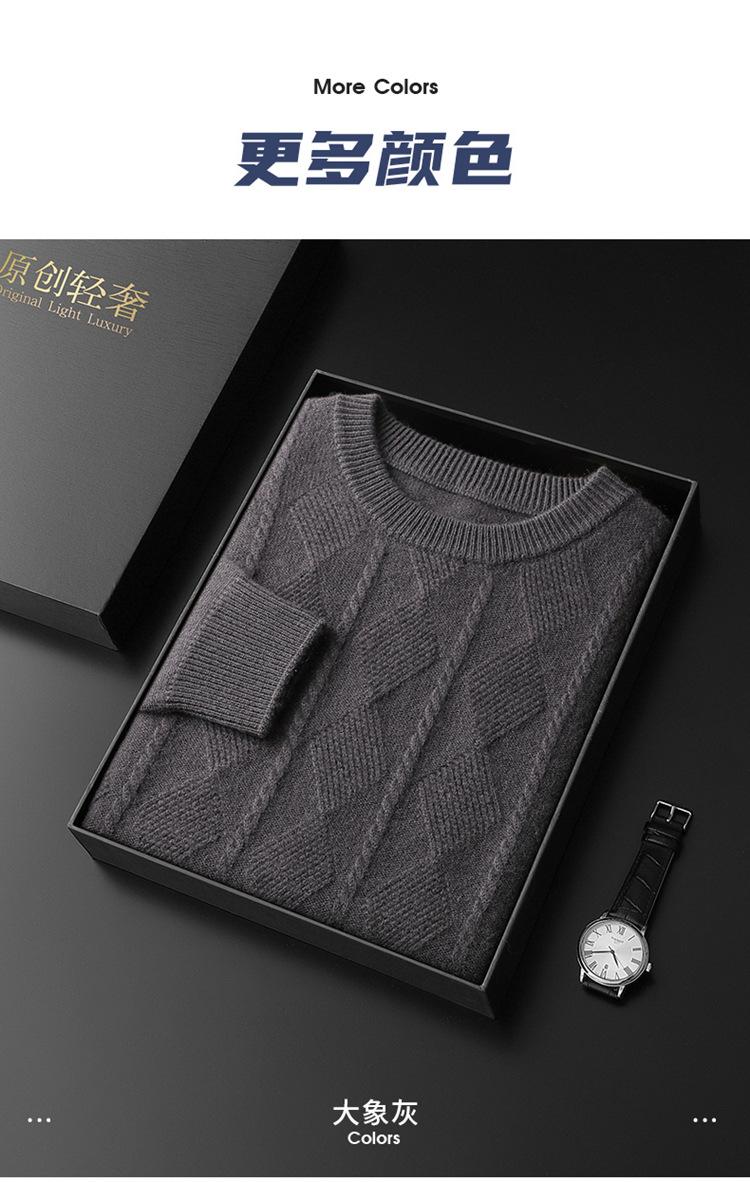 Otoño e Invierno Nuevo Suéter de Cachemira de Montaña Grueso de Doble Hilo para Hombre Cuello Redondo Suéter de Negocios Jacquard Corte Ajustado Suéter Base
