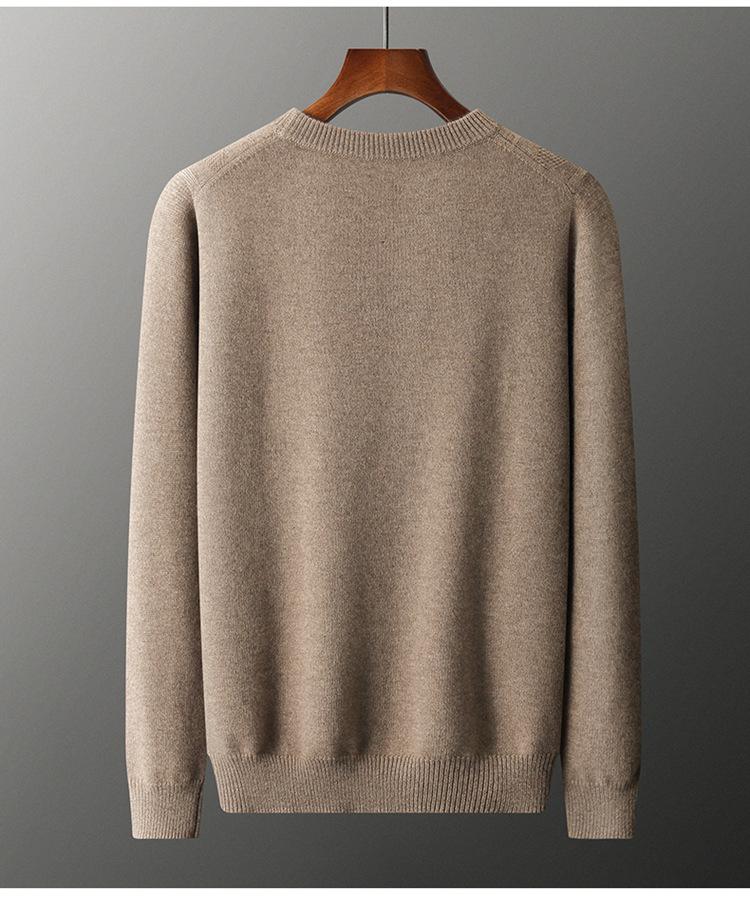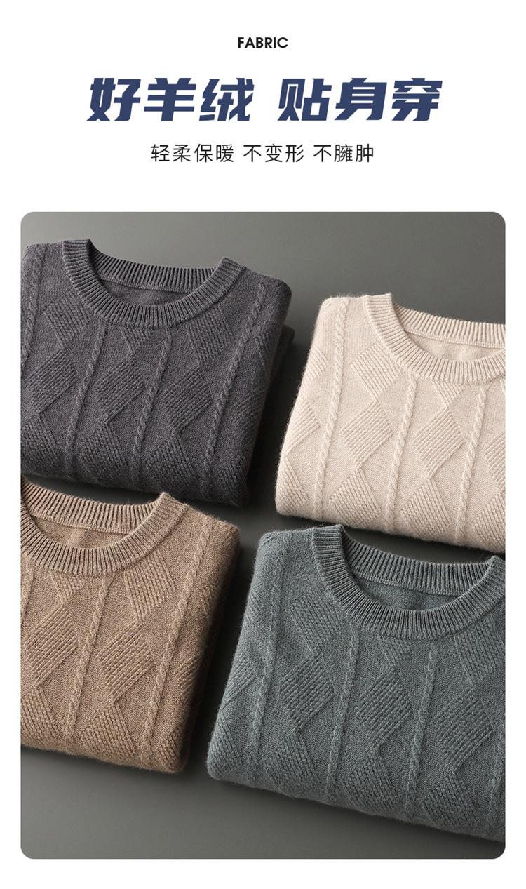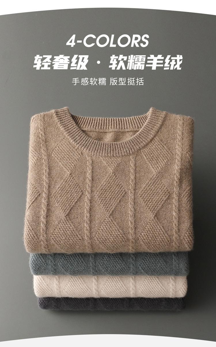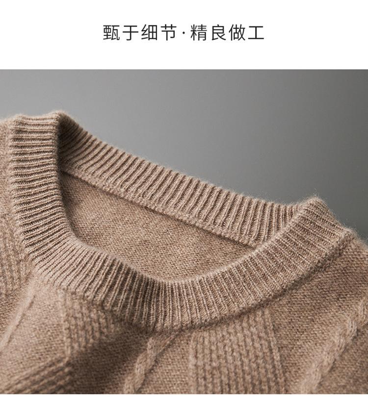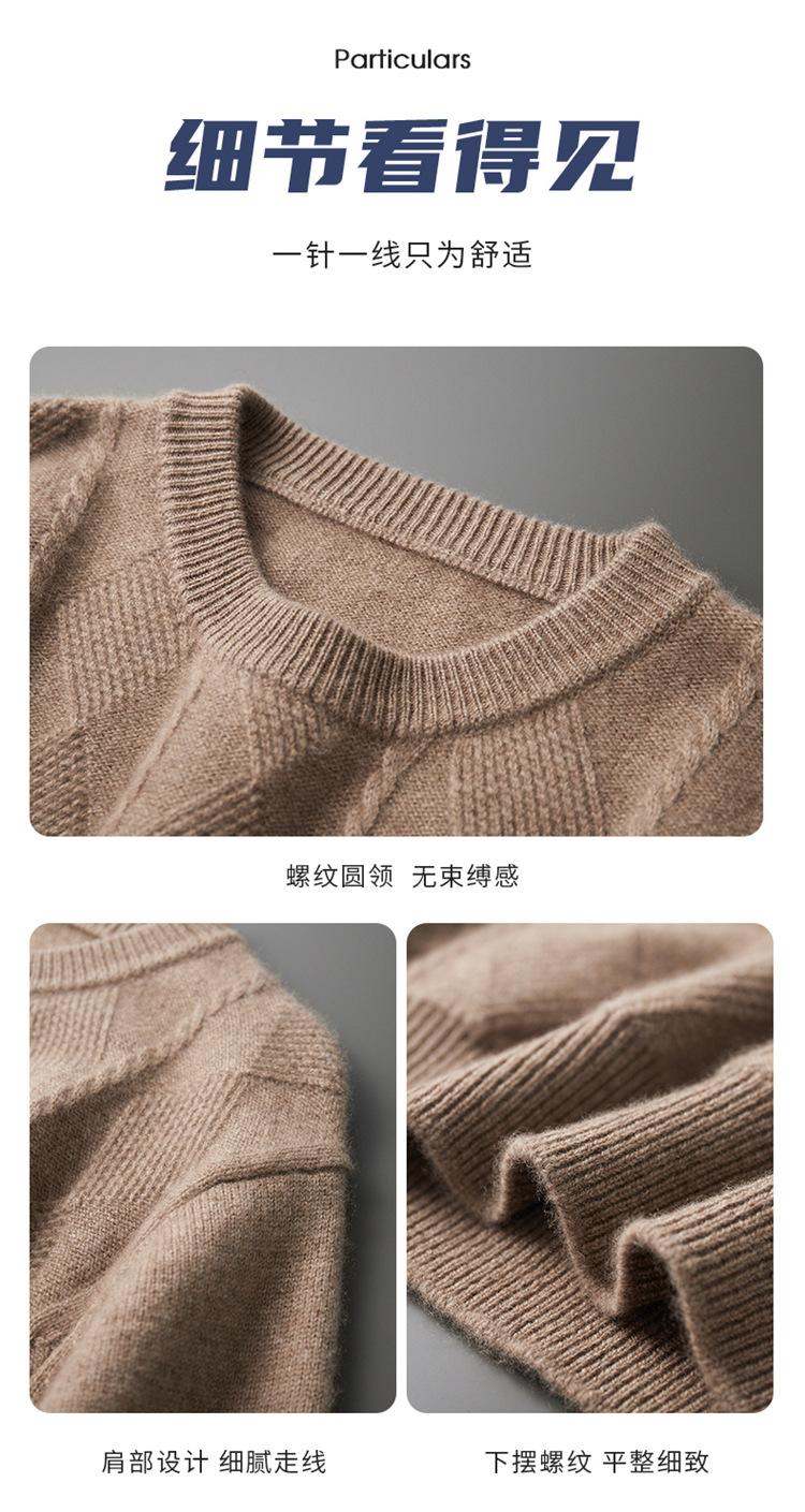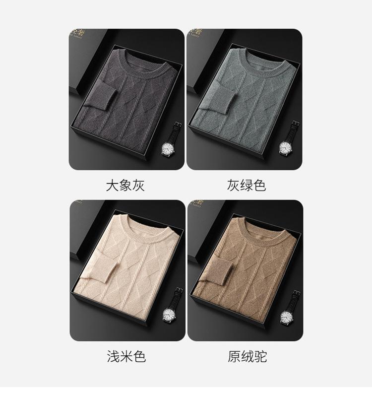 Otoño e Invierno Nuevo Suéter de Cachemira de Montaña Grueso de Doble Hilo para Hombre Cuello Redondo Suéter de Negocios Jacquard Corte Ajustado Suéter Base