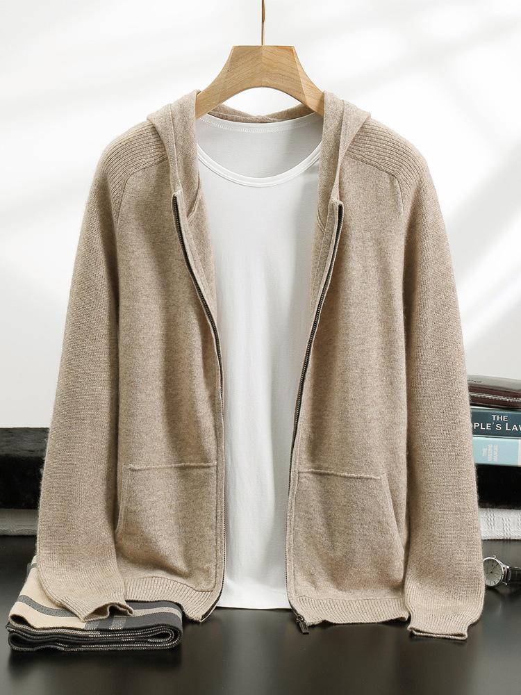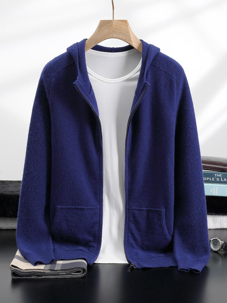 Nuevo traje deportivo casual de cachemira gruesa para hombre, suéter con capucha, suéter de cachemira, cárdigan de punto con cremallera, pantalones holgados