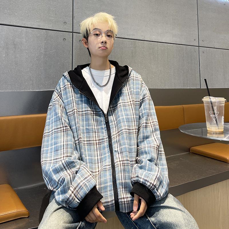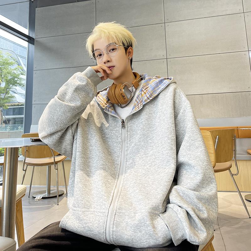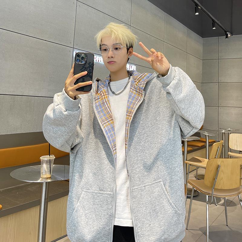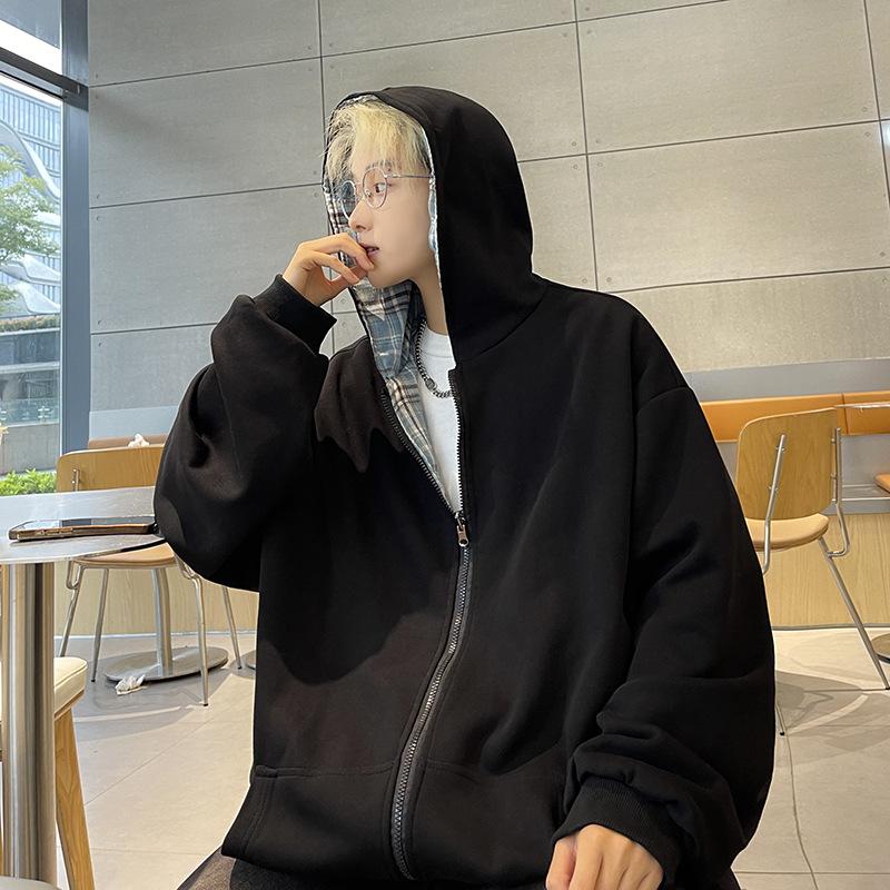 Suéter tipo cárdigan de doble cara para hombre, chaqueta holgada informal con cremallera, estilo americano, con capucha, estilo deportivo de calle, de marca moderna, para primavera y otoño