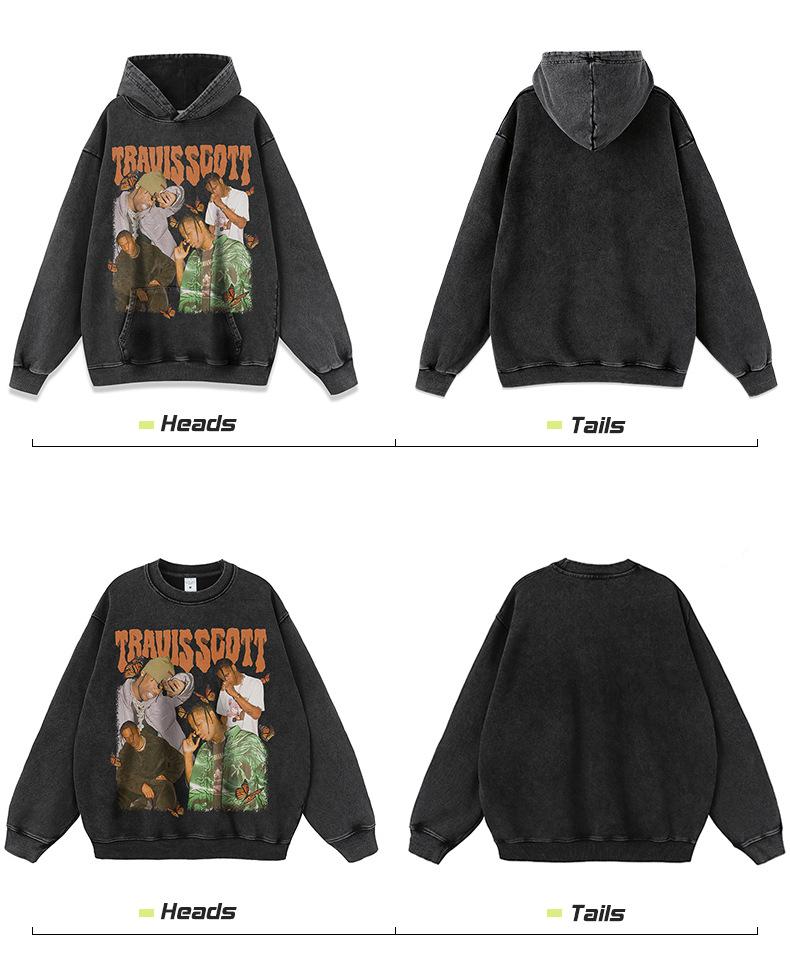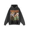Suéter con capucha desgastado y lavado, estilo americano, de marca de moda de calle, vintage, estampado, para hombre, estilo relajado, holgado, de manga larga.
