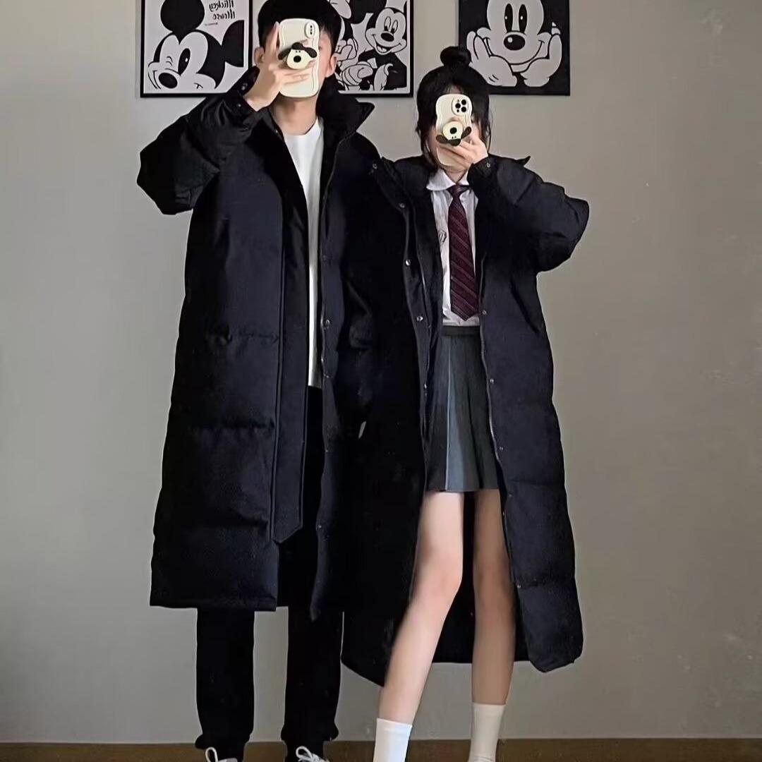 Chaqueta acolchada de algodón para pareja 2024 invierno nueva versión coreana de simple holgada larga hasta la rodilla oversize ropa pan ins ropa acolchada de algodón