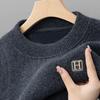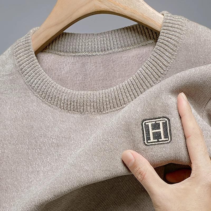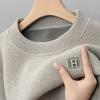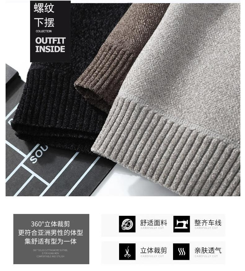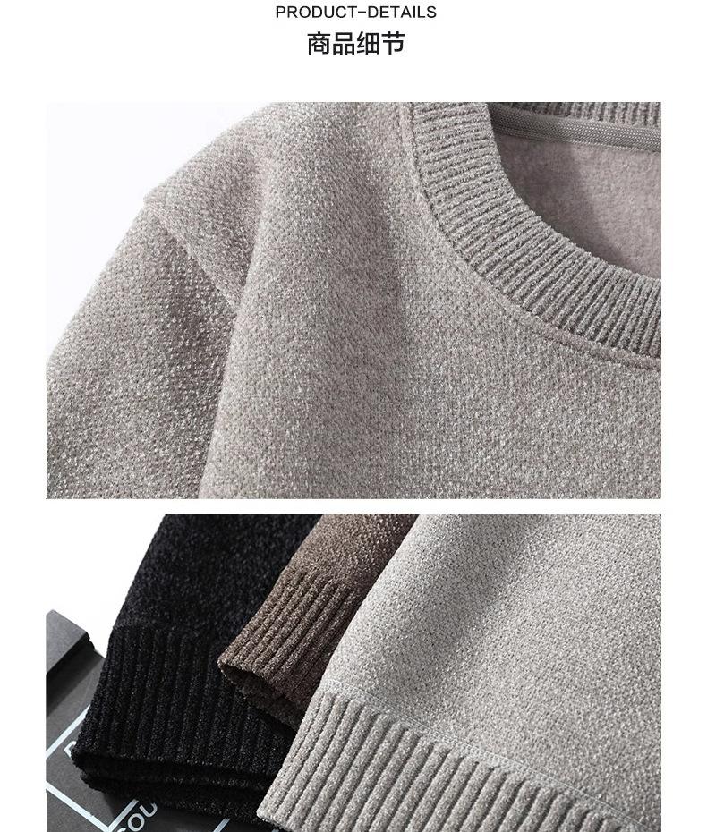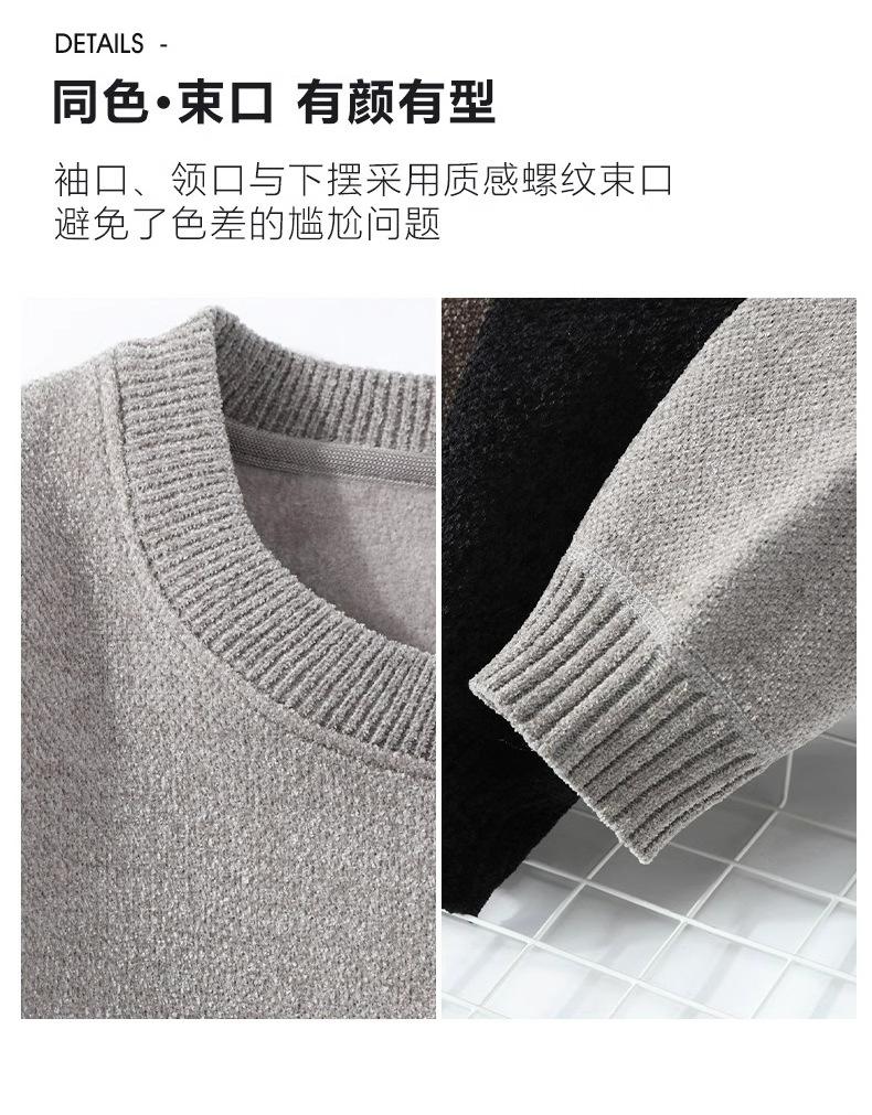 Otoño e invierno (terciopelo de una pieza) suéter de cuello redondo de alta gama para hombre, suéter de chenilla cálido con forro polar grueso, jersey, camiseta base