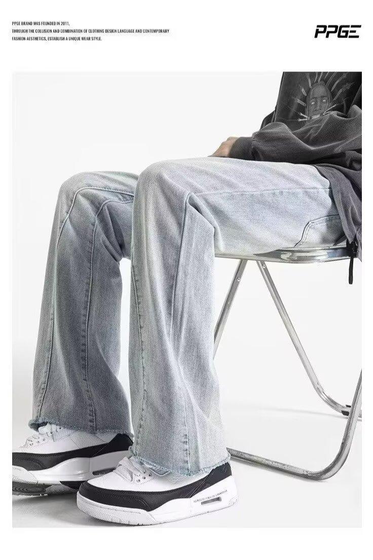 Jeans Retro Negros Estilo Americano Marca Trendy Combinable Pantalones Casuales Pantalones Rectos Holgados Otoño e Invierno para Hombre