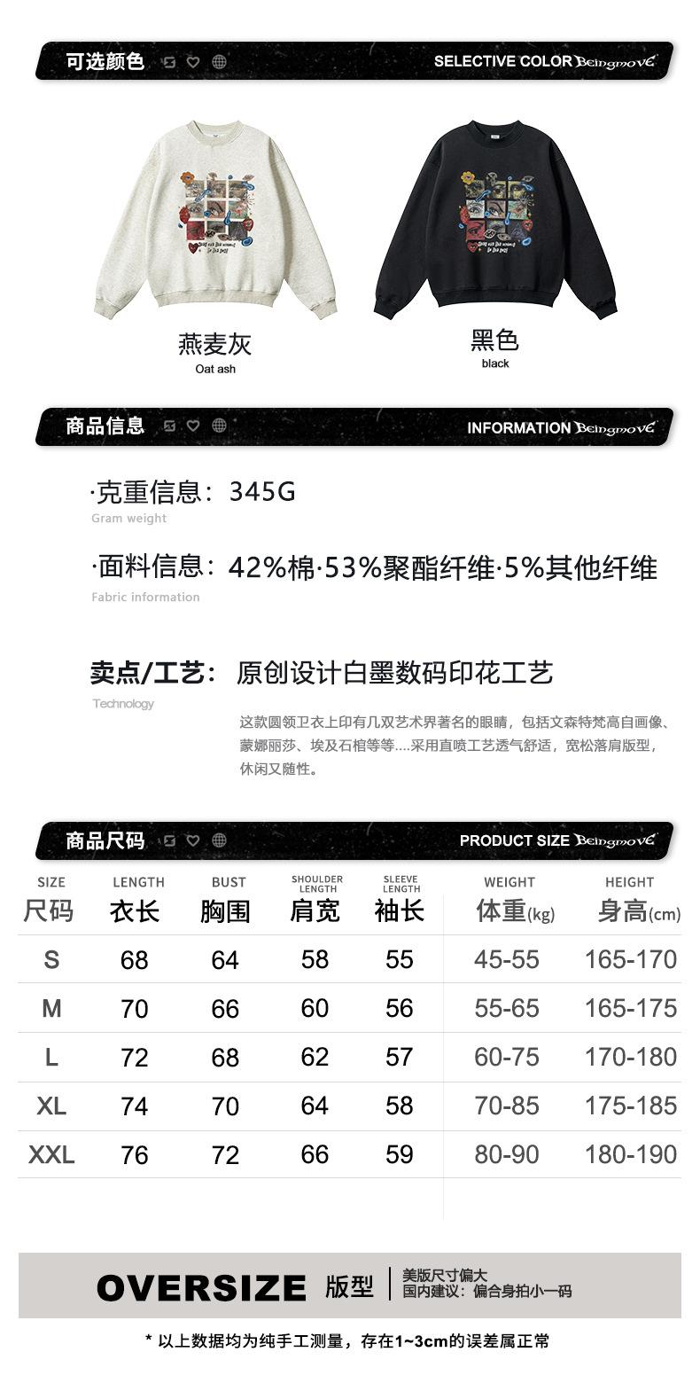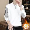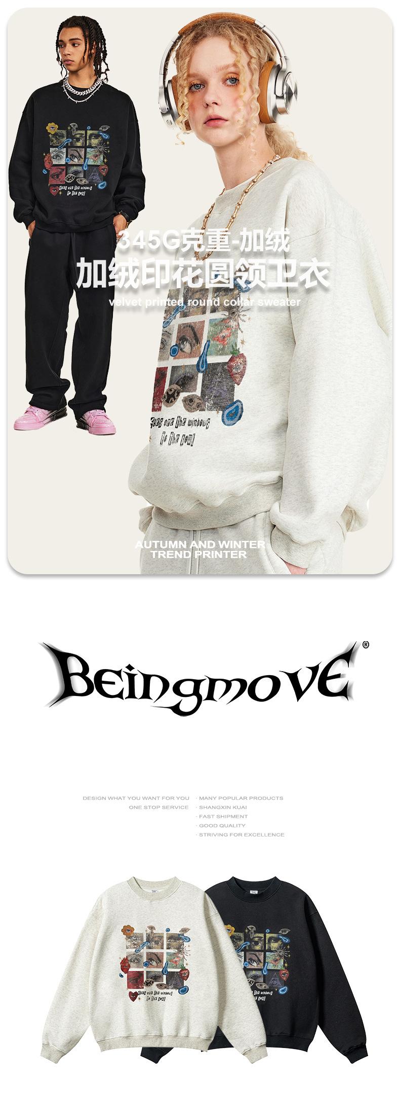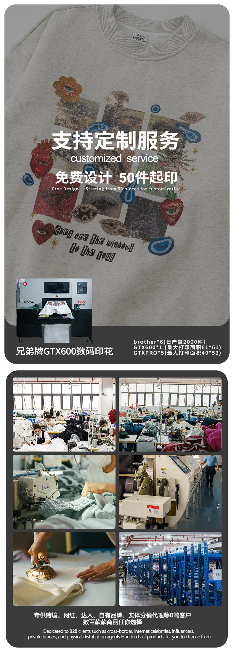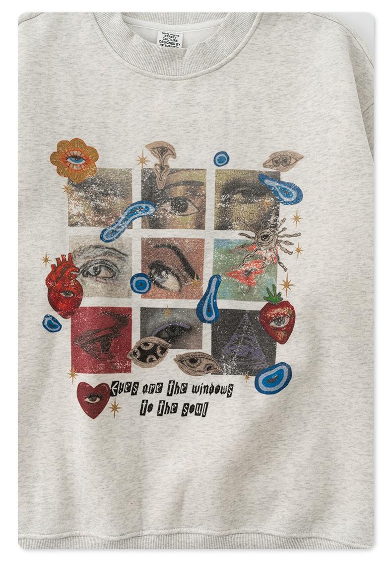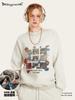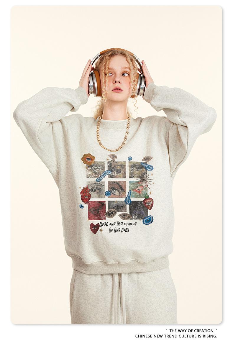 2025 Otoño Chic Retro Americano Top de Manga Descubierta Suelto con Forro Polar Grueso Estampado por Inyección Directa Sudadera de Cuello Redondo para Hombre